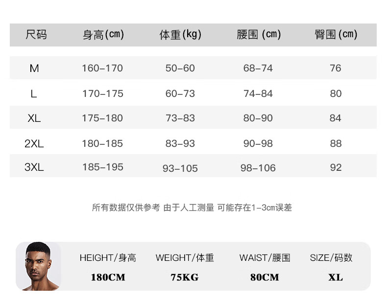 China (cm) 165 / 88-90 170 / 96-98 175 / 108-110 180 / 118-122 185 / 126-130