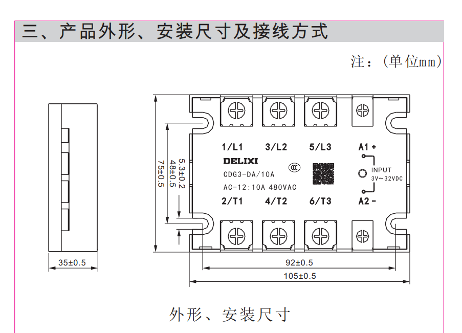 德力西(DELIXI)德力西DELIXI三相固态继电器CDG3-DA40A60A80A100A120A150直流交 直流控交流CDG3-DA 100A