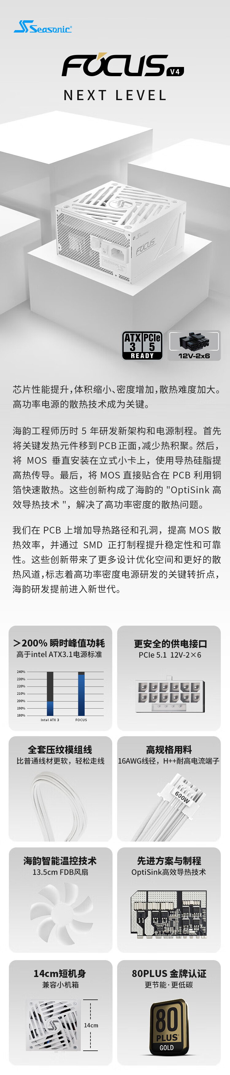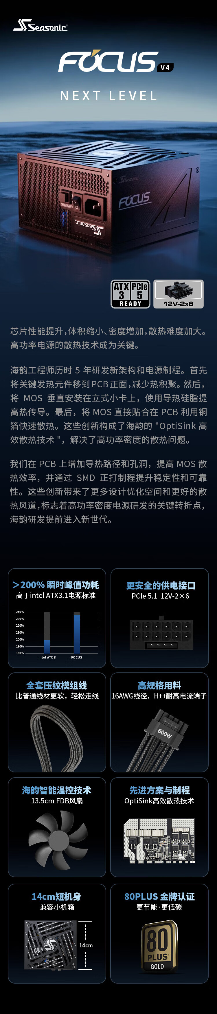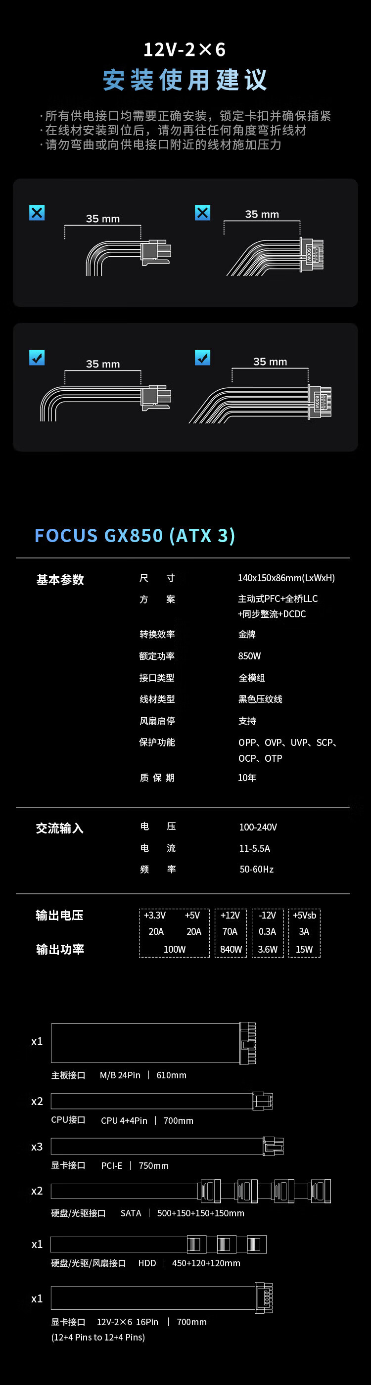 Haiyun new version ATX3 Haiyun power supply FOCUS/VERTEX GX/PX 1000 850 750W full set of embossed cable supports 5090 new version FOCUS GX850 ATX3 V4