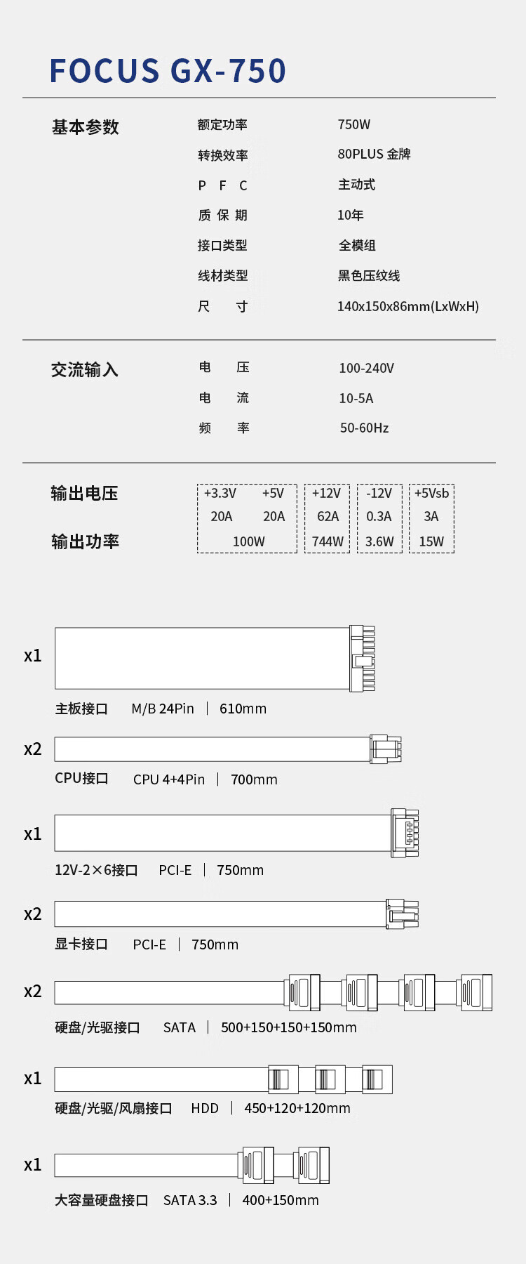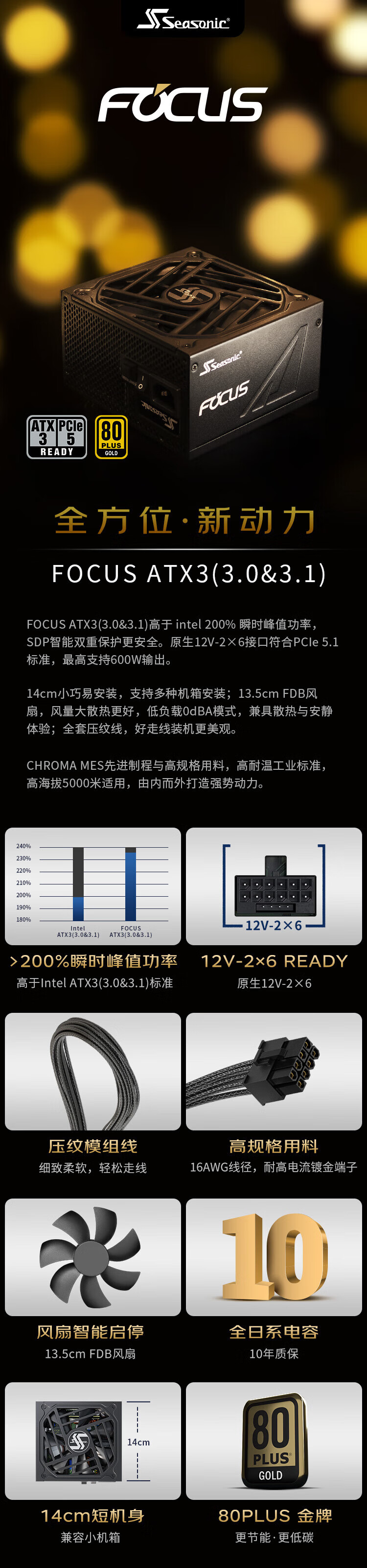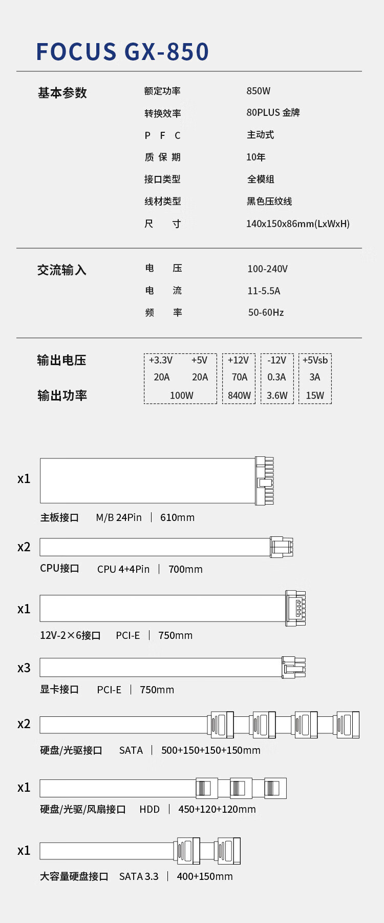 Haiyun new version ATX3 Haiyun power supply FOCUS/VERTEX GX/PX 1000 850 750W full set of embossed cable supports 5090 new version FOCUS GX850 ATX3 V4