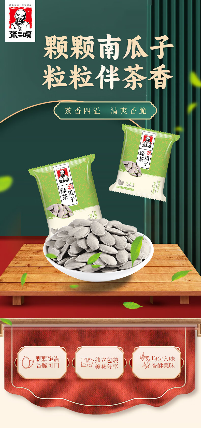 Zhang Erga Grüntee-Melonenkerne, kleine Beutel, Kürbiskerne, große Partikel, Snacks, geröstete Samen, frisch reifer Tee-Geschmacksmelonenkerne, Großhandels-Geschmackspaket, Grüntee-Geschmacks-Kürbiskerne, 4 Packungen, teuer