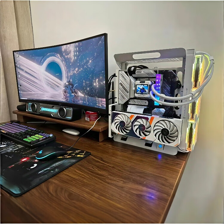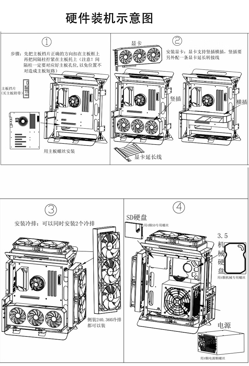 Shuomeiyou open chassis 240/360 water-cooled air-cooled ATX/matx rack graphics card vertically mounted computer host small chassis X6 white chassis (supports small and medium-sized motherboards)