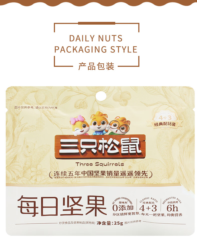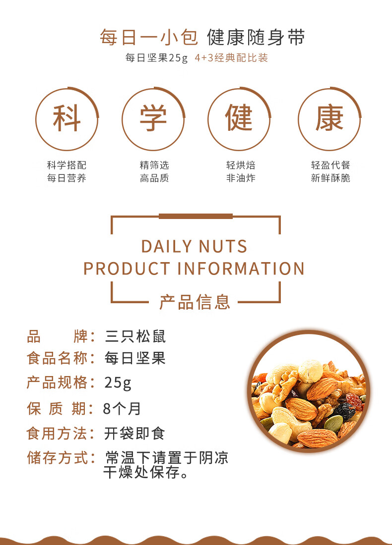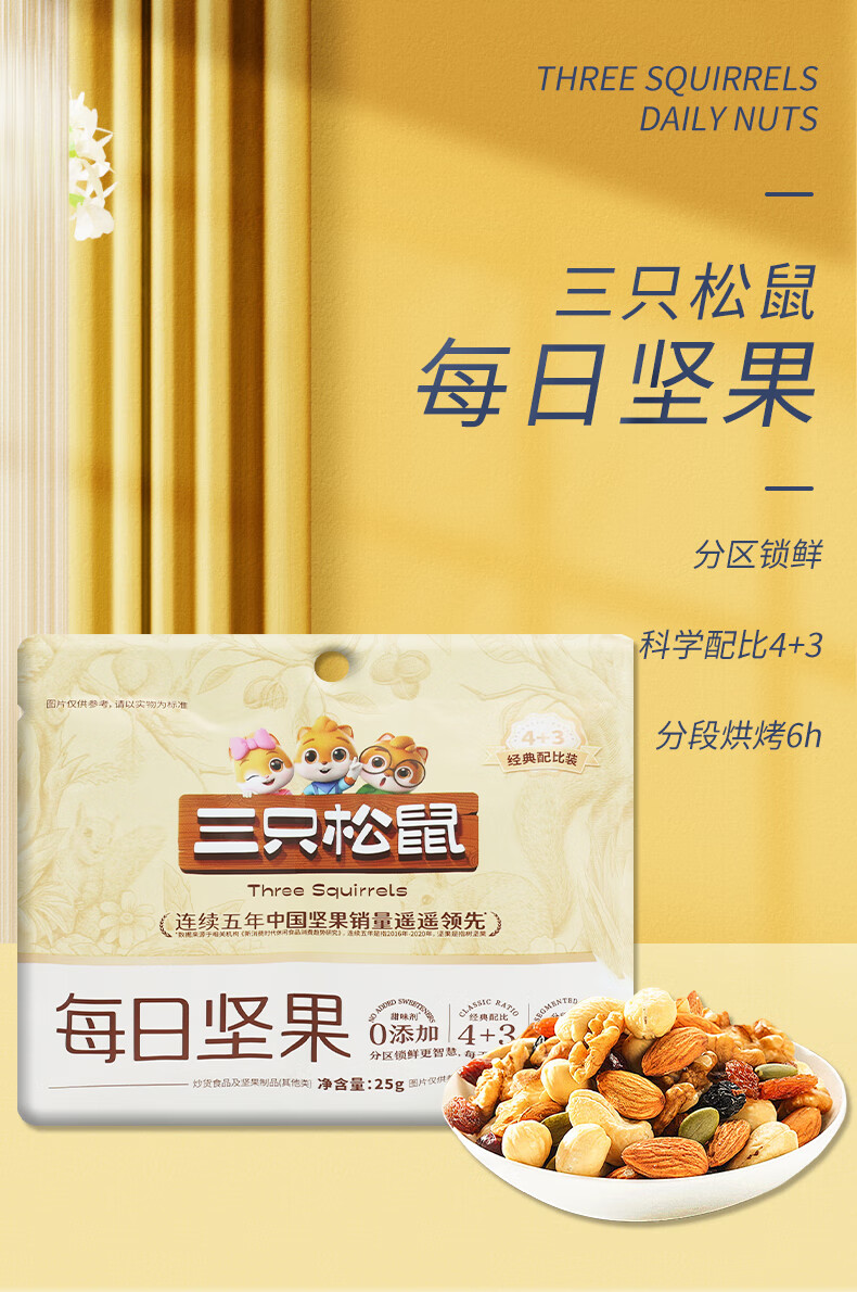 三只松鼠 THREE SQUIRRELS三只松鼠X10袋装便携4坚果3果干休闲混合装零食小吃 10袋 三只松鼠每日坚果25gX 1袋