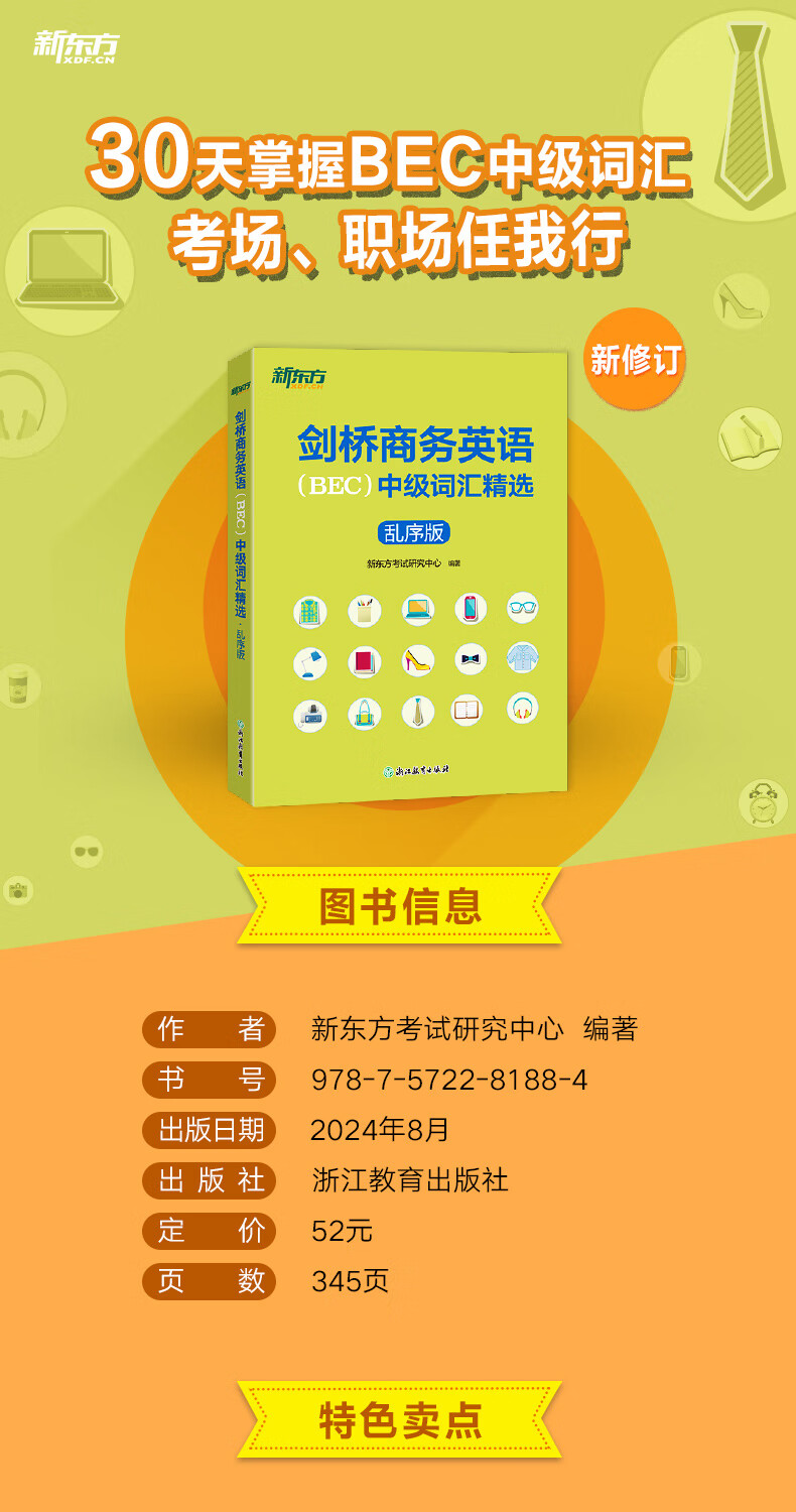 【新东方官方旗舰店】剑桥商务英语(BEC)中级词汇精选(乱序版) 出国留学考试书籍  30天掌握BEC中级词汇考场职场