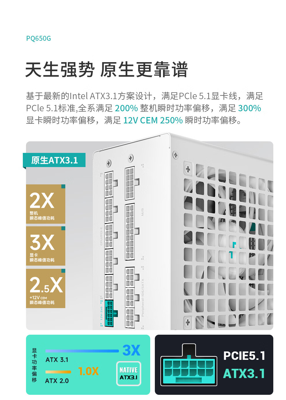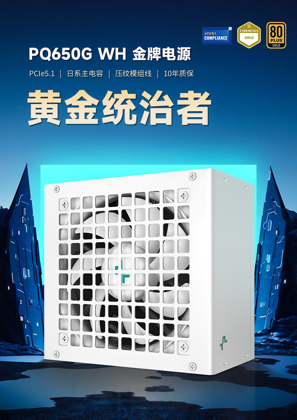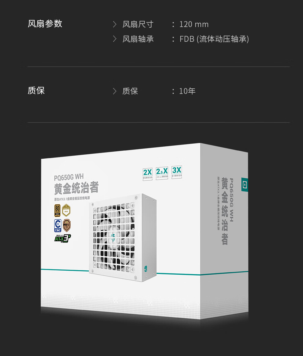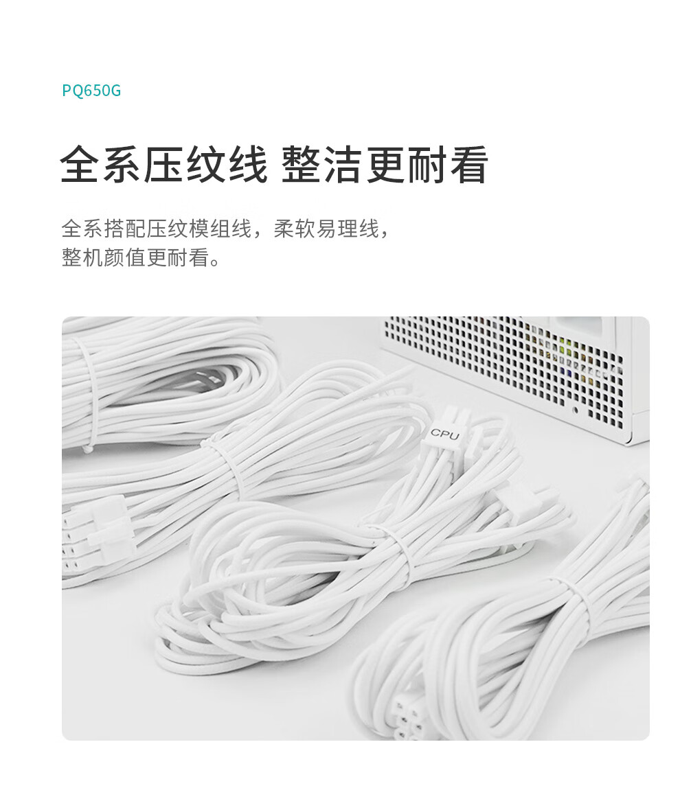 Jiuzhou Fengshen (DEEPCOOL) PQ650/750/850/1000/1200G ATX3.1 Gold Medal Full Module White Host-Netzteil (geprägtes Modulkabel/10 Jahre Garantie/RTX5090 empfohlen) PQ650G White Gold Medal Full Mold Embossed Cable ATX3.1