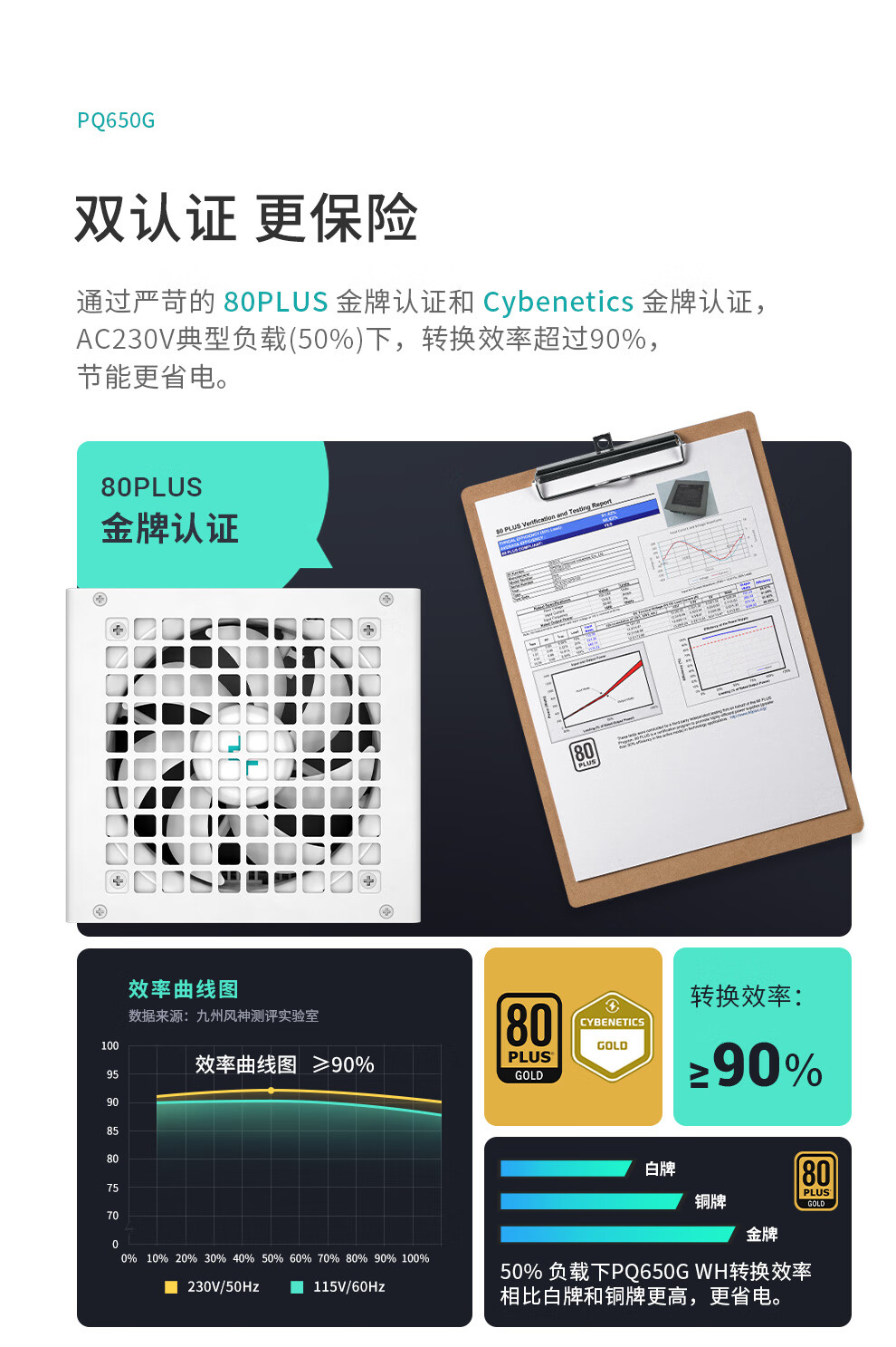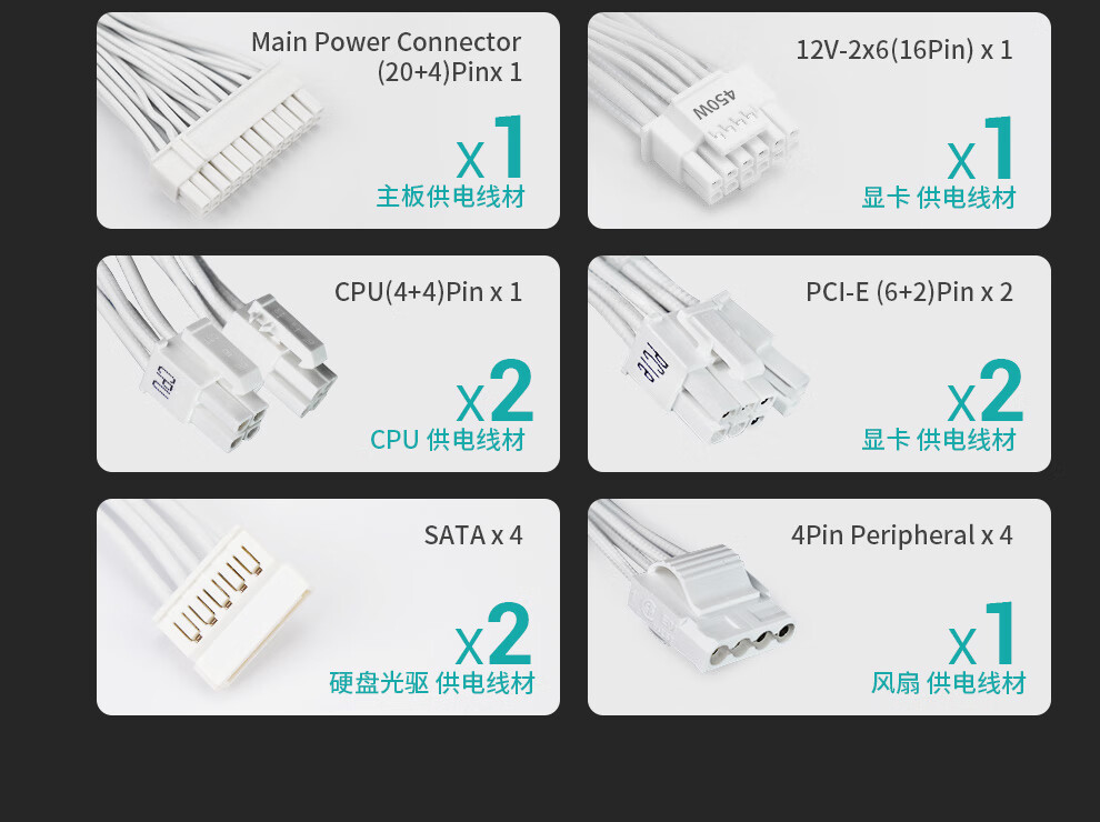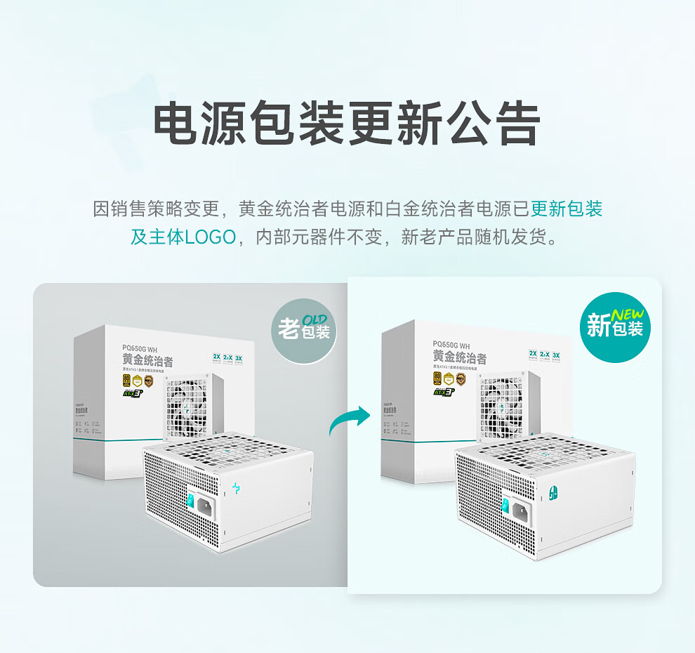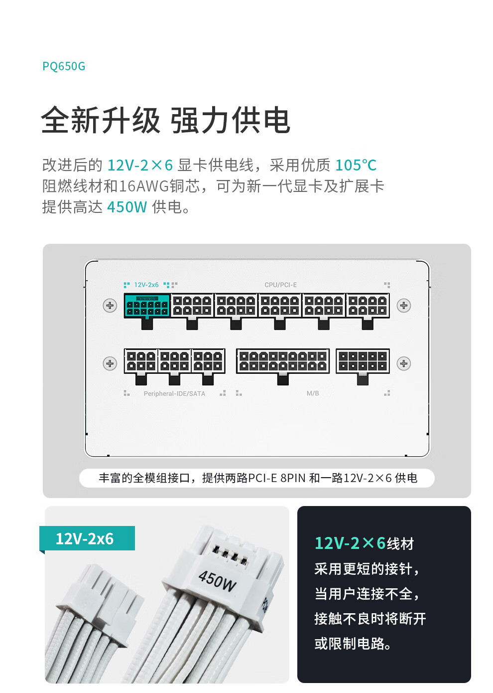 Jiuzhou Fengshen (DEEPCOOL) PQ650/750/850/1000/1200G ATX3.1 Gold Medal Full Module White Host-Netzteil (geprägtes Modulkabel/10 Jahre Garantie/RTX5090 empfohlen) PQ650G White Gold Medal Full Mold Embossed Cable ATX3.1