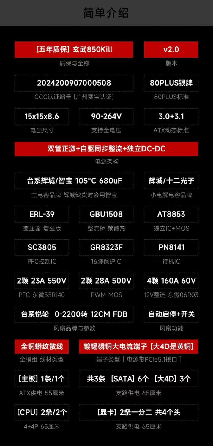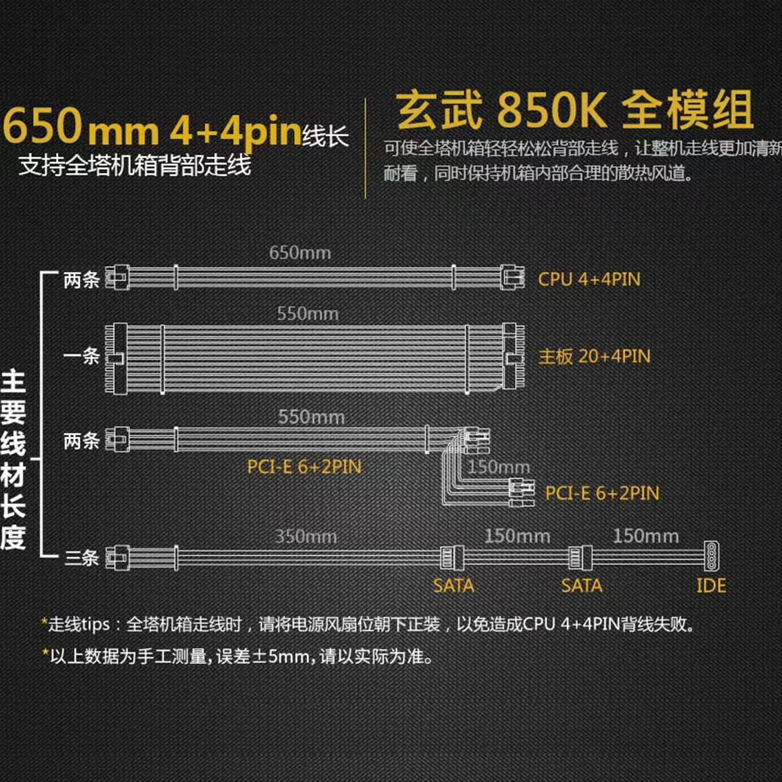 Yichenyu Xuanwu Netzteil 650 W Schwarz Wukong Installiertes Essential Desktop-Computer-Netzteil Vollmodulares Netzteil Xuanwu Netzteil 650SE Schwarz Yichenyu-Xuanwu Computer-Netzteil (Kabellieferung)