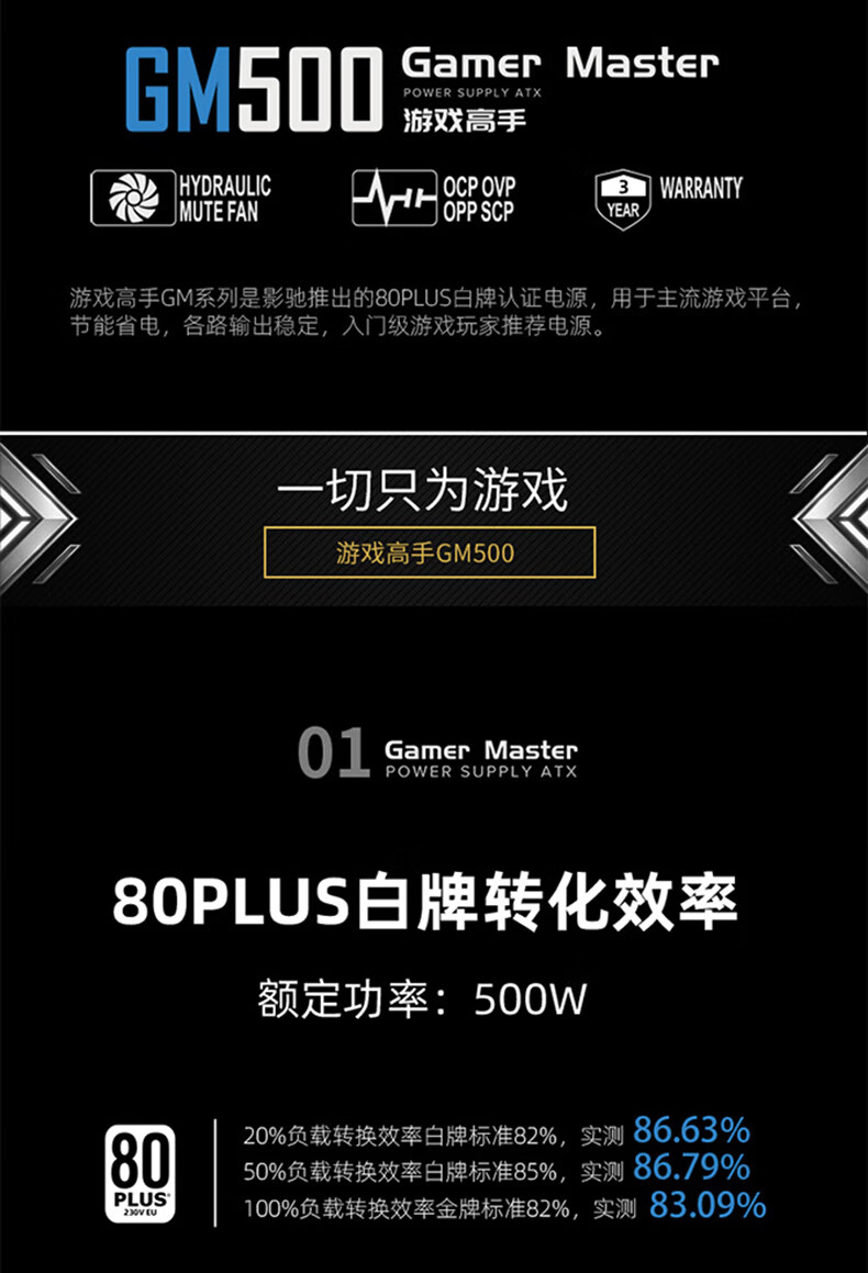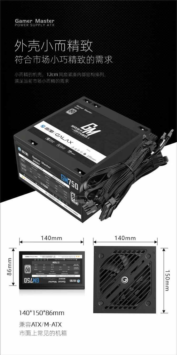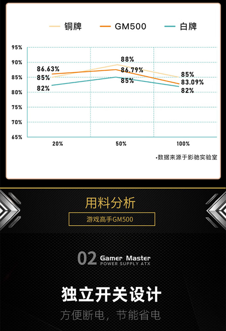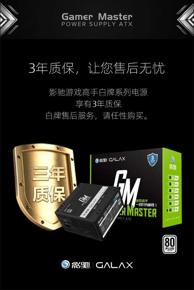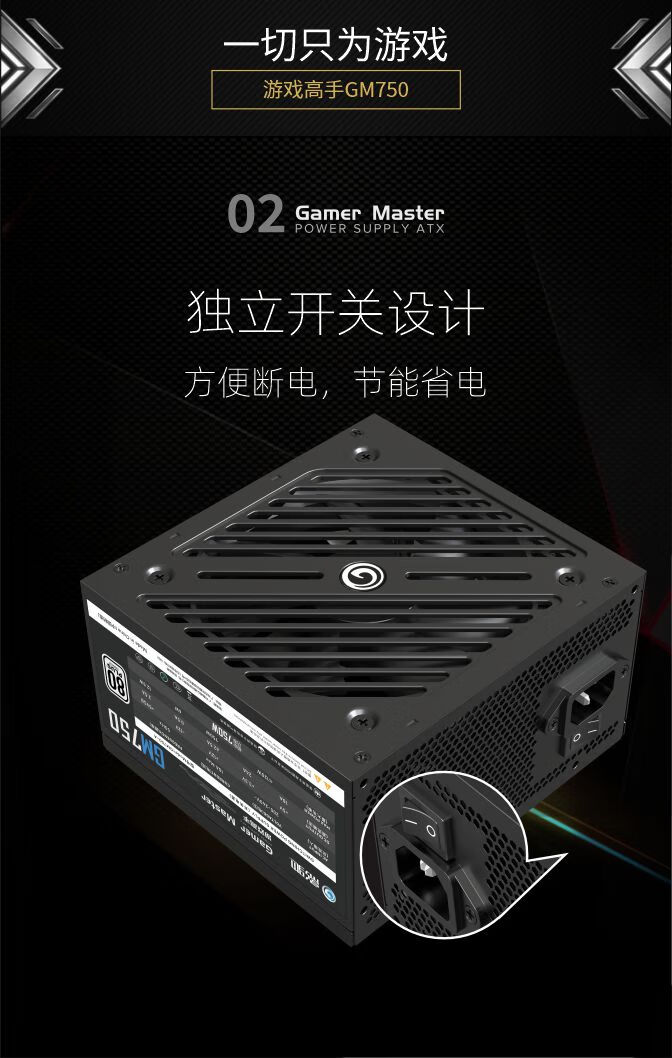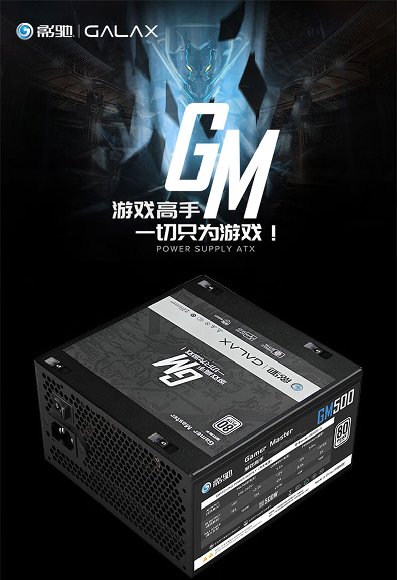 影驰游戏高手GM650W500W电脑电源 80plus白牌认证/智能温控/主动式PFC 台式电脑主机电源750W GM500(500W白牌认证) 无盒