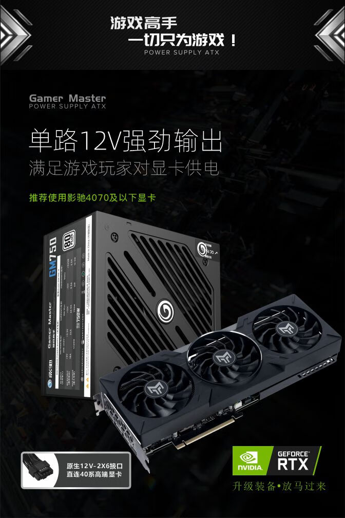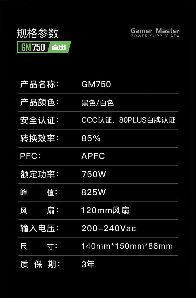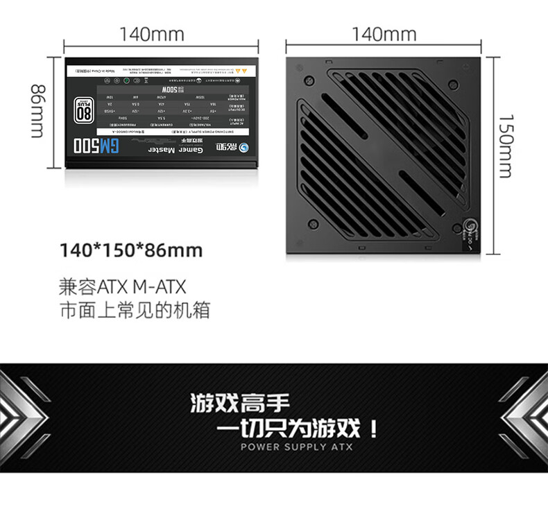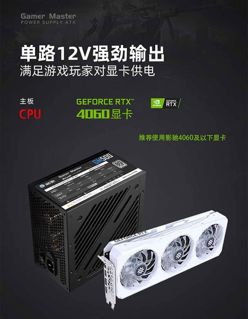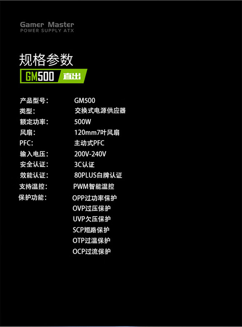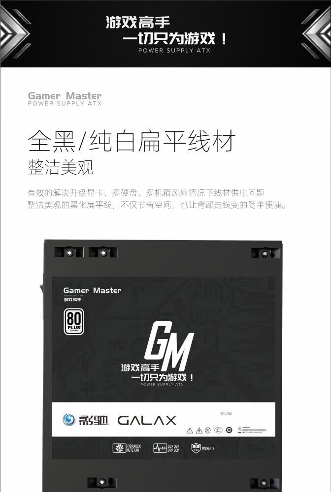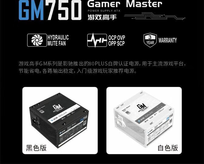 影驰游戏高手GM650W500W电脑电源 80plus白牌认证/智能温控/主动式PFC 台式电脑主机电源750W GM500(500W白牌认证) 无盒