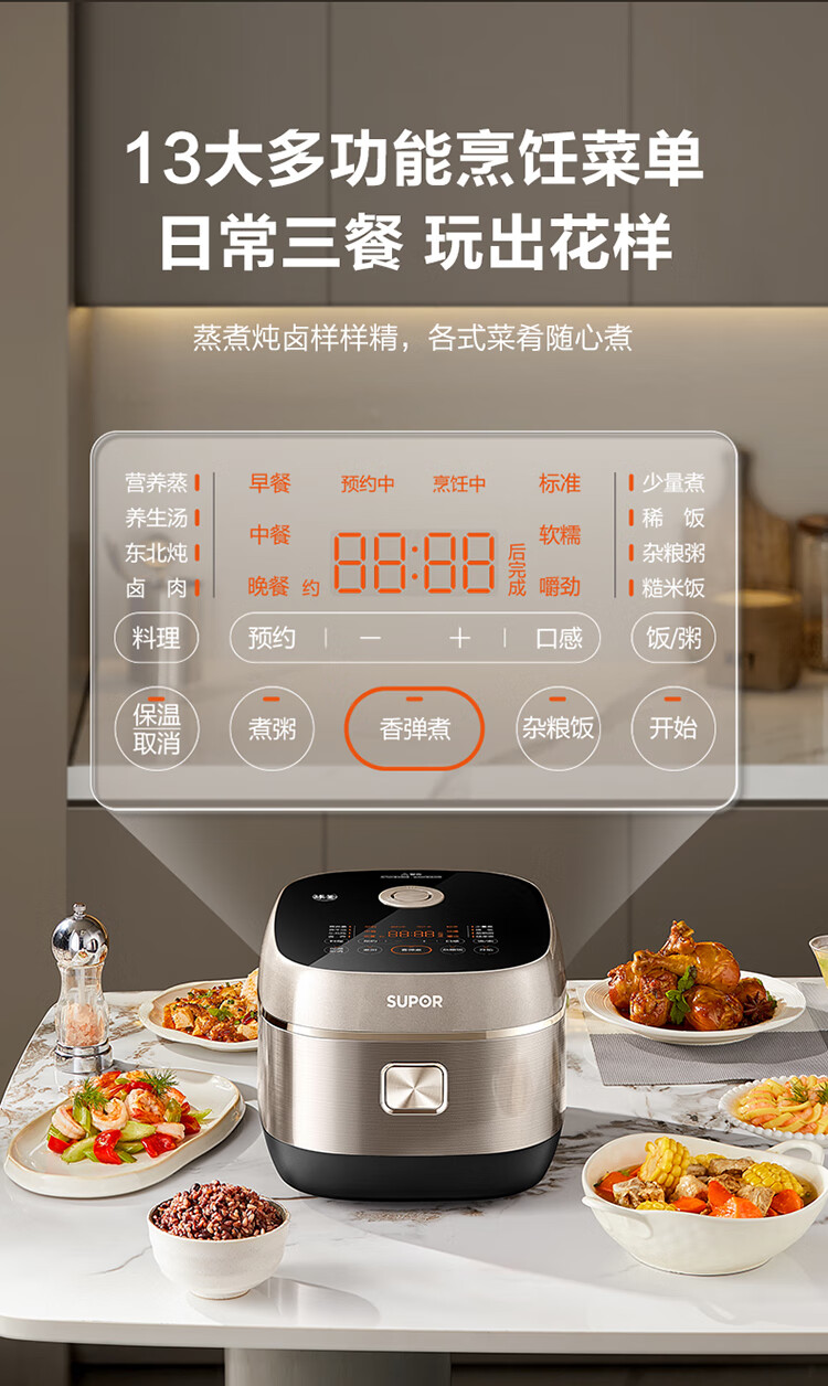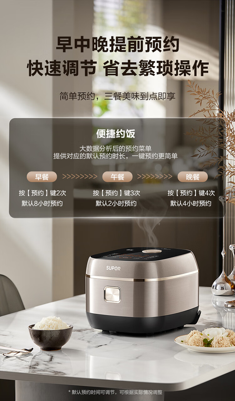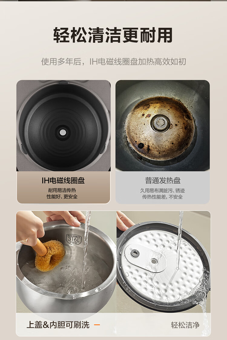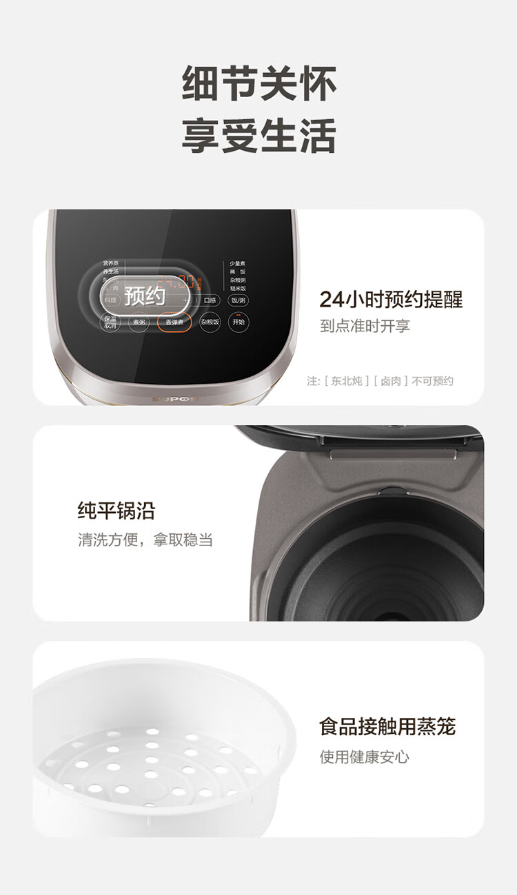 苏泊尔(SUPOR)官方推荐IH猛火电饭煲防粘0涂层4L高端电磁加热316L不锈钢球釜加厚内胆电饭锅家用智能多功能锅 微坑防粘0涂层 4L (可用4-8人)