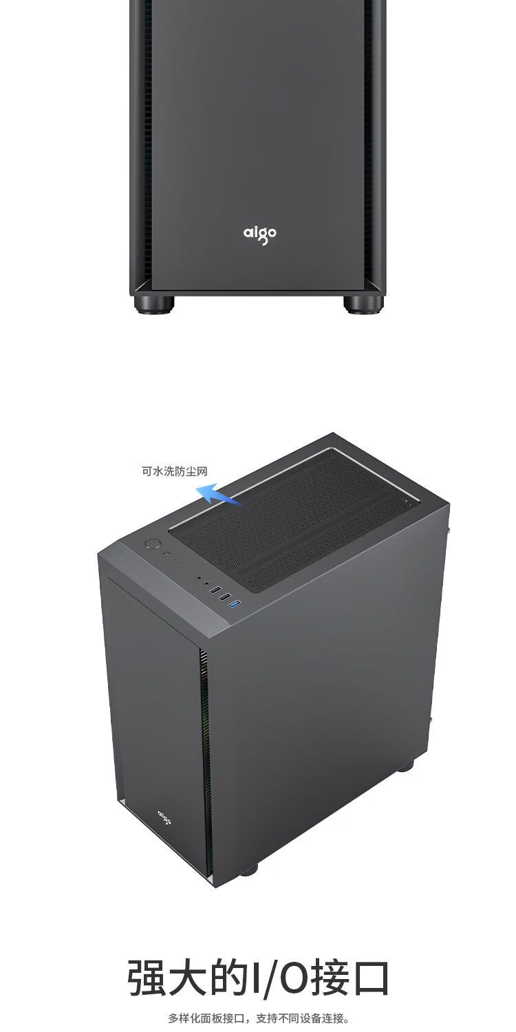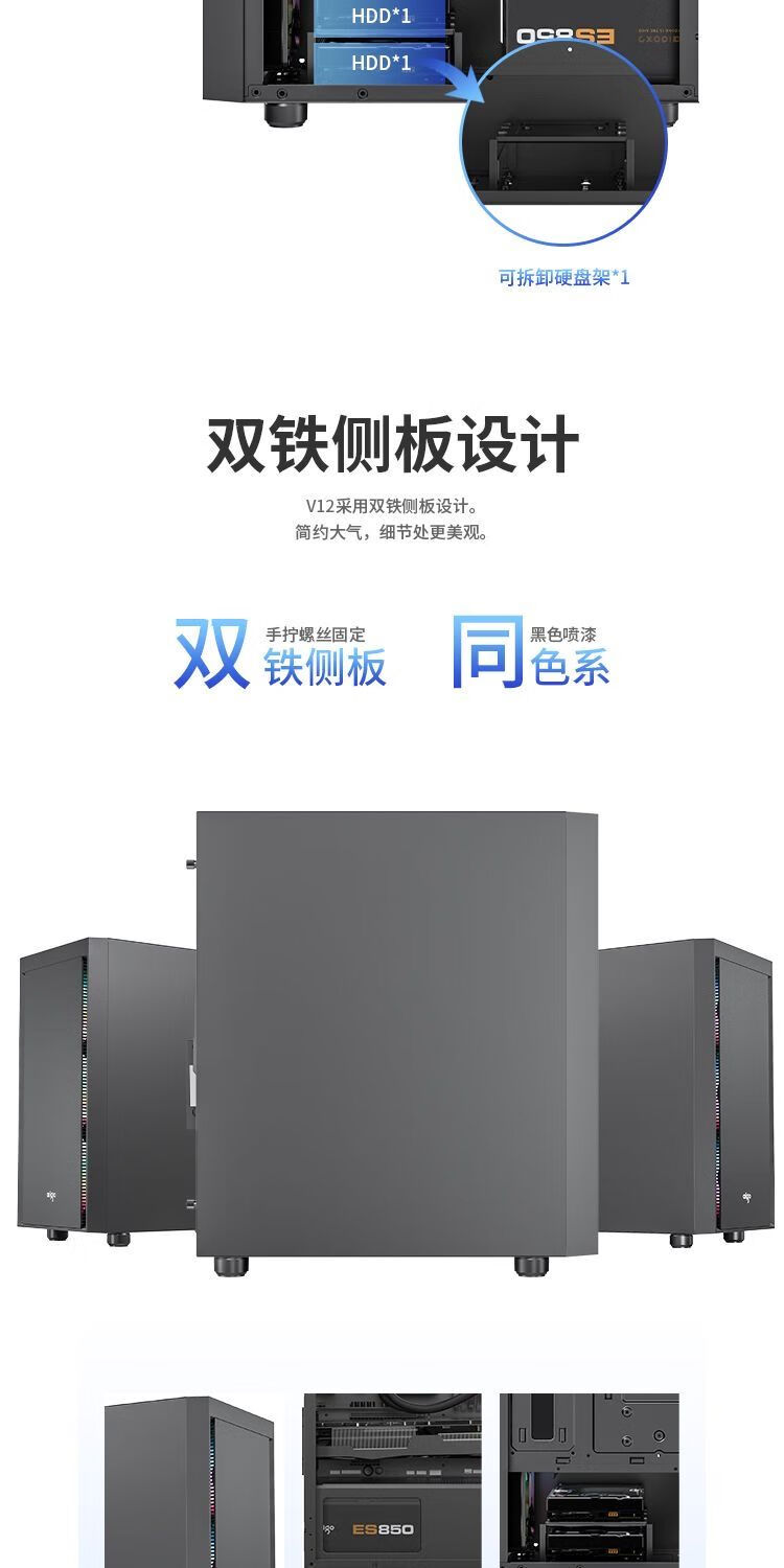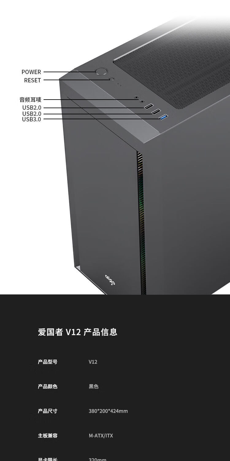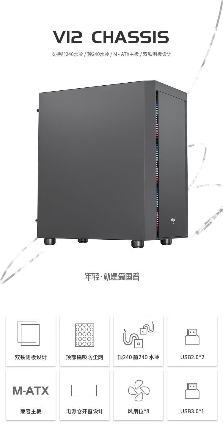 爱国者爱国者V12不侧透商务无光静音防尘办公机箱全封闭台式隔音家用支持MATX主板240水冷散热静音棉 V12黑色+3无光静音风扇