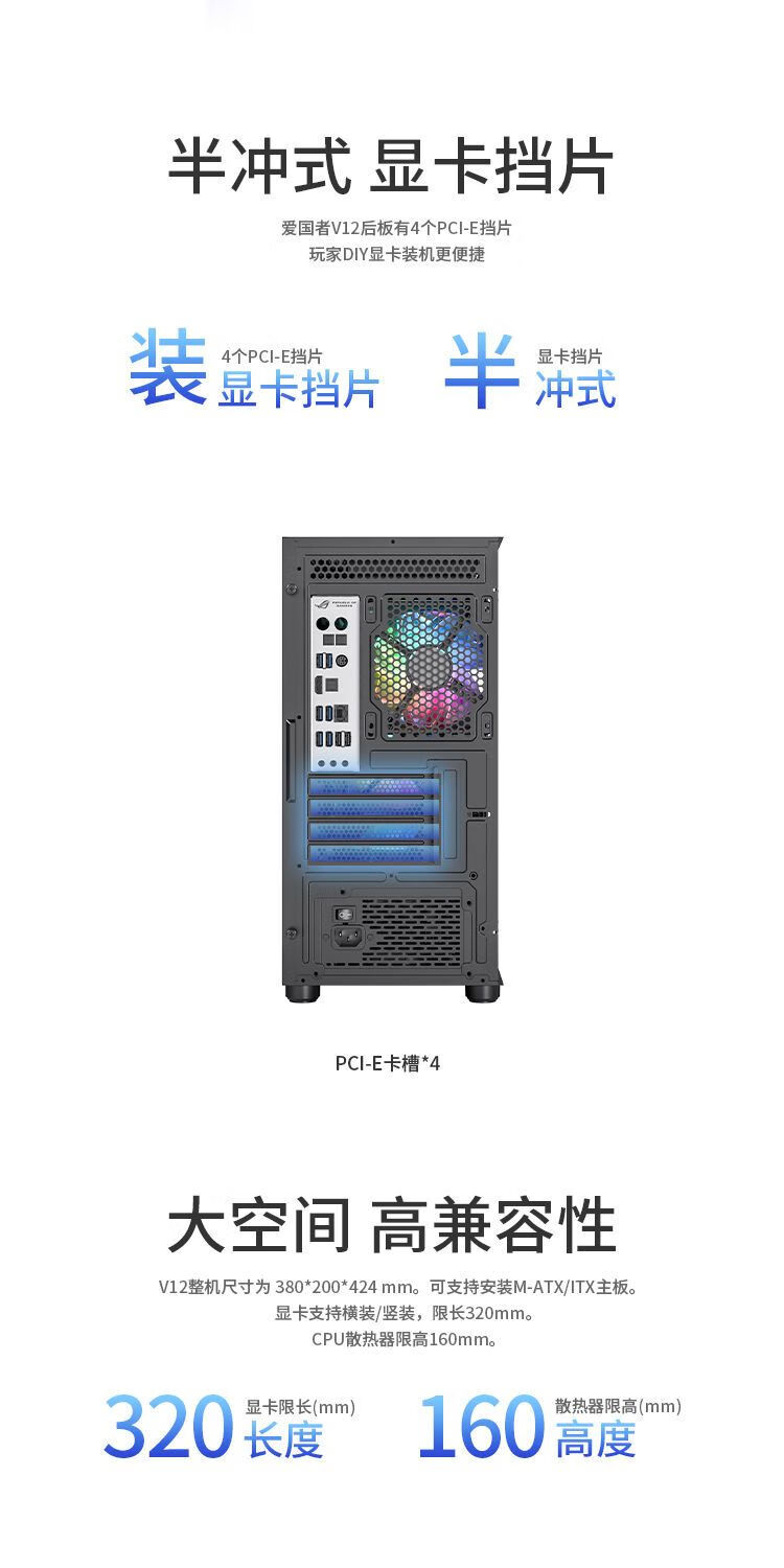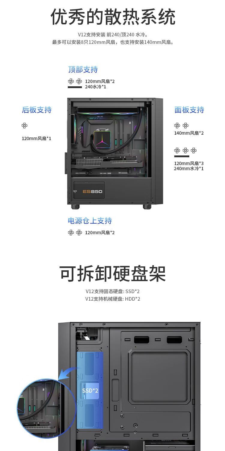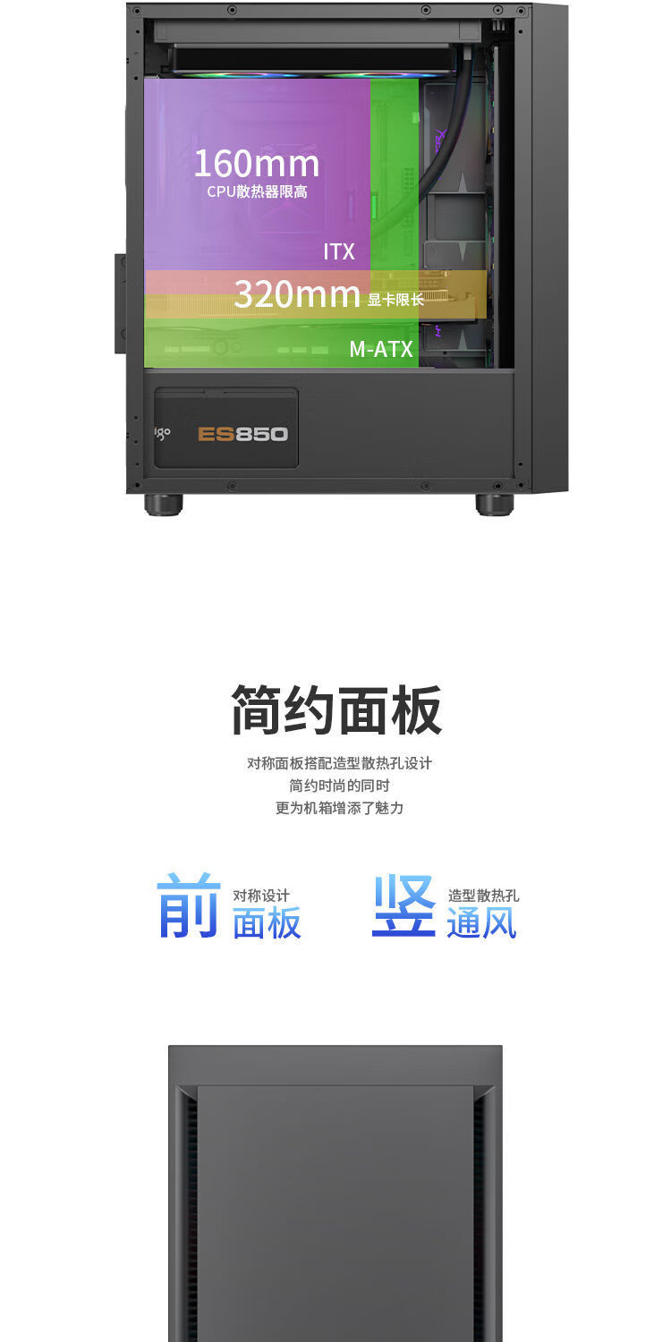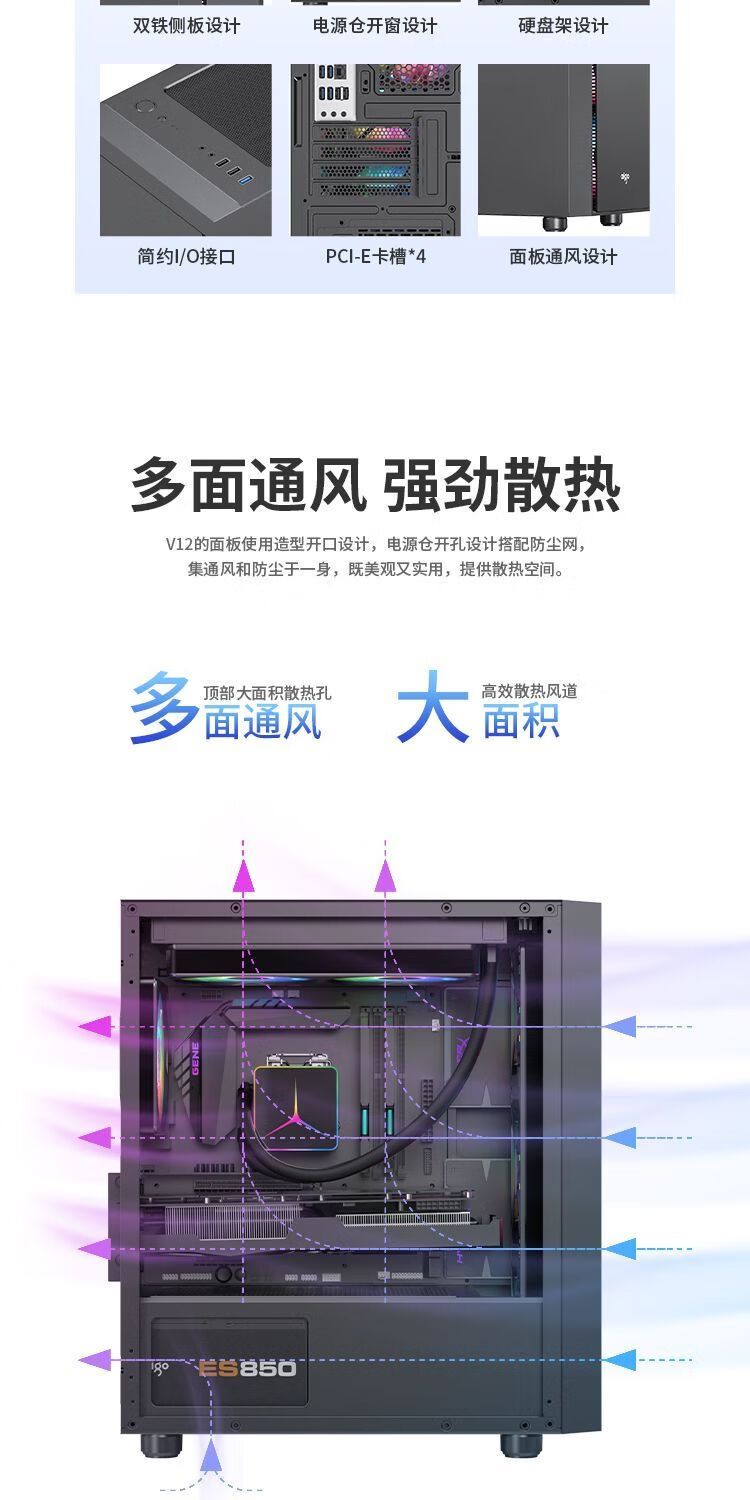 爱国者爱国者V12不侧透商务无光静音防尘办公机箱全封闭台式隔音家用支持MATX主板240水冷散热静音棉 V12黑色+3无光静音风扇