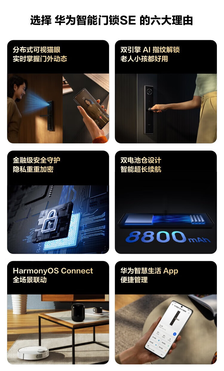 Умный дверной замок Huawei (HUAWEI) SE Cat's Eye Edition Домашний замок с отпечатком пальца Блокировка паролем Неполностью автоматический электронный замок Huawei Hongmeng Весь дом Интеллектуальная связь Противоугонный дверной замок MT33 Умный дверной замок Huawei SE Cat's Eye Edition 30-дневная гарантия цены + 3-летняя гарантия Трехлетняя общенациональная гарантия