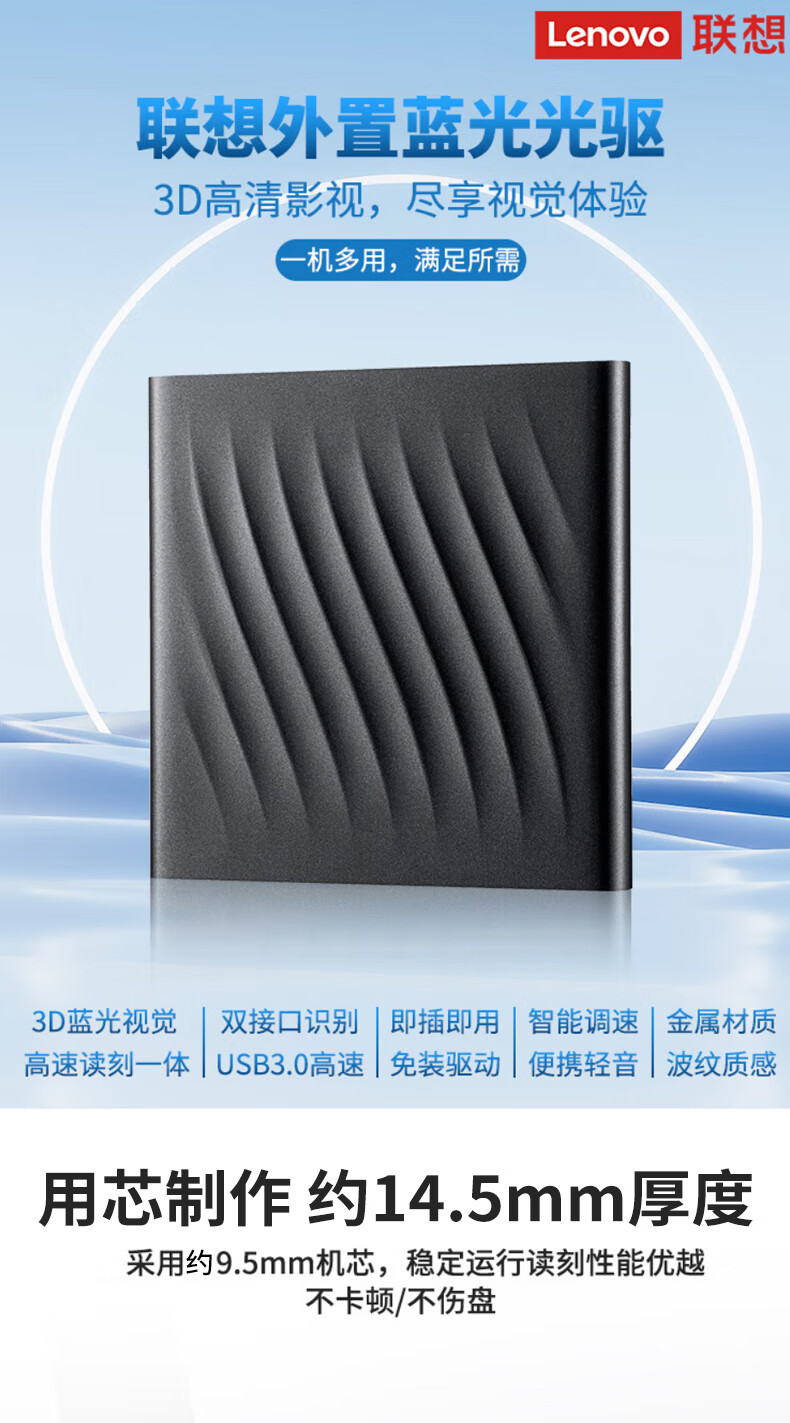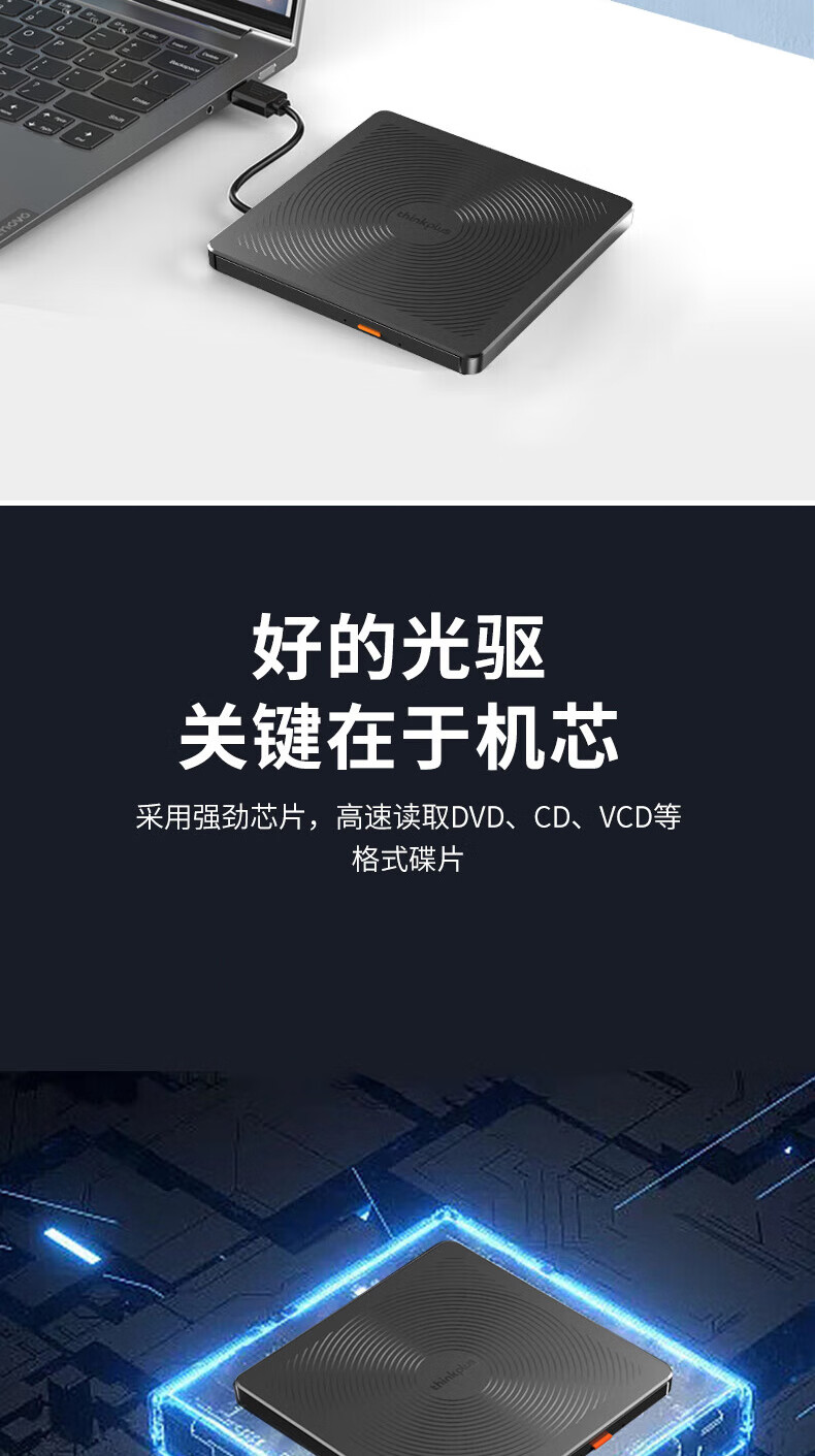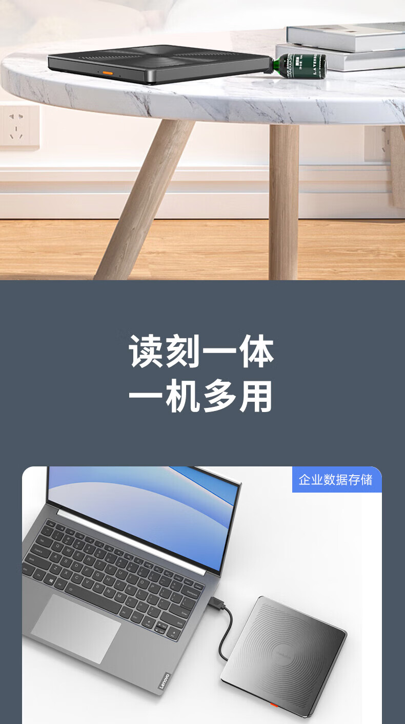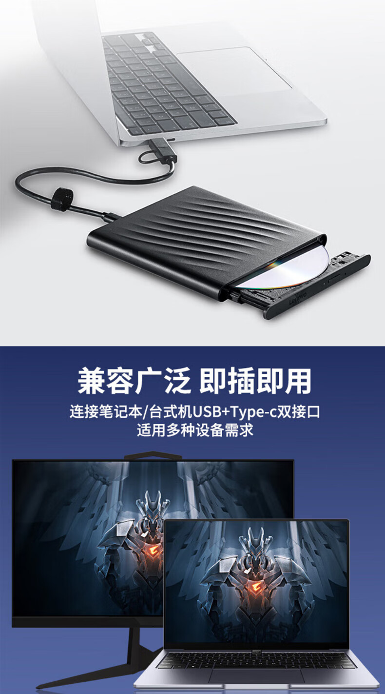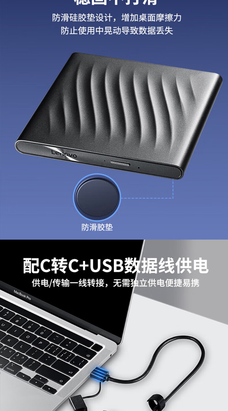 Externes optisches Laufwerk von Lenovo, externer DVD-Recorder, mobiles optisches Laufwerk, externes optisches Laufwerk, tragbares optisches Laufwerk für Laptops, externes Lesegerät und Brenner, schwarzes GP95-Dual-Interface, optisches Blu-ray-Laufwerk (U+C-Anschluss)
