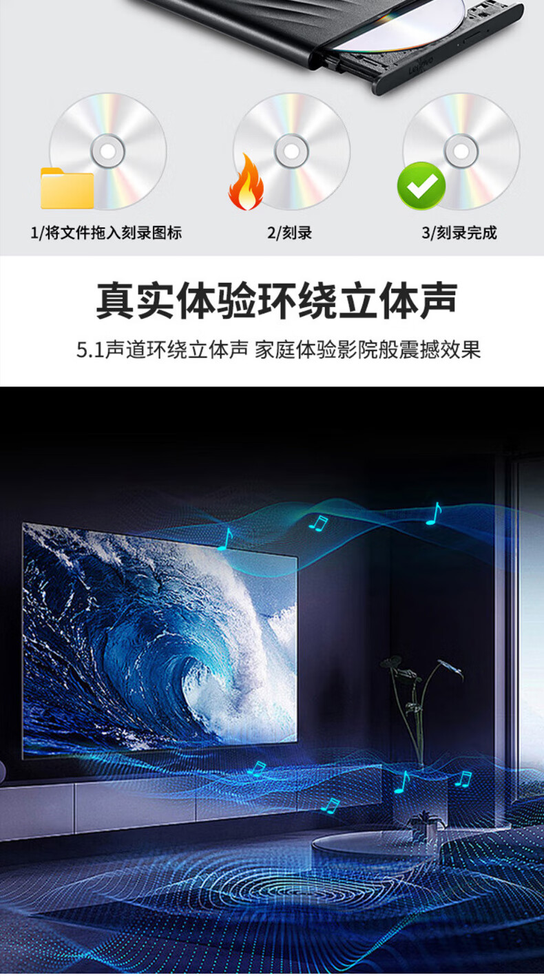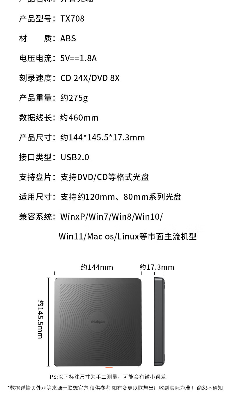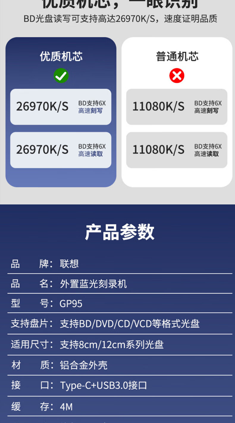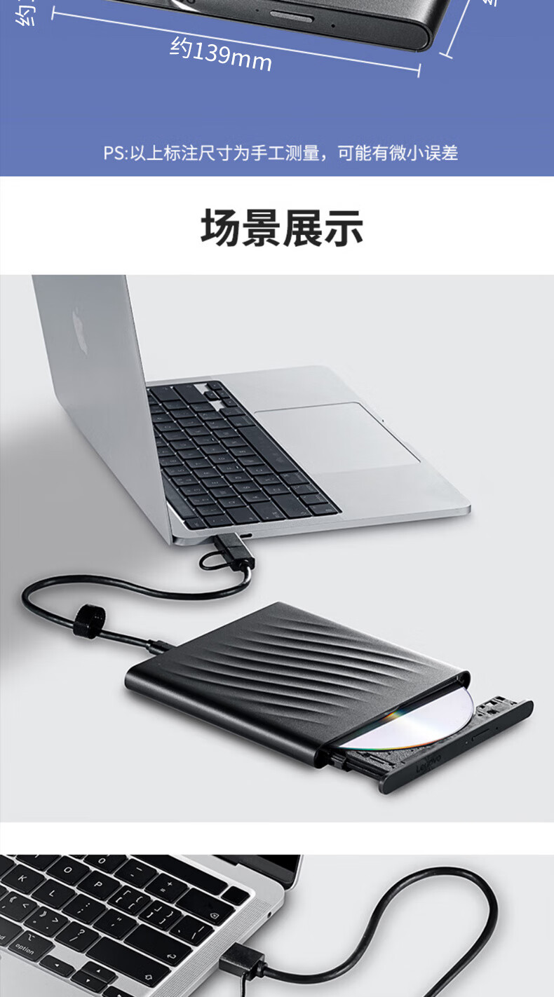 Externes optisches Laufwerk von Lenovo, externer DVD-Recorder, mobiles optisches Laufwerk, externes optisches Laufwerk, tragbares optisches Laufwerk für Laptops, externes Lesegerät und Brenner, schwarzes GP95-Dual-Interface, optisches Blu-ray-Laufwerk (U+C-Anschluss)