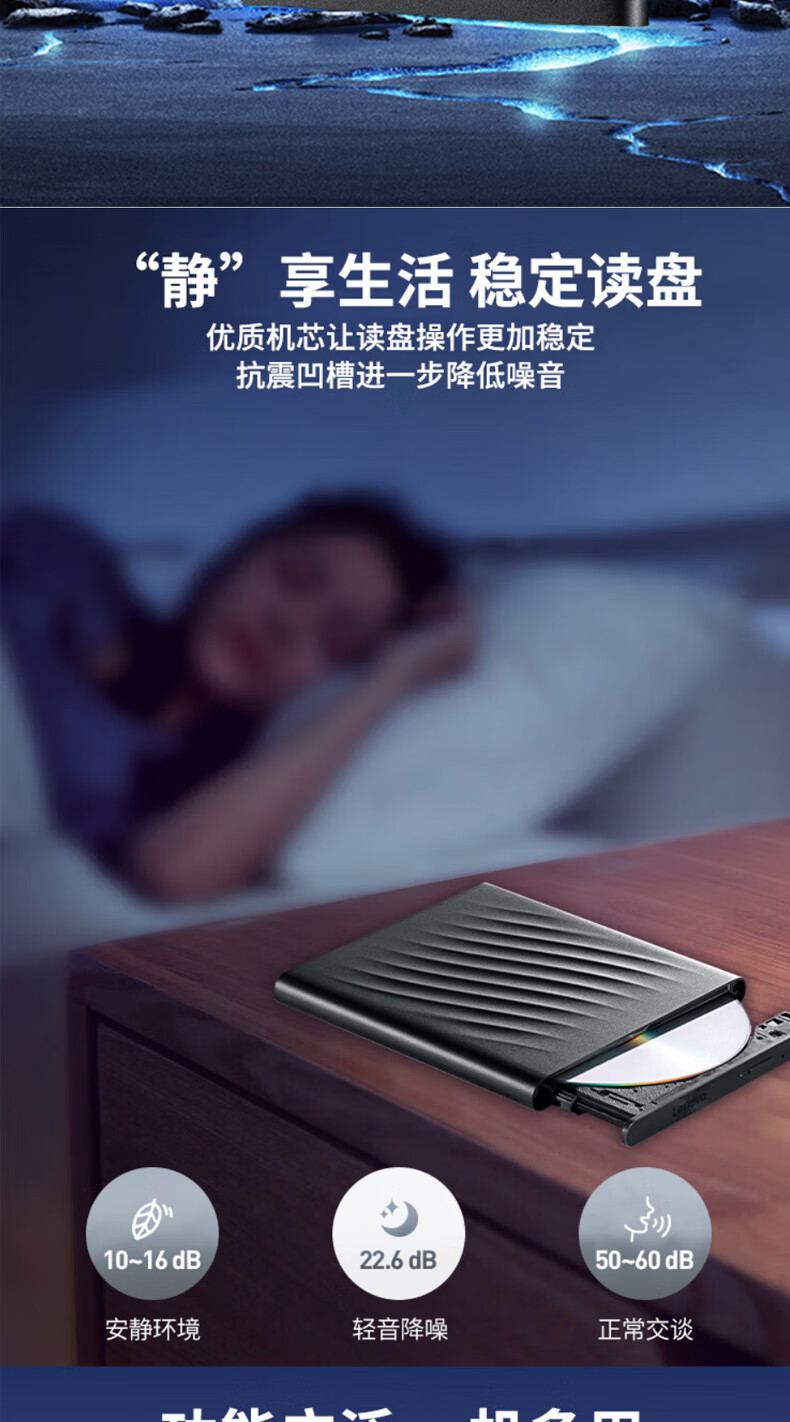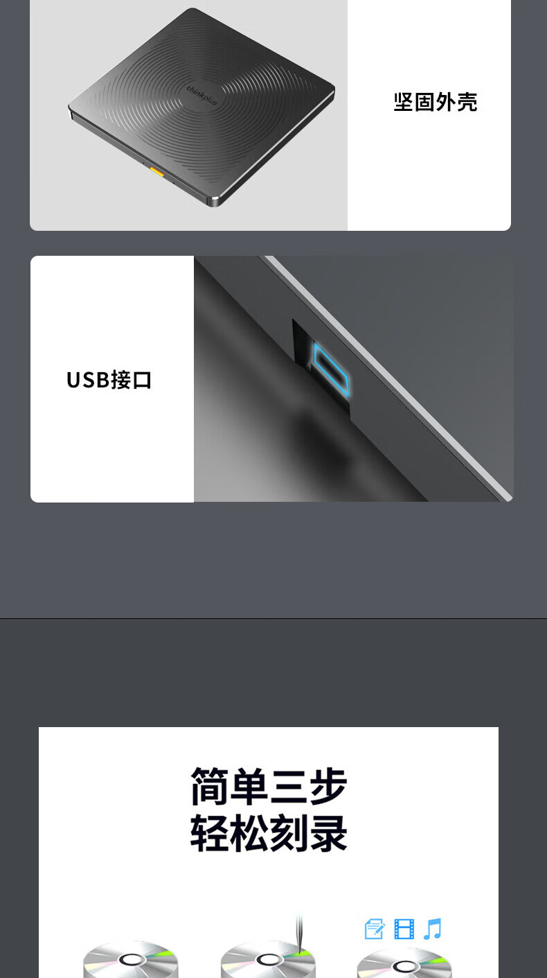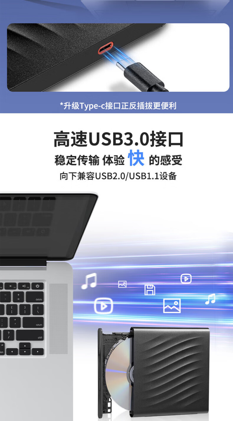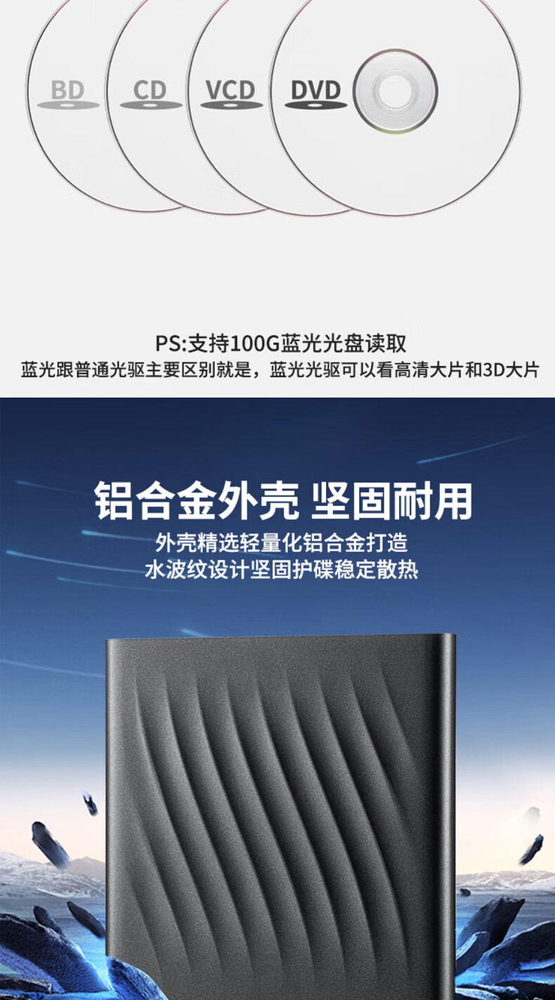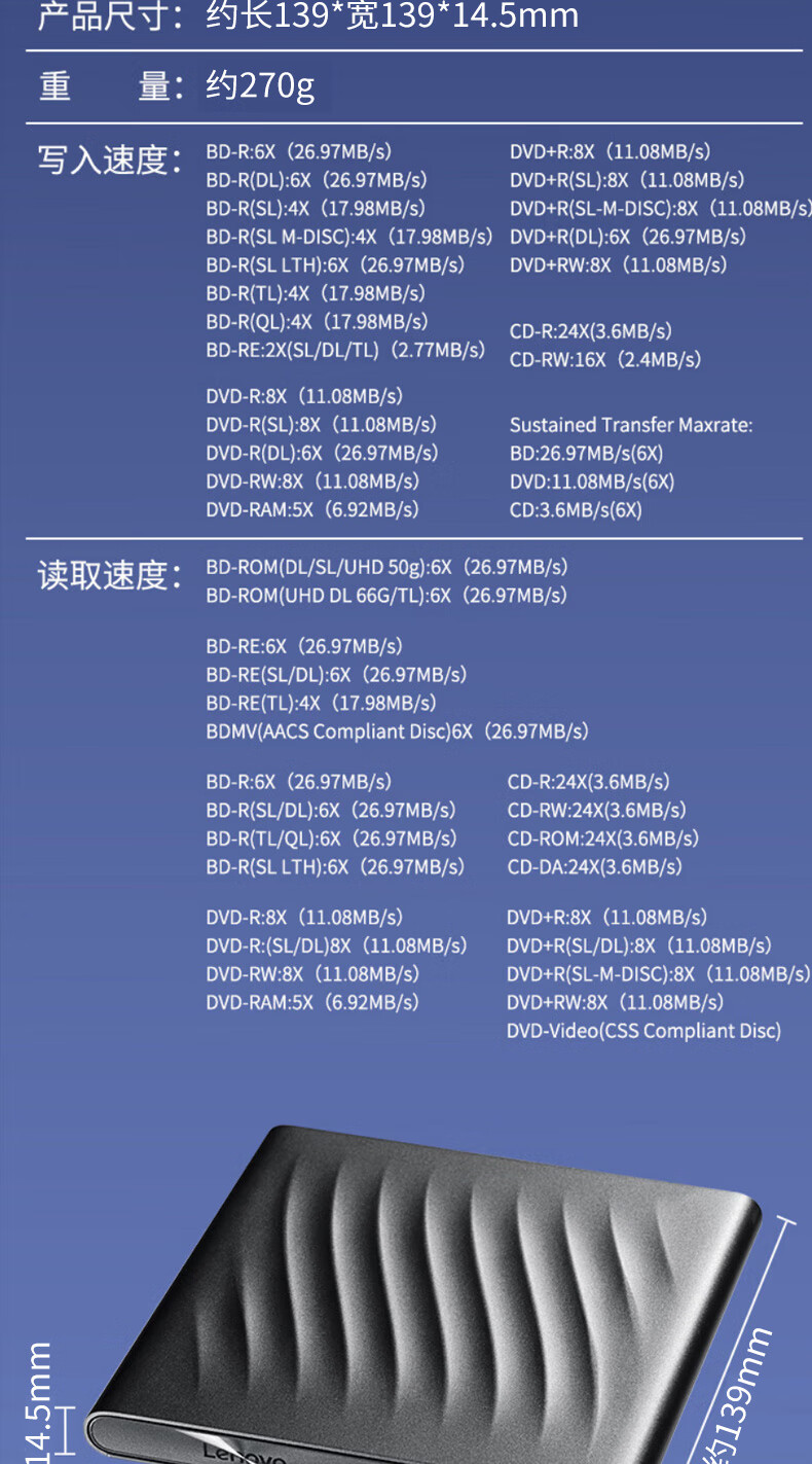 Externes optisches Laufwerk von Lenovo, externer DVD-Recorder, mobiles optisches Laufwerk, externes optisches Laufwerk, tragbares optisches Laufwerk für Laptops, externes Lesegerät und Brenner, schwarzes GP95-Dual-Interface, optisches Blu-ray-Laufwerk (U+C-Anschluss)