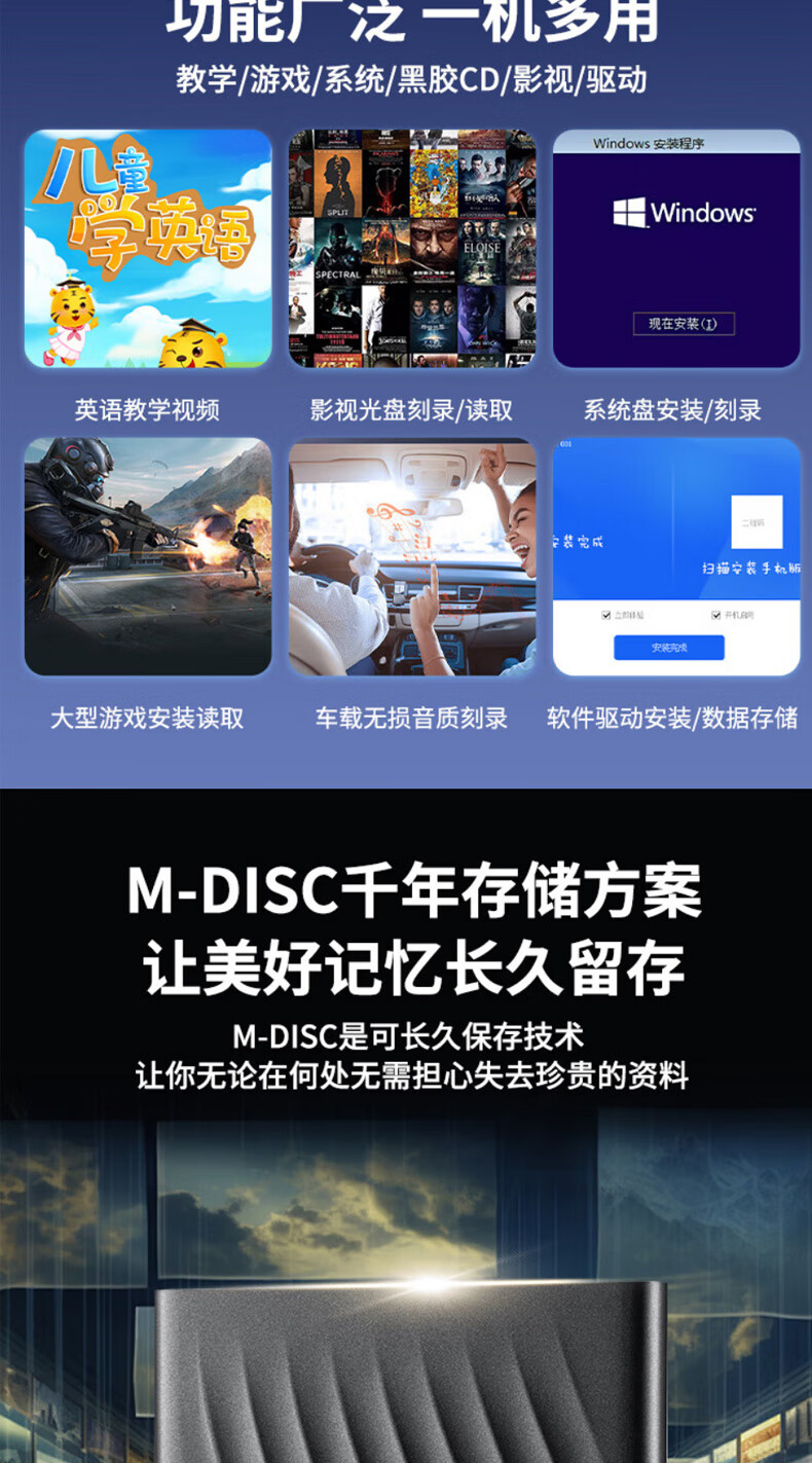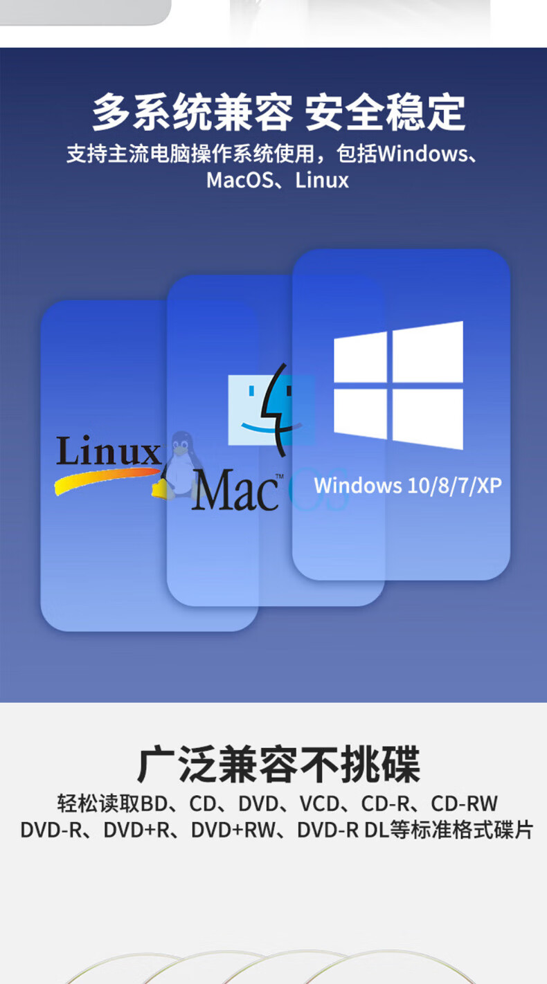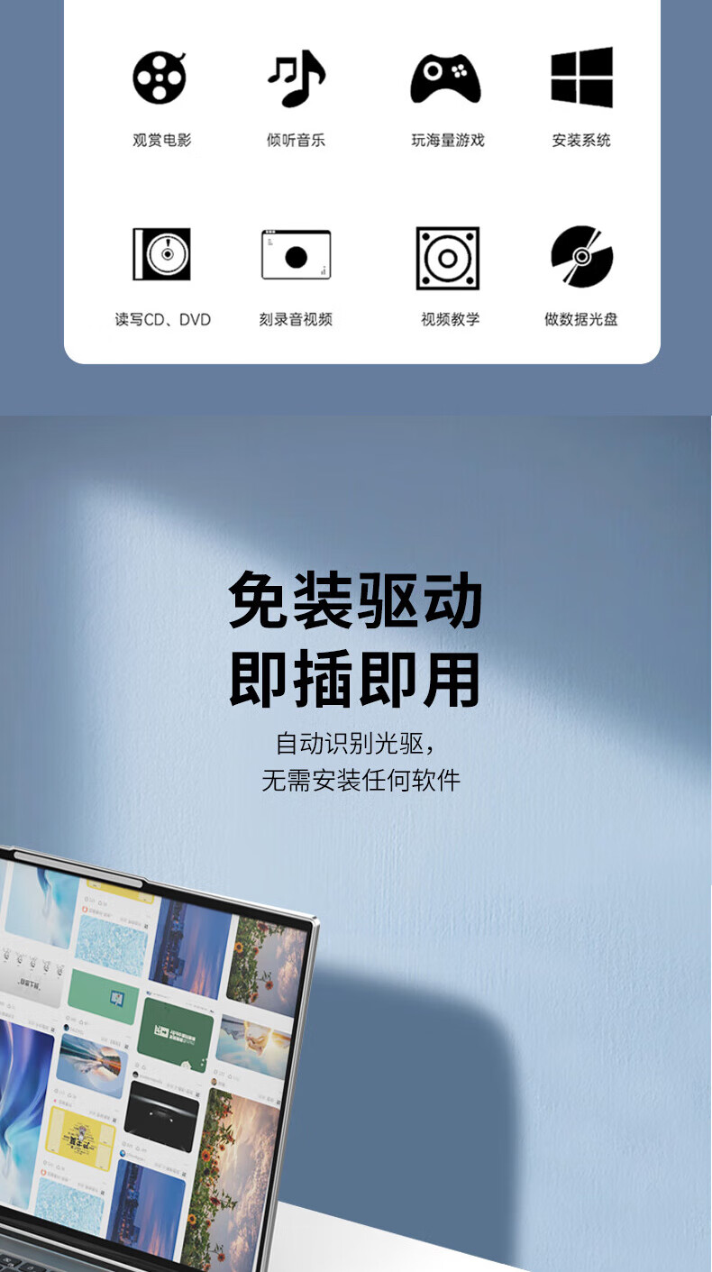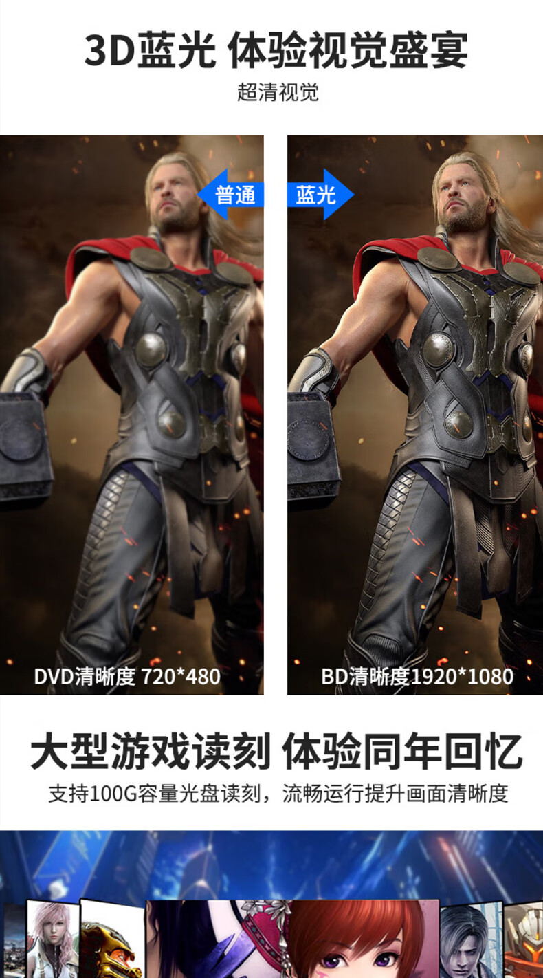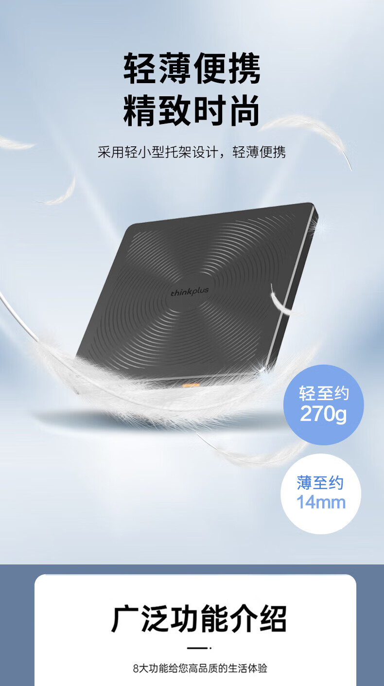 Externes optisches Laufwerk von Lenovo, externer DVD-Recorder, mobiles optisches Laufwerk, externes optisches Laufwerk, tragbares optisches Laufwerk für Laptops, externes Lesegerät und Brenner, schwarzes GP95-Dual-Interface, optisches Blu-ray-Laufwerk (U+C-Anschluss)