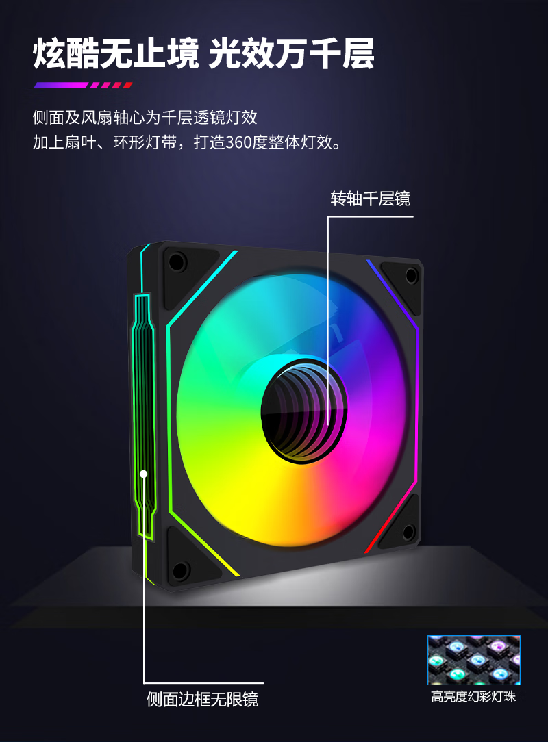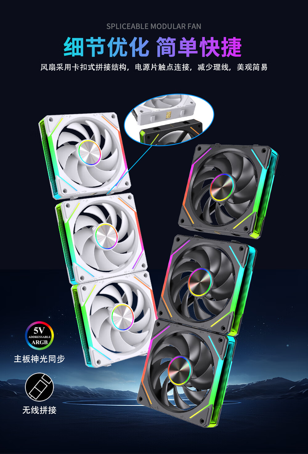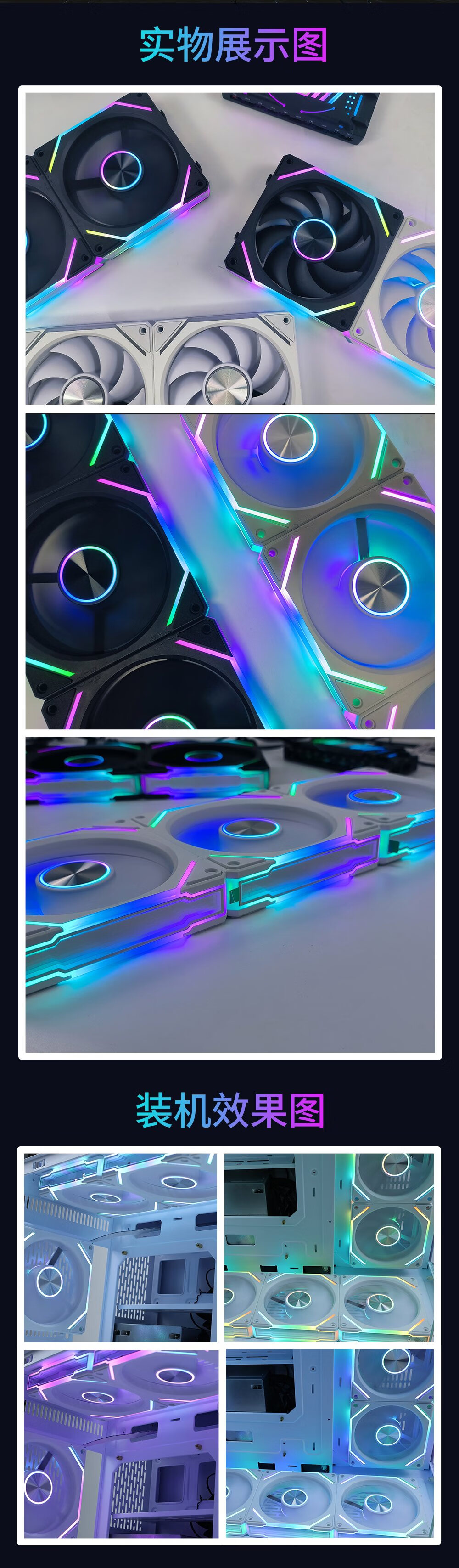 Rayleigh Cool Prism 4th Generation PRO Xingle Building Blocks F1RS Prism 7PRO12CM Computer Case Fan Front and Back Blades Wireless Splicing Water Cooling/ARGB Divine Light Synchronization/PWM Temperature Control Prism 4th Generation PRO Black Positive Leaf Authentic Boxed