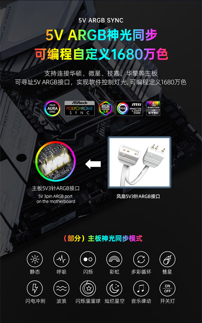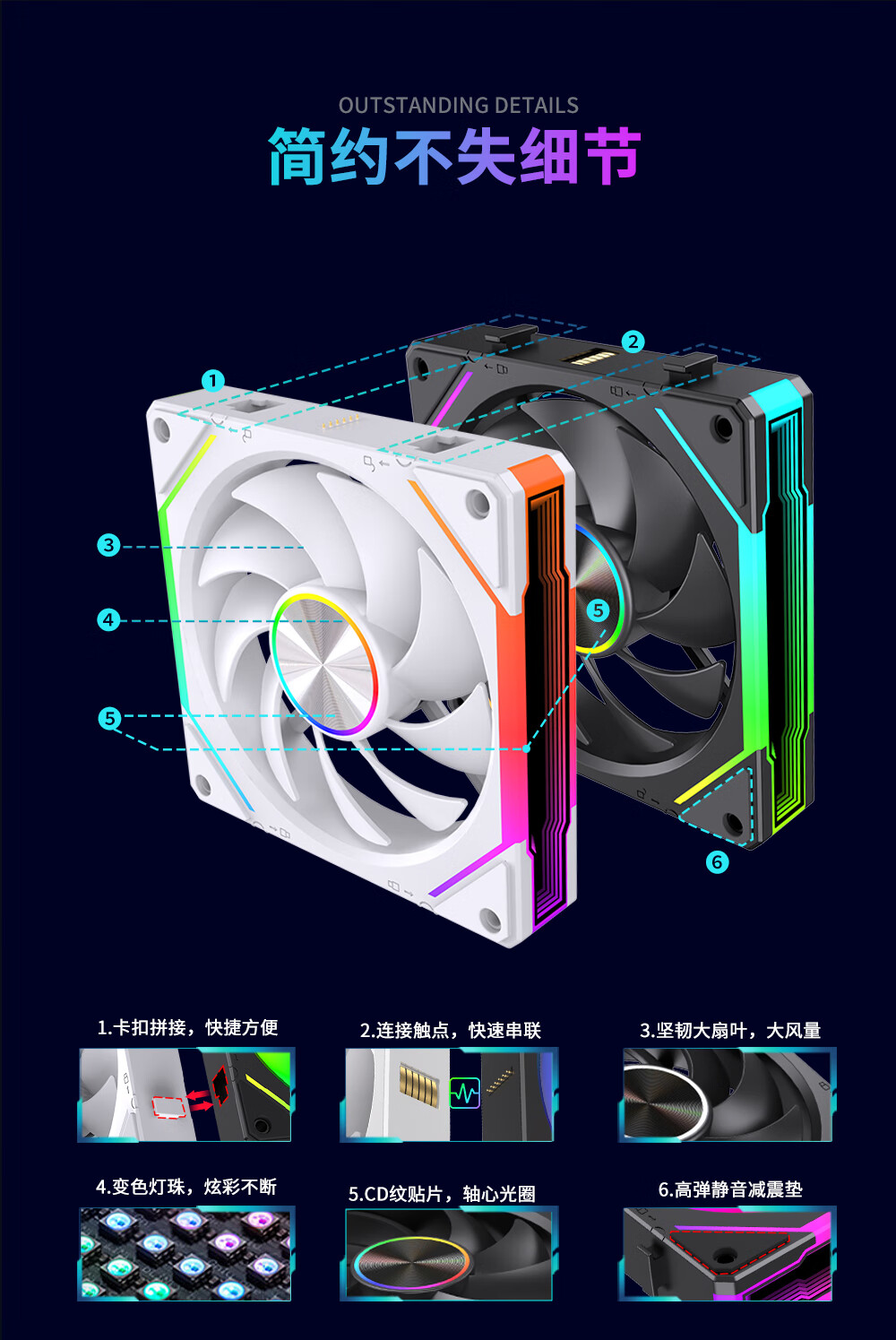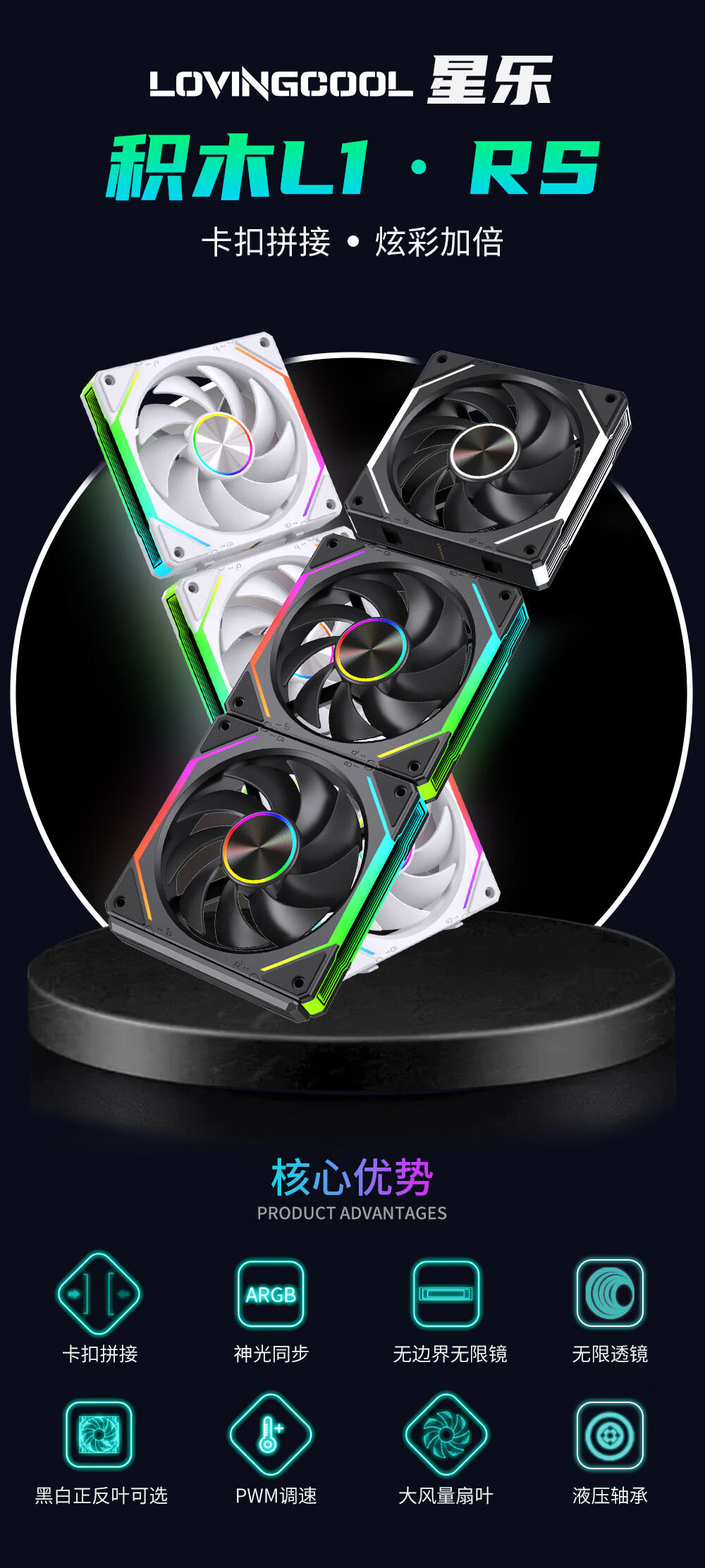 Rayleigh Cool Prism 4th Generation PRO Xingle Building Blocks F1RS Prism 7PRO12CM Computer Case Fan Front and Back Blades Wireless Splicing Water Cooling/ARGB Divine Light Synchronization/PWM Temperature Control Prism 4th Generation PRO Black Positive Leaf Authentic Boxed
