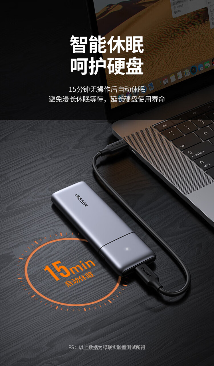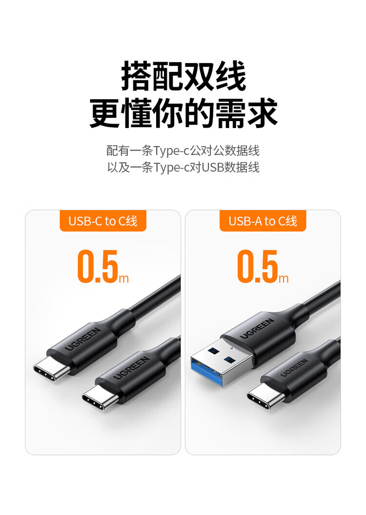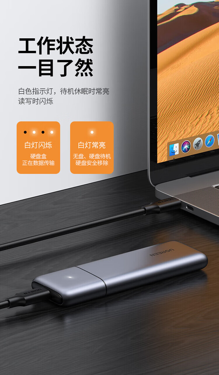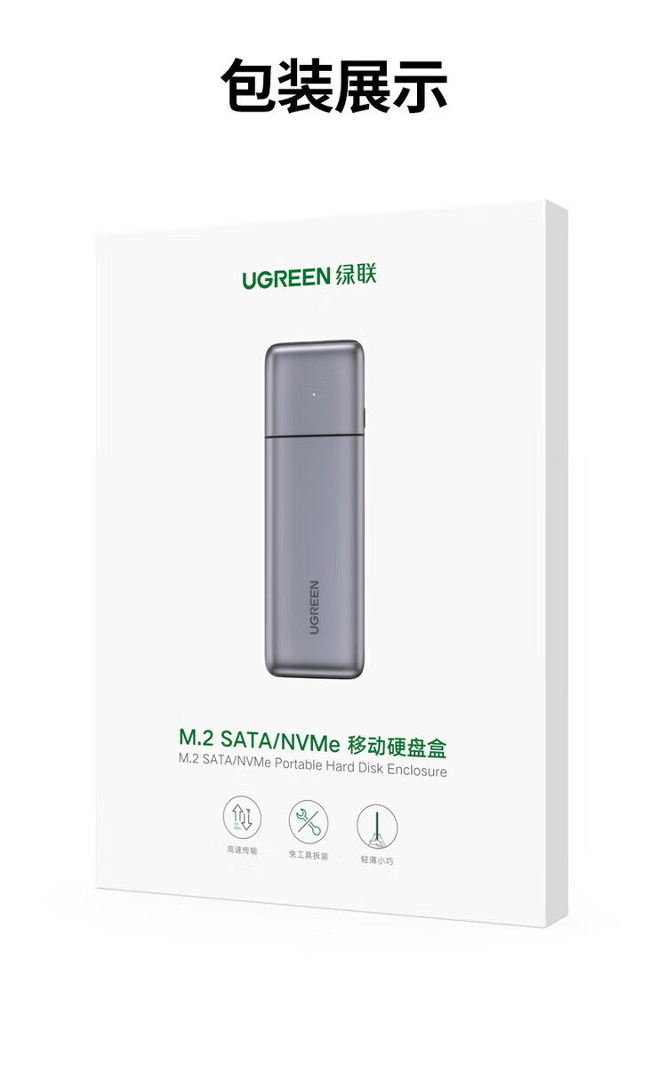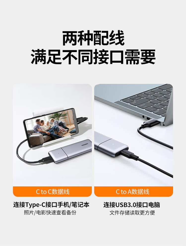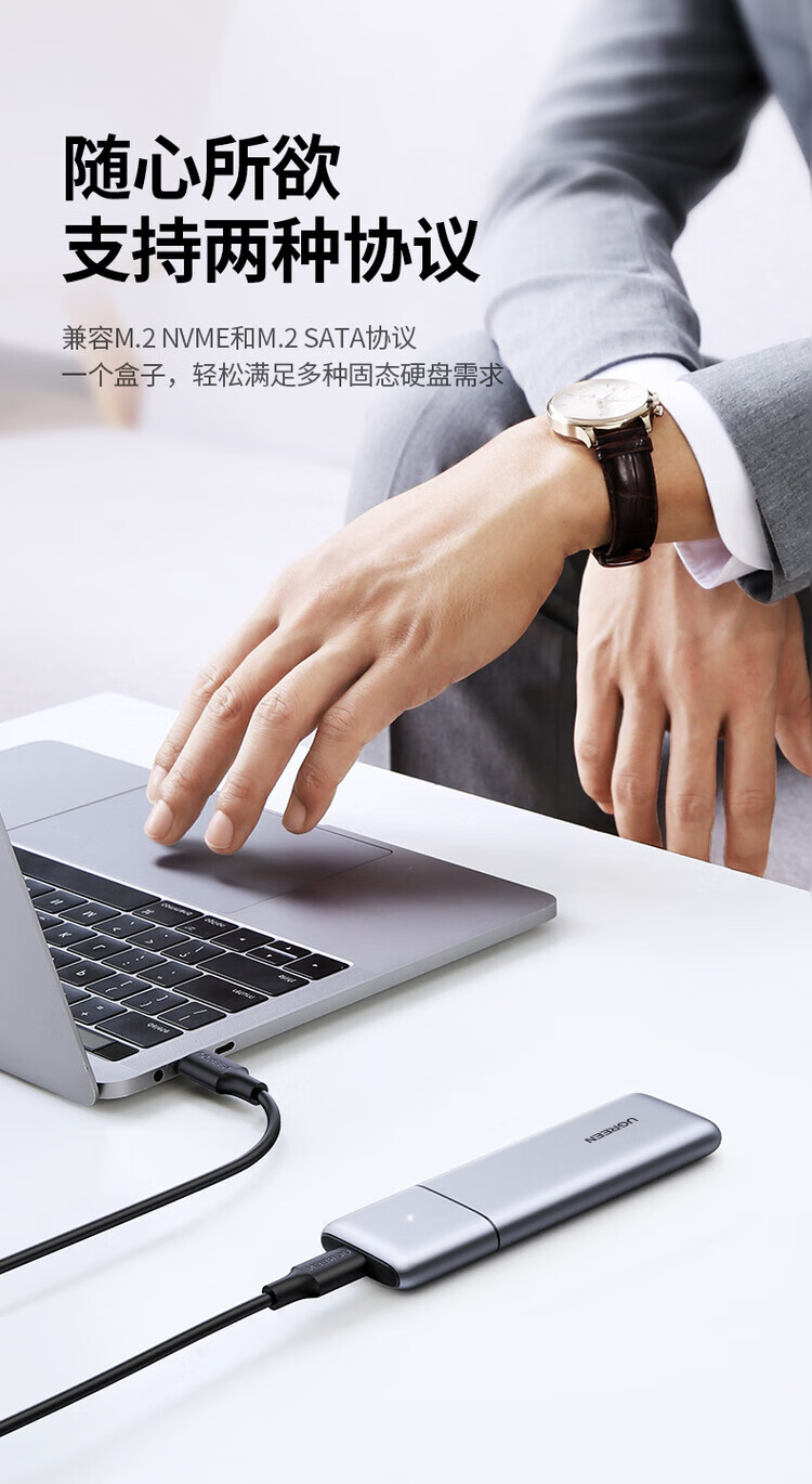 绿联(UGREEN) 固态硬盘盒 M.2 转SATA 2.5英寸 NGFF NVMe/SATA移动硬盘盒 Type-C3.2固态硬盘盒 硬盘外置盒子 M.2 SATA/NGFF转SATA 80338