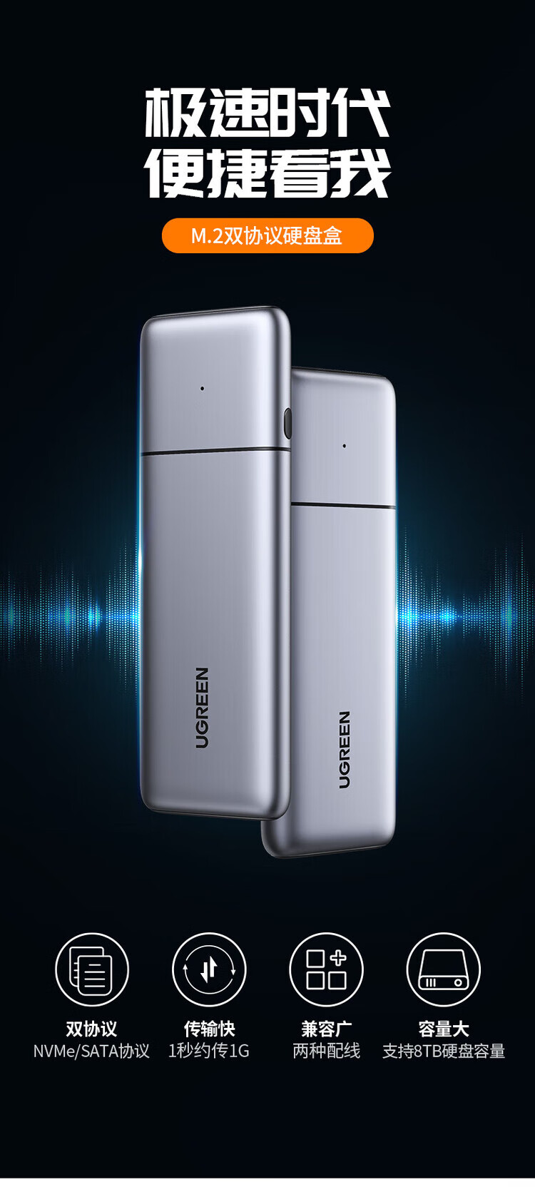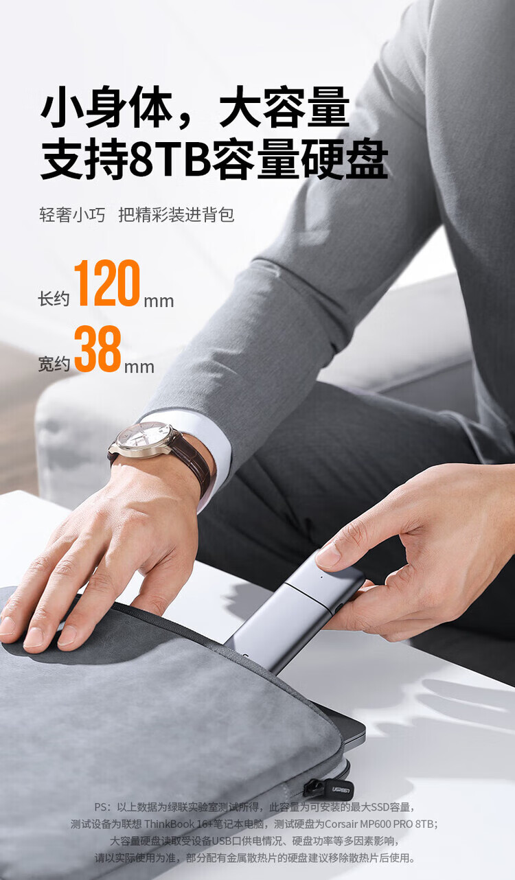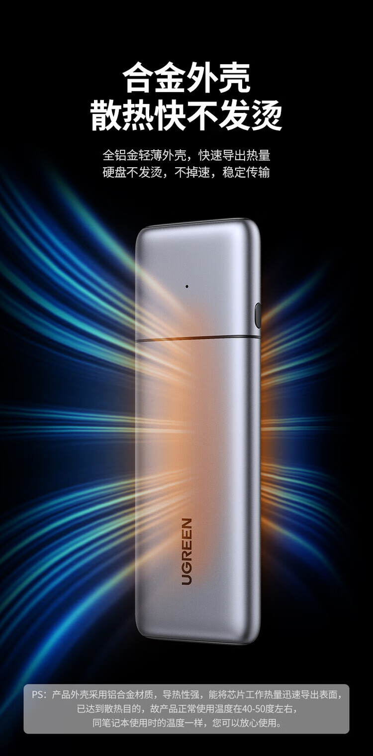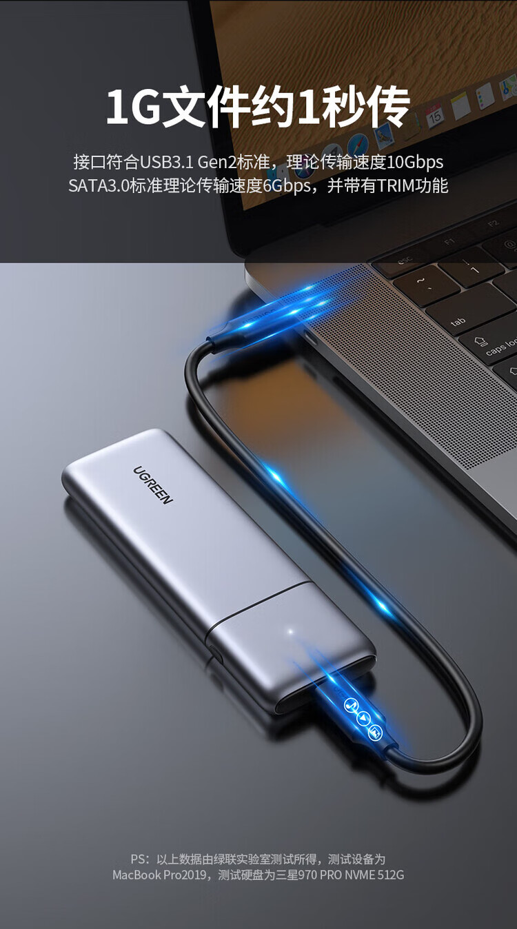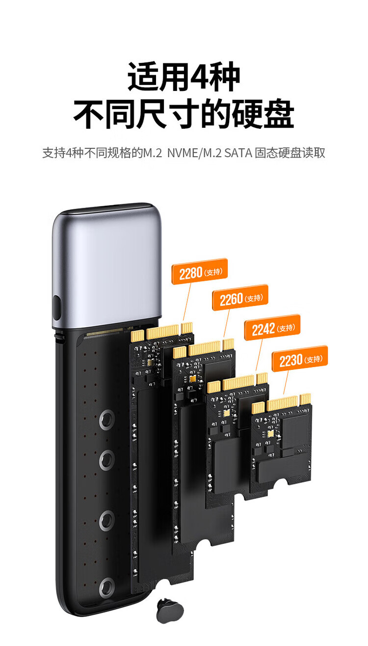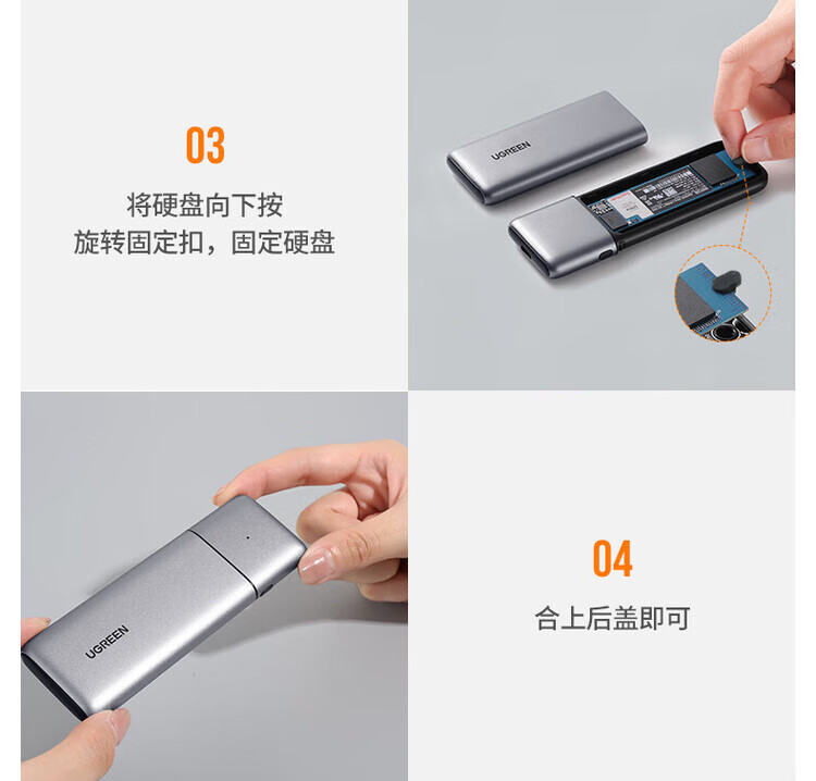 绿联(UGREEN) 固态硬盘盒 M.2 转SATA 2.5英寸 NGFF NVMe/SATA移动硬盘盒 Type-C3.2固态硬盘盒 硬盘外置盒子 M.2 SATA/NGFF转SATA 80338