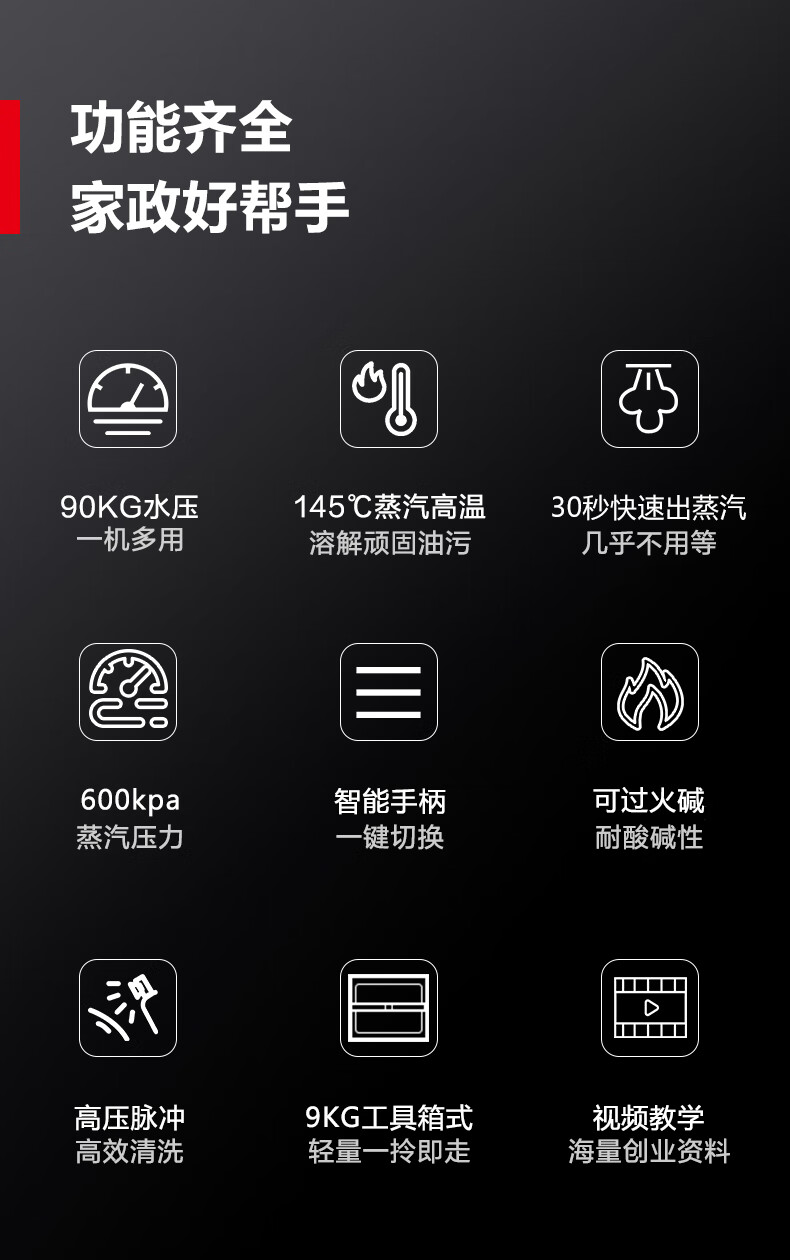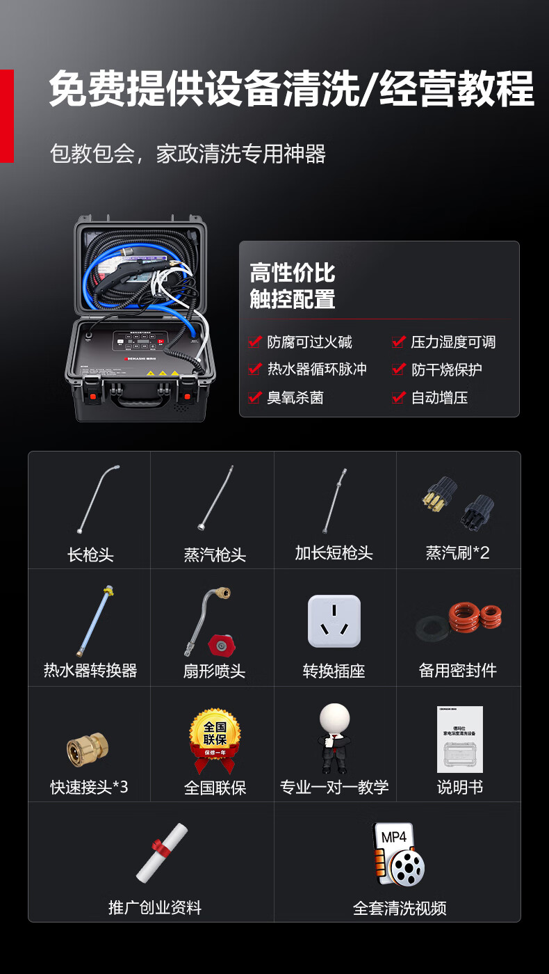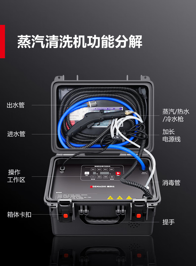 DEMASHI high temperature and high pressure steam cleaner, air conditioner, home appliance cleaning machine, kitchen range hood, water heater, multi-functional all-in-one machine, commercial steam cleaning equipment QXJ-60TA1 gift package | 90 kg pressure | computer touch