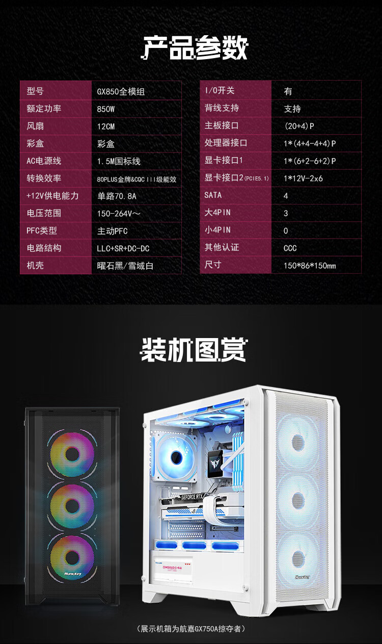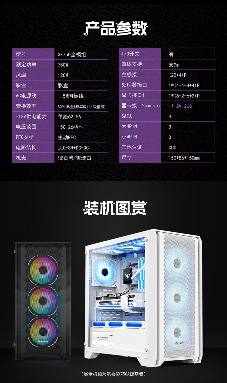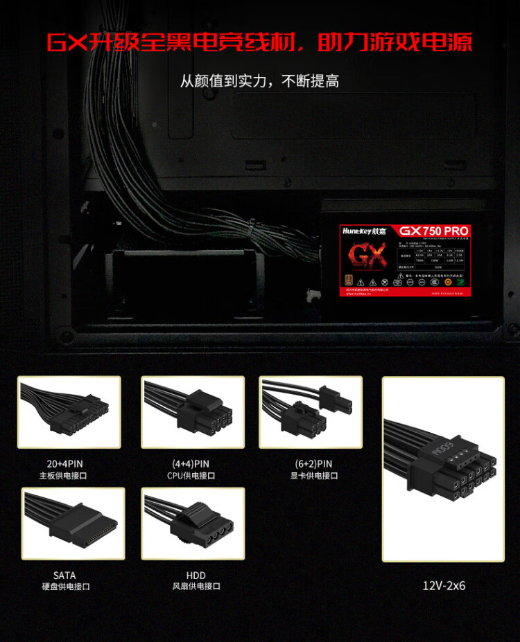 Das Desktop-Host-Netzteil der GX-Serie von Huntkey hat eine Nennleistung von 650 W/700 W/750 W/800 W/850 W. Das breite Computer-Gaming-Netzteil unterstützt die CPU-Übertaktung. GX650M weiß – 650 W, Goldmedaillen-Modul, 80PLUS-Zertifizierung