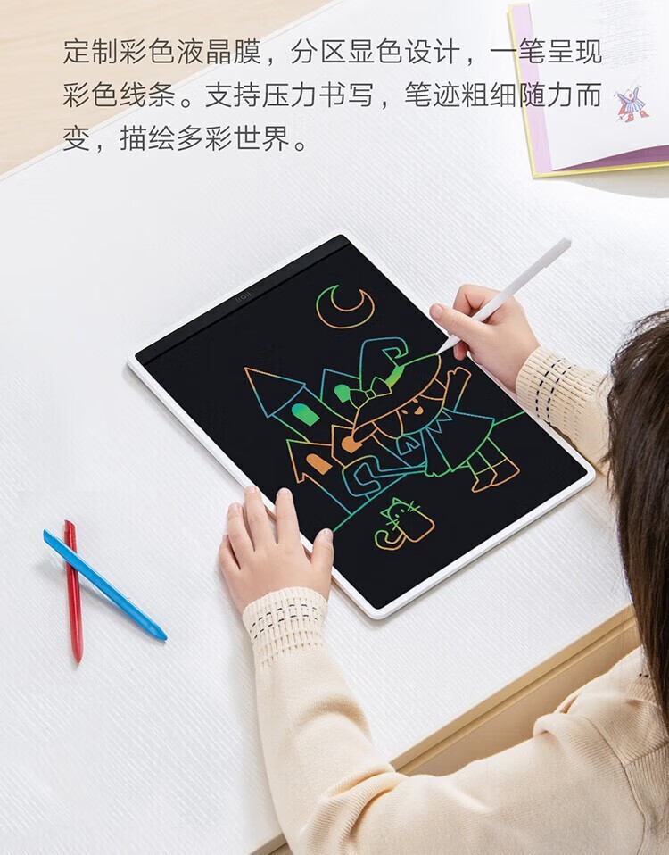 Kleine Xiaomi-LCD-Tafel, bunte Version, magnetischer Anti-Verlust-Stift mit Rutsche, bunte Linien, kein blaues Licht, farbiger LCD-Film, druckempfindliches Schreiben, sicherer Augenschutz, tragbar, langlebige Akkulaufzeit, kleine Xiaomi-LCD-Tafel, bunte Version 10 Zoll