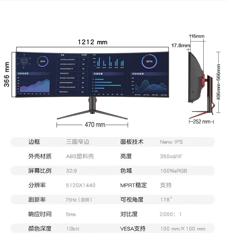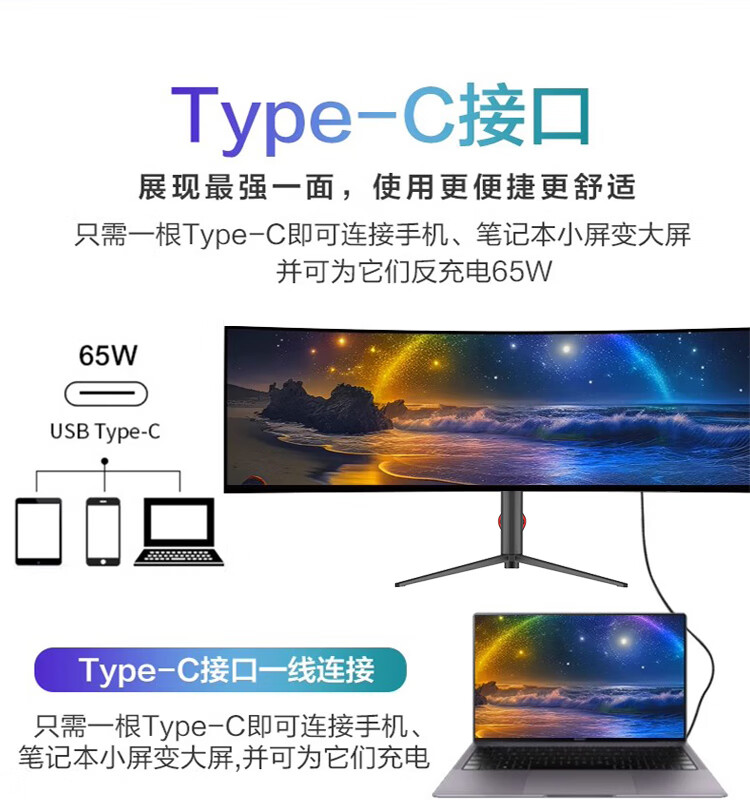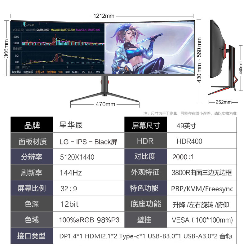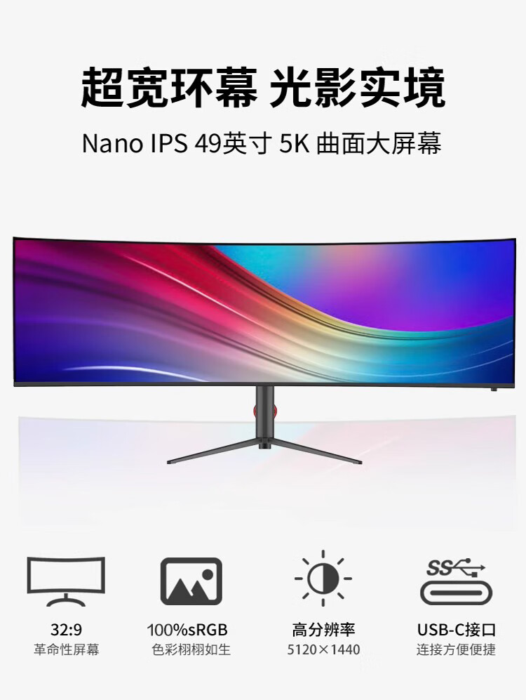 星华辰 40/49英寸准5K显示器超宽32:9曲面NANO-IPS-LG面板升降旋转专业护眼带鱼屏组双QHD Type-C直连PBP 49英寸4K+165HZ曲面电竞HVA面板