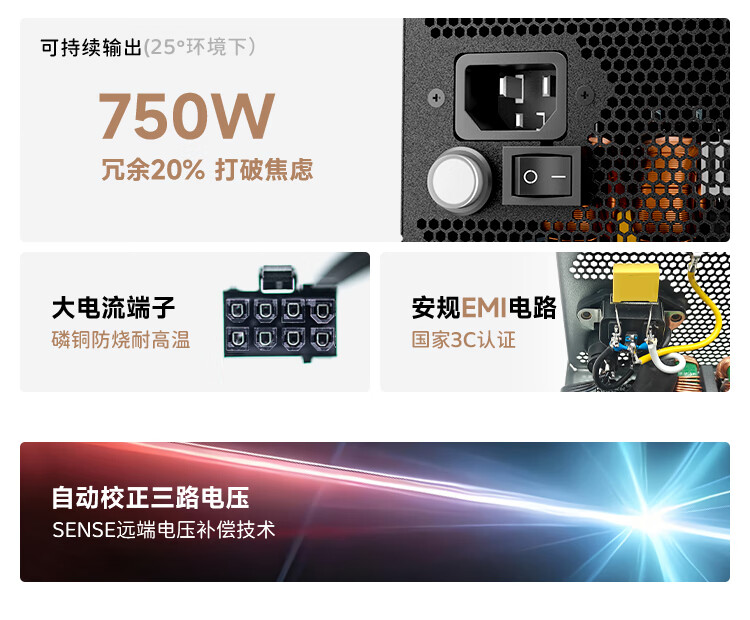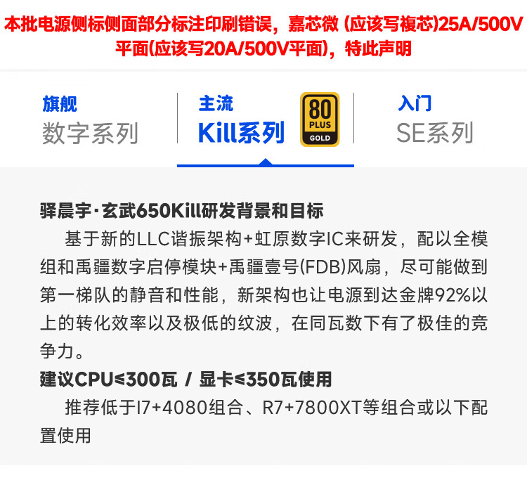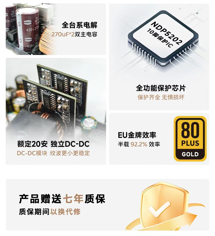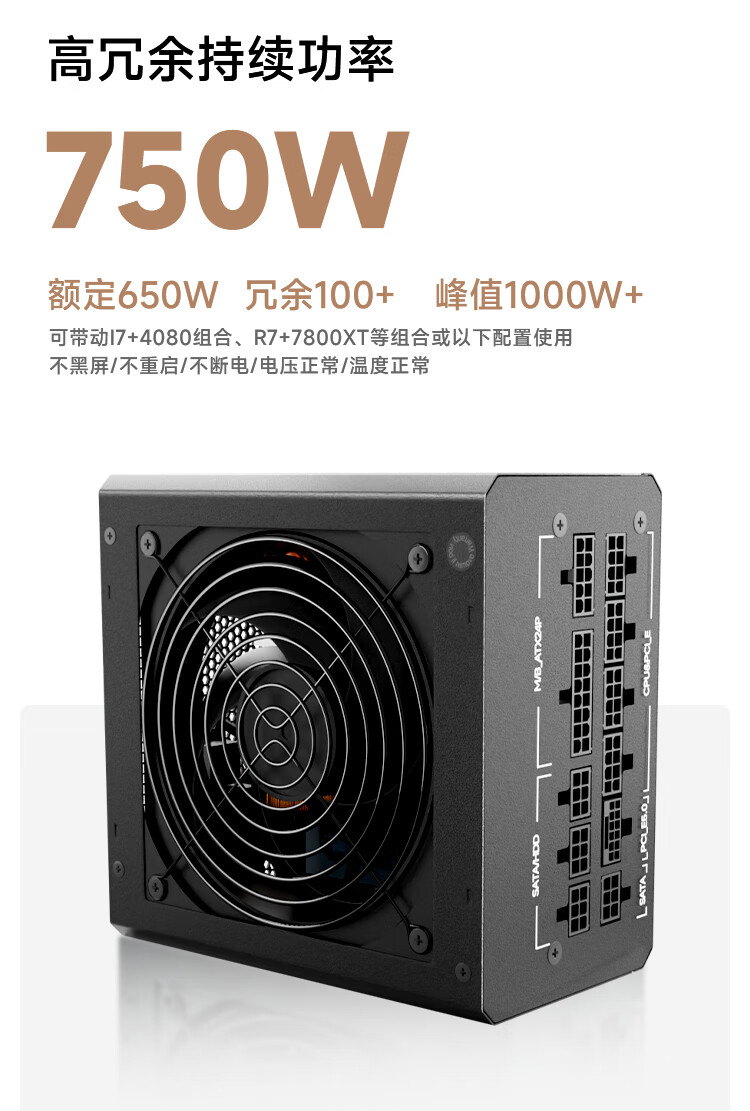 Yichenyu Chenyu Technology customized host power supply Yujiang cooling Xuanwu 650k sustainable 750W peak full module gold medal power supply Xuanwu 650K Yujiang white seven-year warranty with AC cord