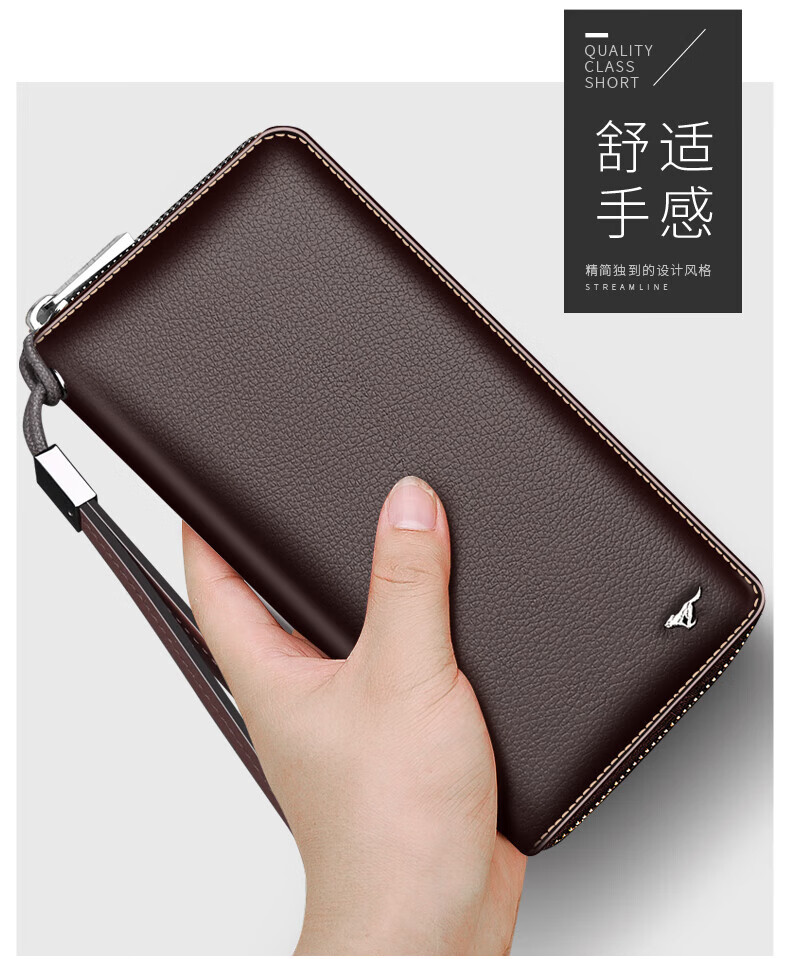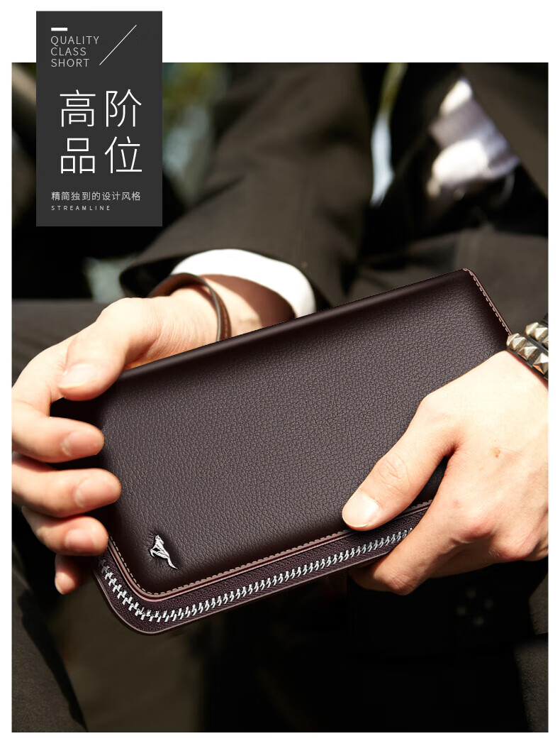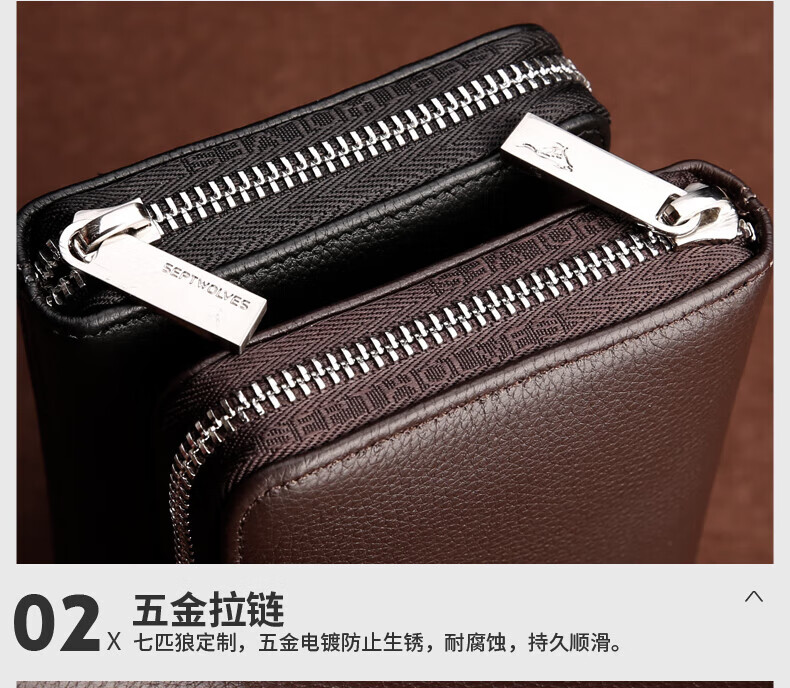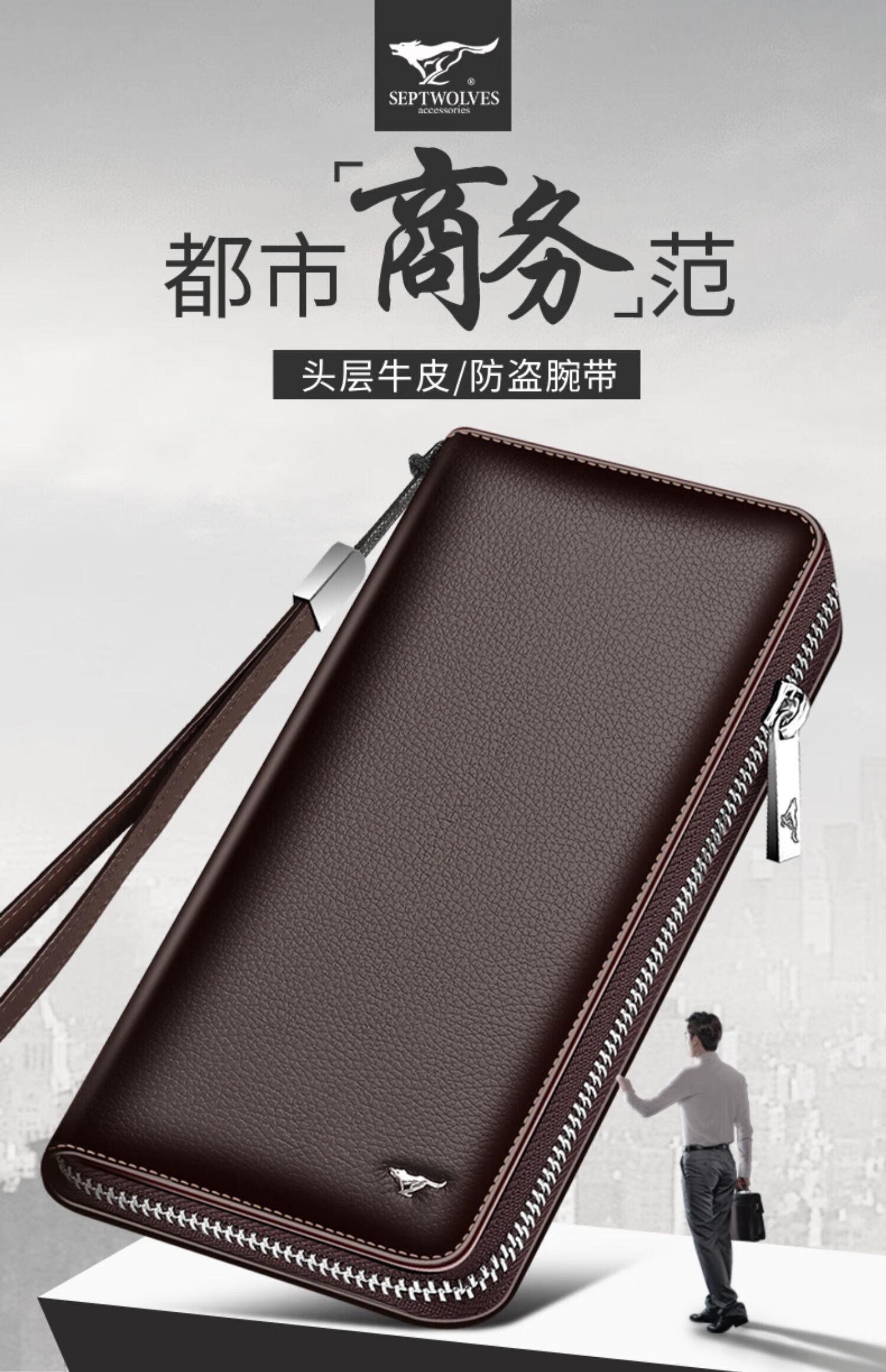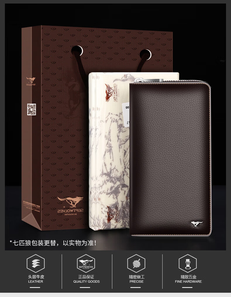 七匹狼(SEPTWOLVES)钱包男长款拉链大容量软皮手包真皮皮夹皮包生日礼物送男友送爸爸 黑色