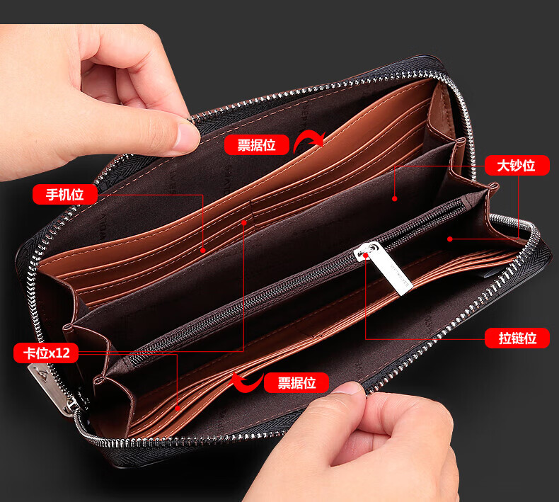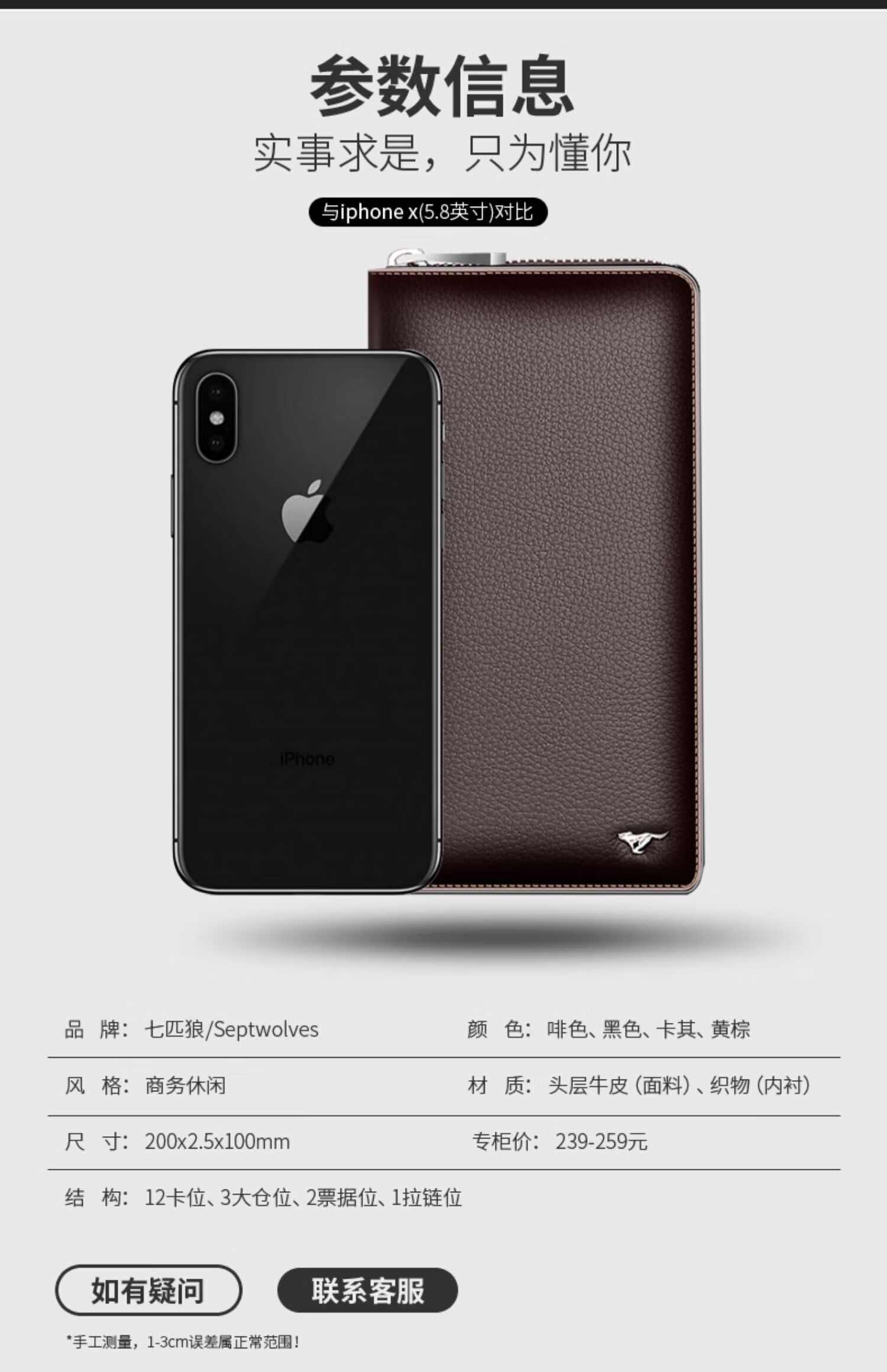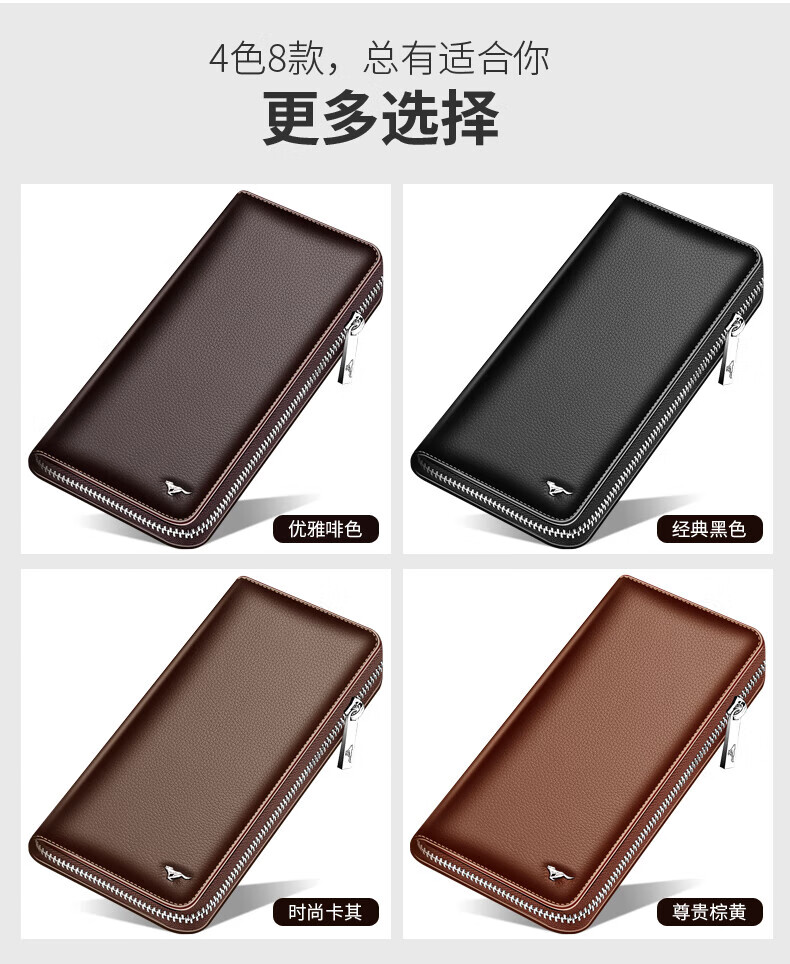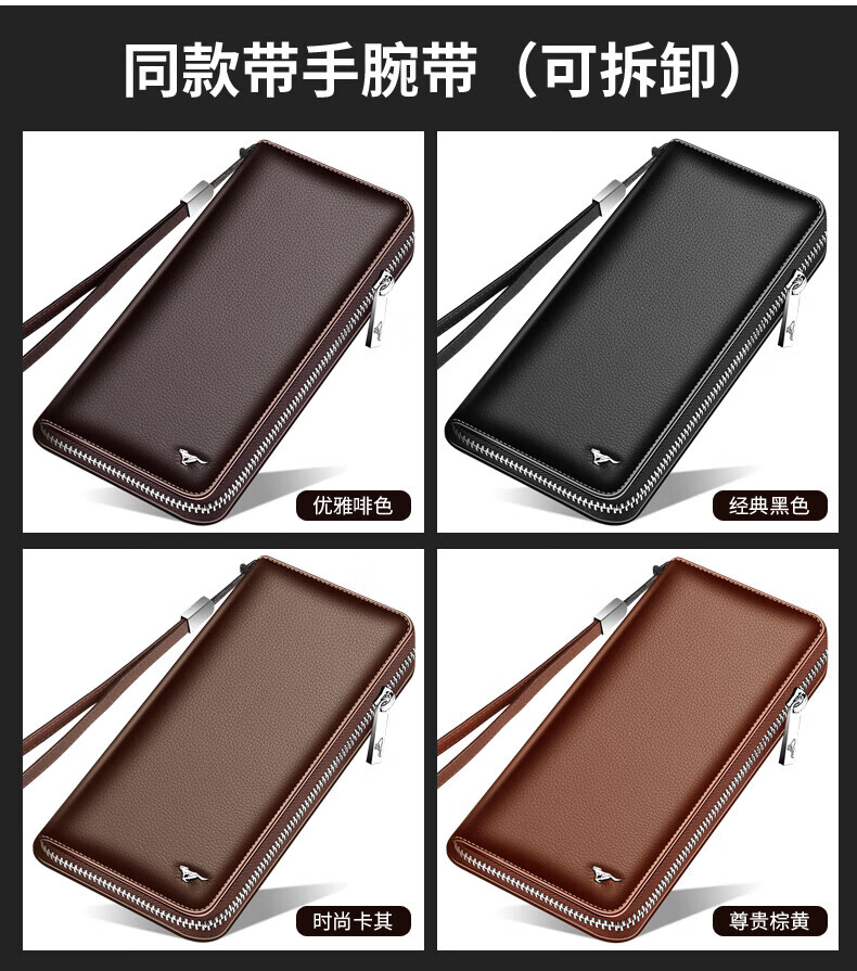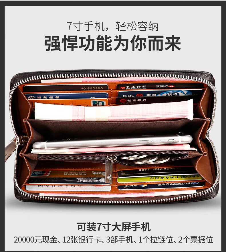 七匹狼(SEPTWOLVES)钱包男长款拉链大容量软皮手包真皮皮夹皮包生日礼物送男友送爸爸 黑色
