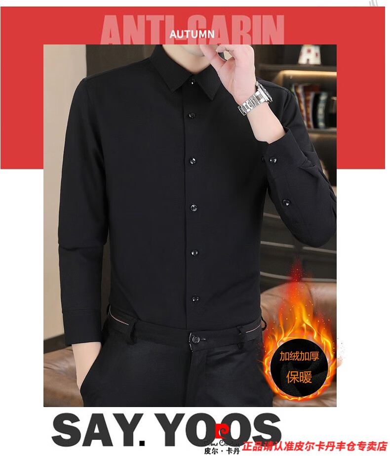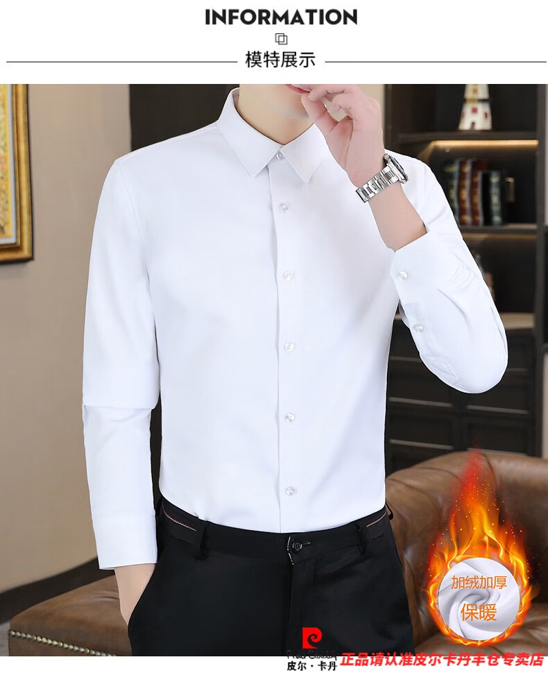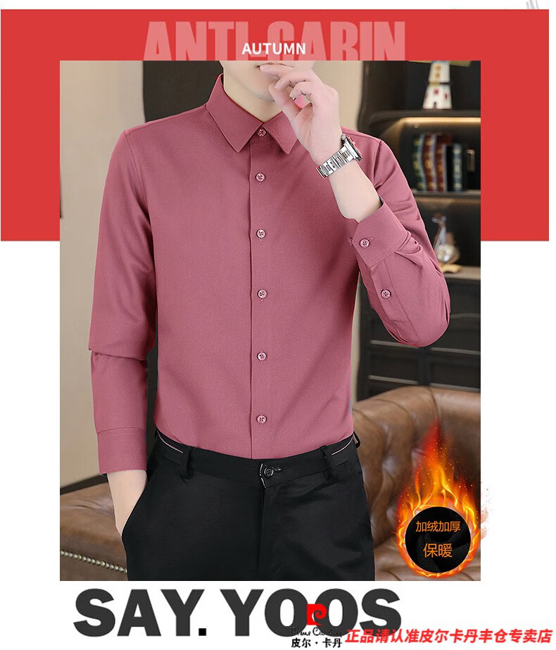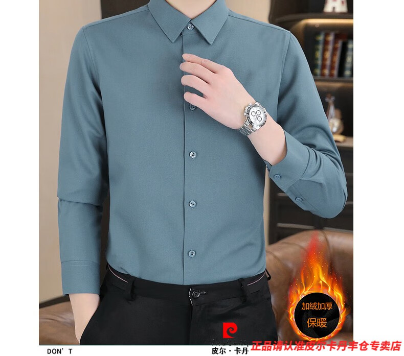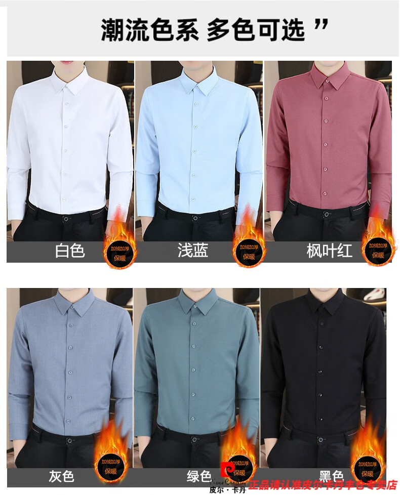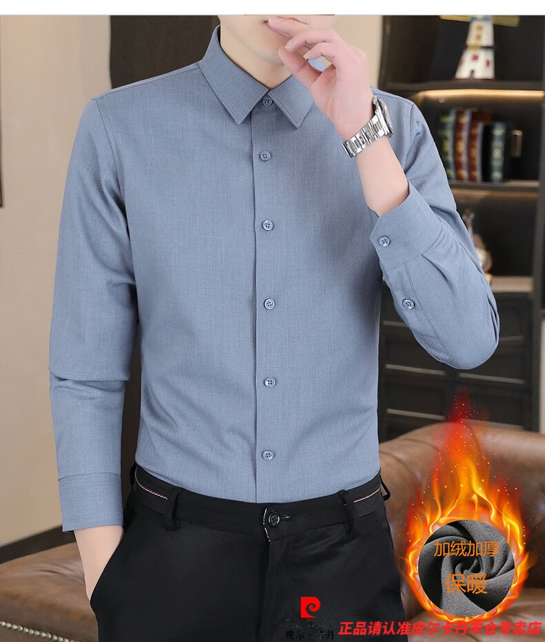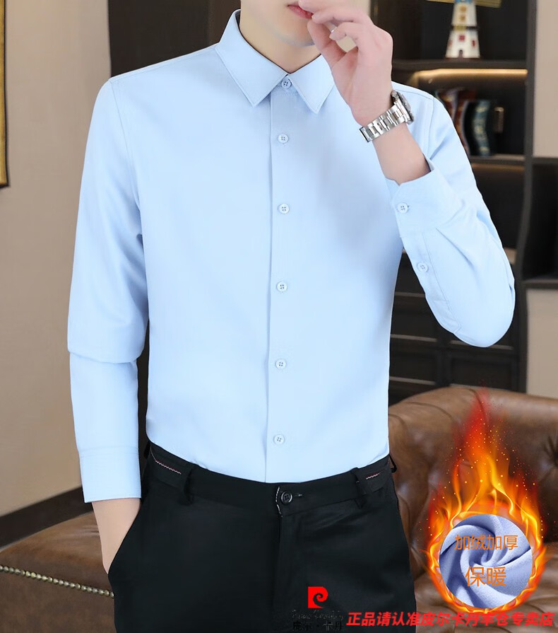 Pierre Cardin winter new one-piece velvet shirt men's long-sleeved business casual elastic color plus velvet thickened warm shirt knitted light blue one-piece velvet 6XL suitable for 205-225Jin Jin equals 0.5 kg