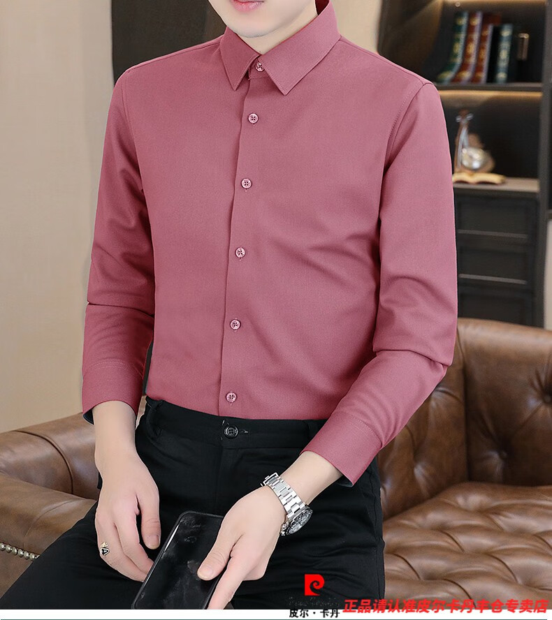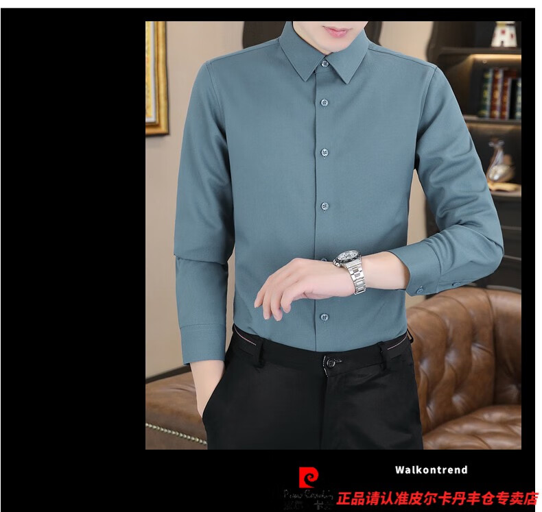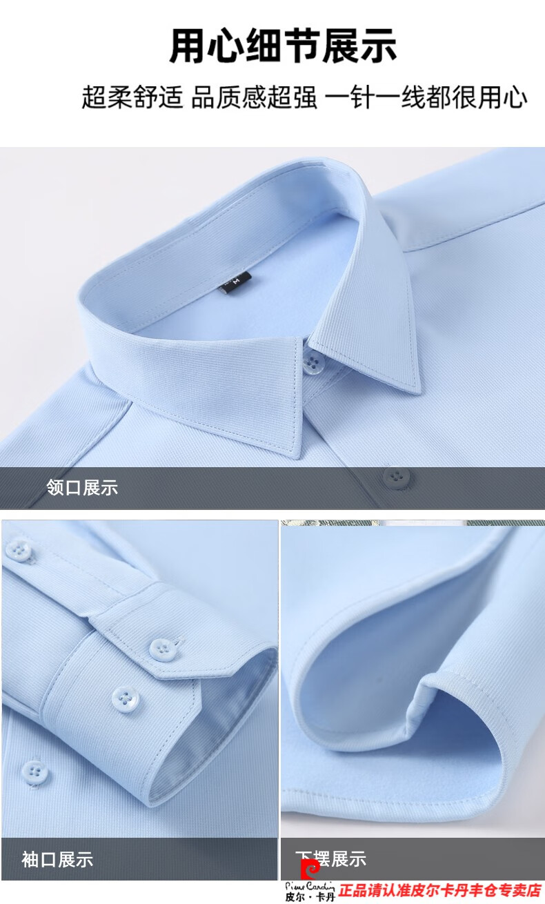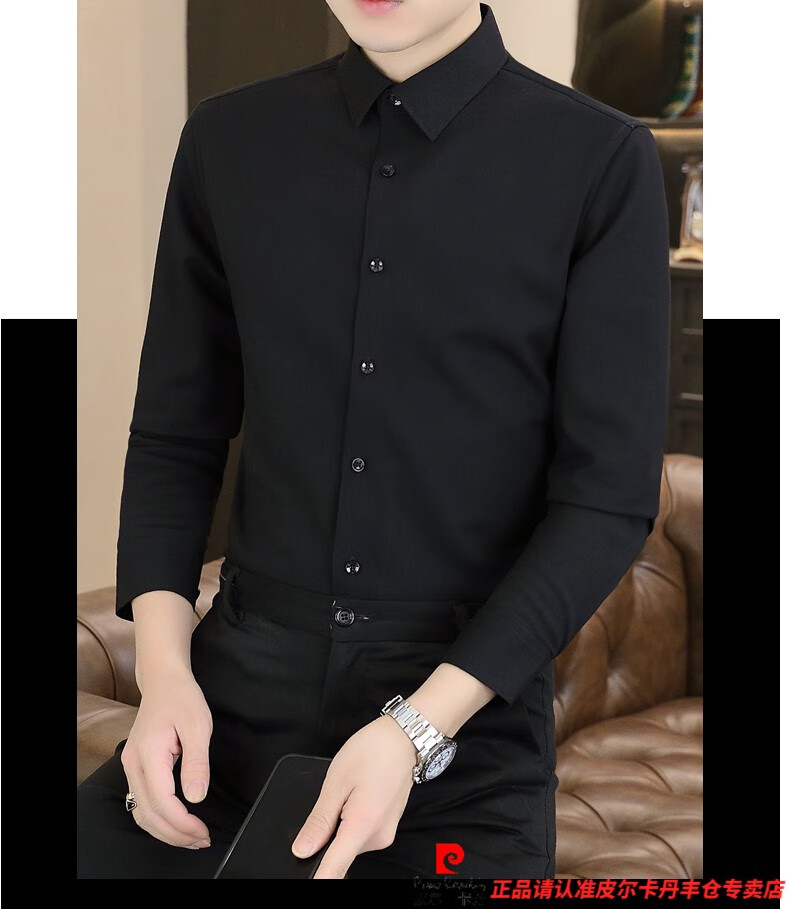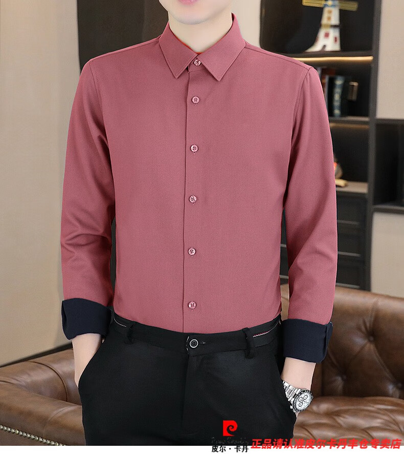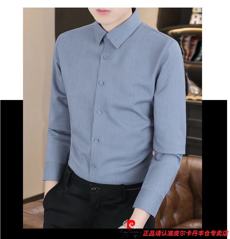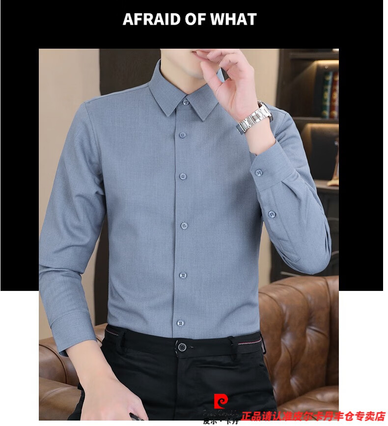 Pierre Cardin winter new one-piece velvet shirt men's long-sleeved business casual elastic color plus velvet thickened warm shirt knitted light blue one-piece velvet 6XL suitable for 205-225Jin Jin equals 0.5 kg