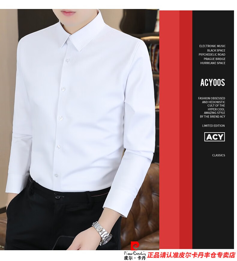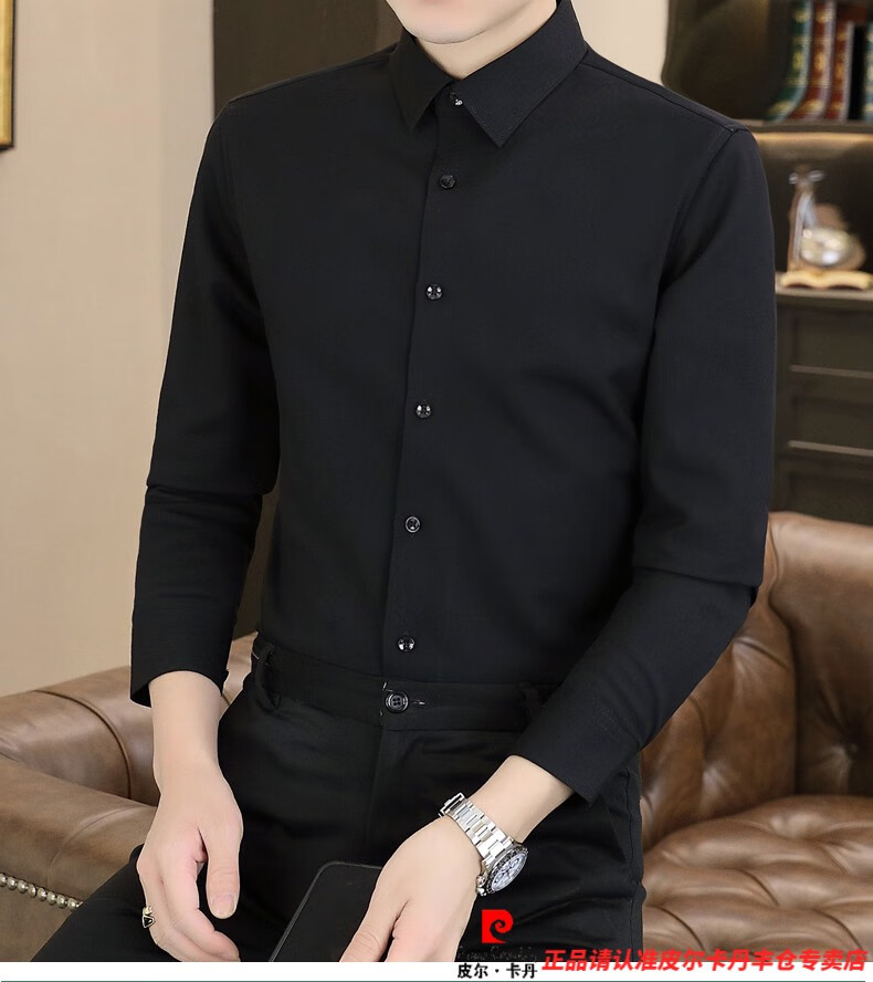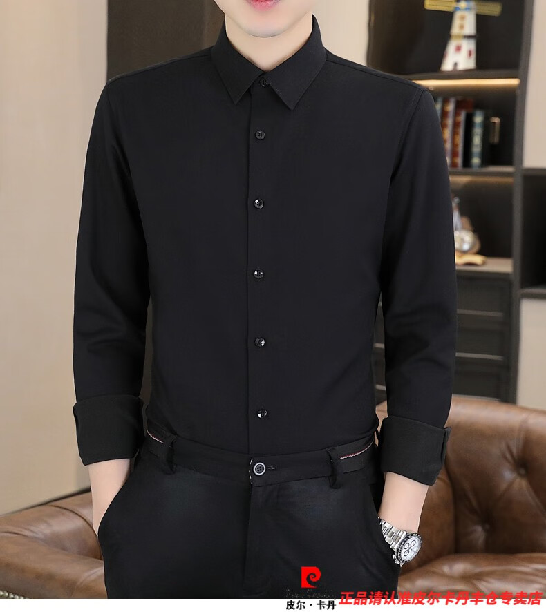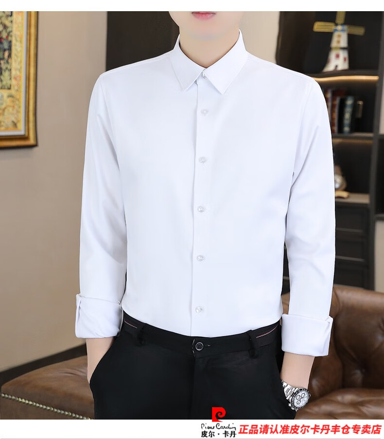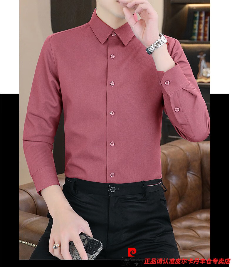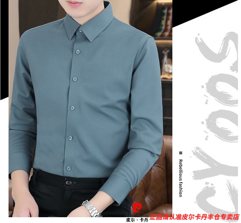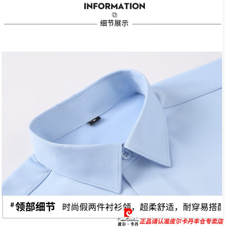 Pierre Cardin winter new one-piece velvet shirt men's long-sleeved business casual elastic color plus velvet thickened warm shirt knitted light blue one-piece velvet 6XL suitable for 205-225Jin Jin equals 0.5 kg