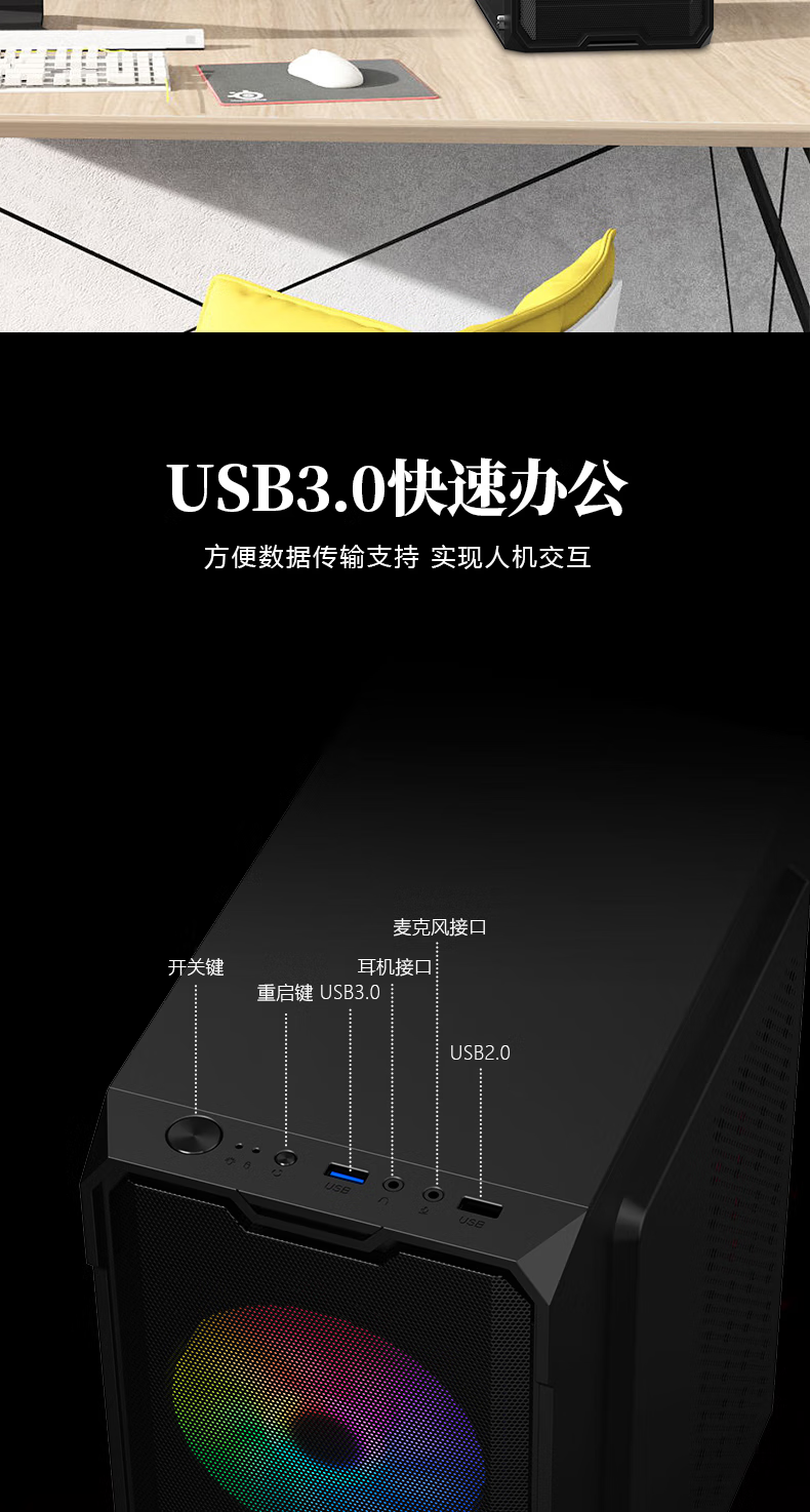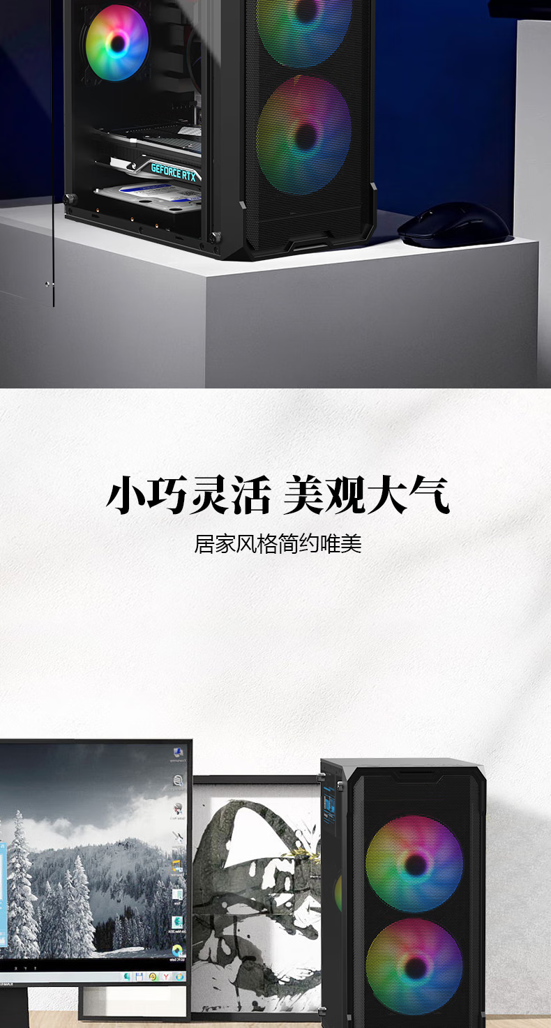 EVESKY (EVESKY) Ask the World Computer Case Desktop DIY Full Side Transparent Dustproof Water Cooling M-ATX Motherboard Desktop Mini Small Chassis USB3.0 Ask the World Standard Edition - Black