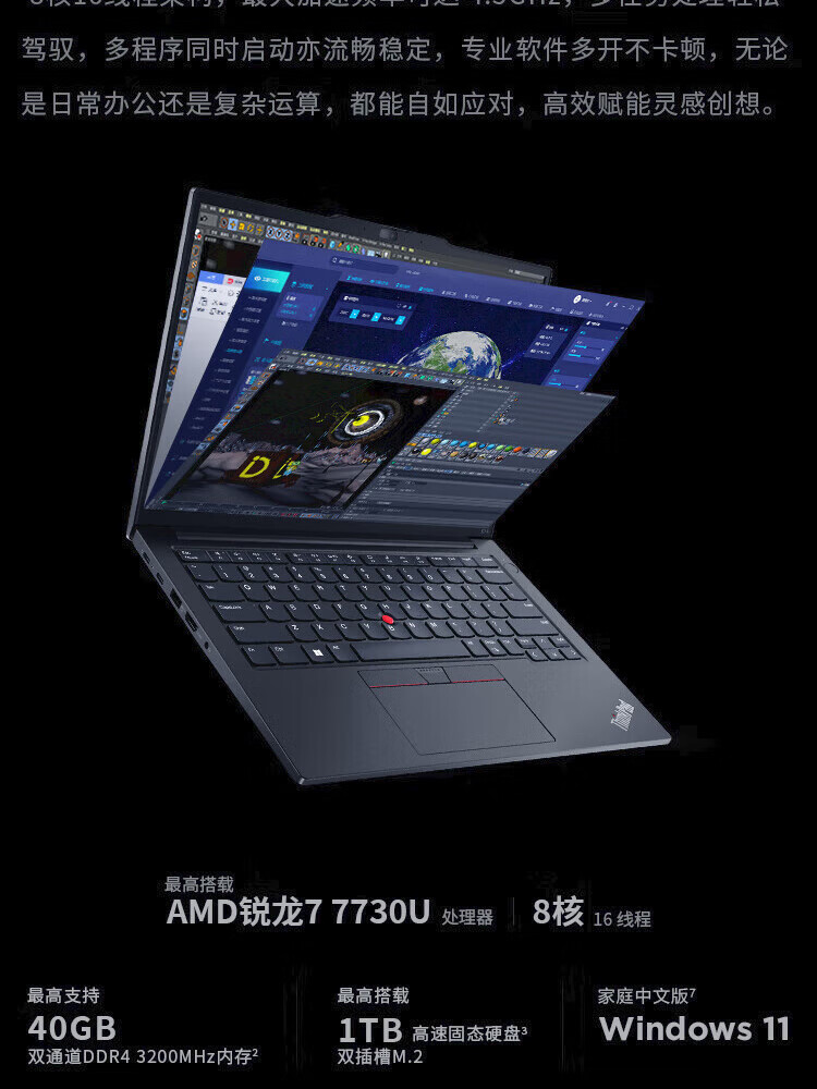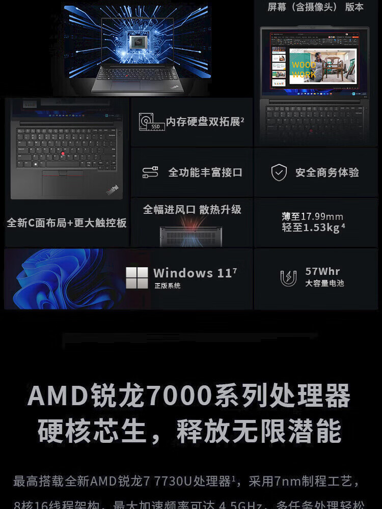 ThinkPad E14/E16 Ryzen Edition 7000 Series 2025 Subvention 20 % Hochleistung Dünn und leicht Business Office Gaming Student Designer Tragbarer Lenovo Laptop IBM E14 R7-7735H 16G 512G FDH IPS Großer Betrachtungswinkel Schnelles Aufladen Umfangreiche Schnittstellen Hardcover-Upgrade