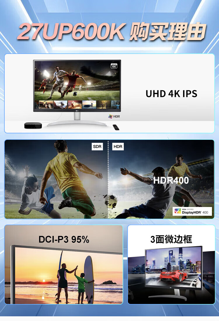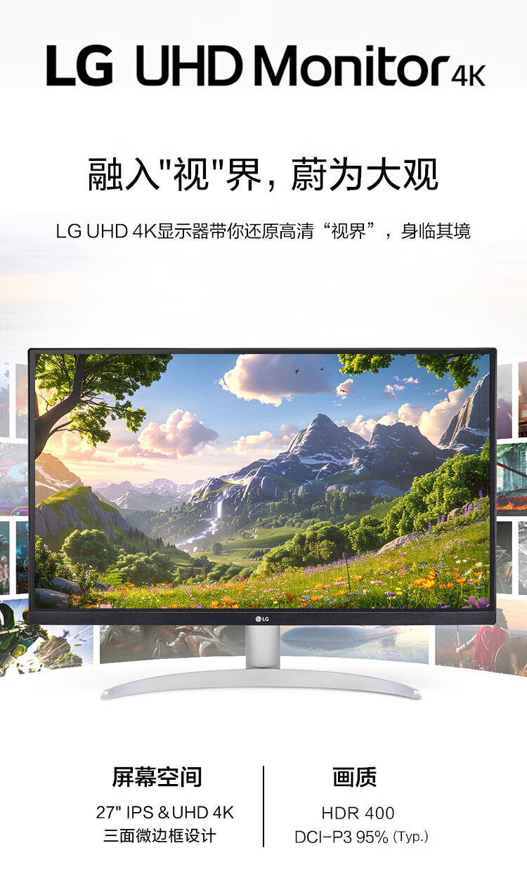 LG 27UP600K 27-дюймовый 4K-монитор HDR400 IPS-панель с микрорамкой для дизайна, программатор для рисования ЖК-дисплей настольного компьютера 27UP600K новый продукт 27-дюймовый 4K