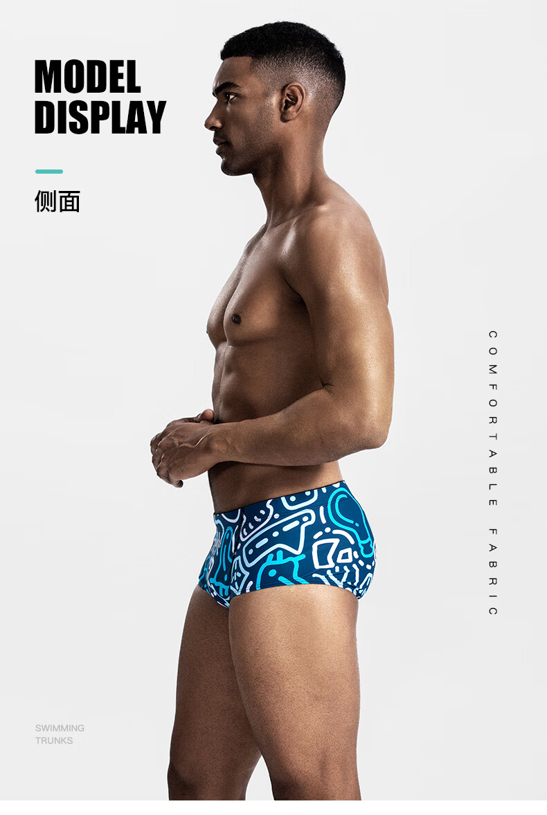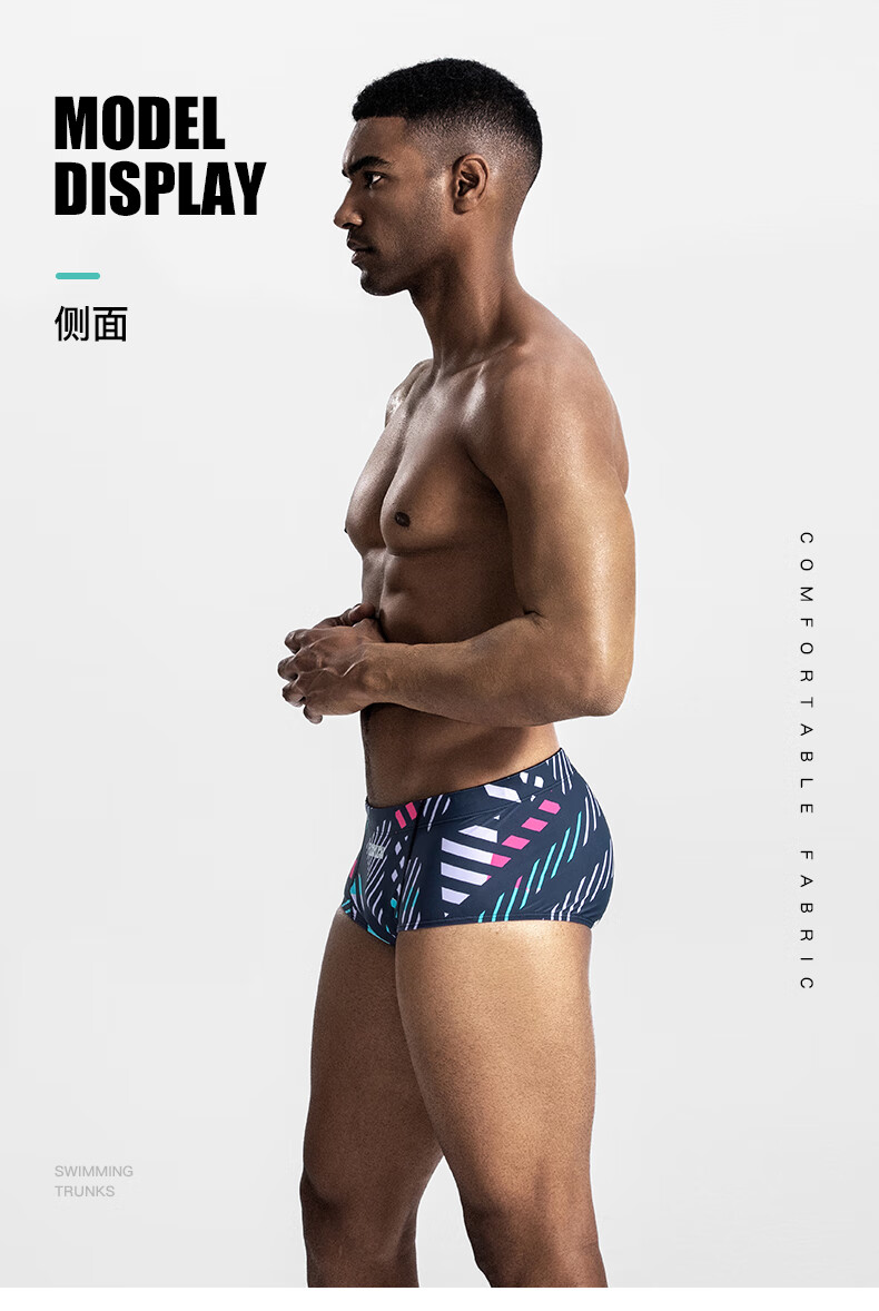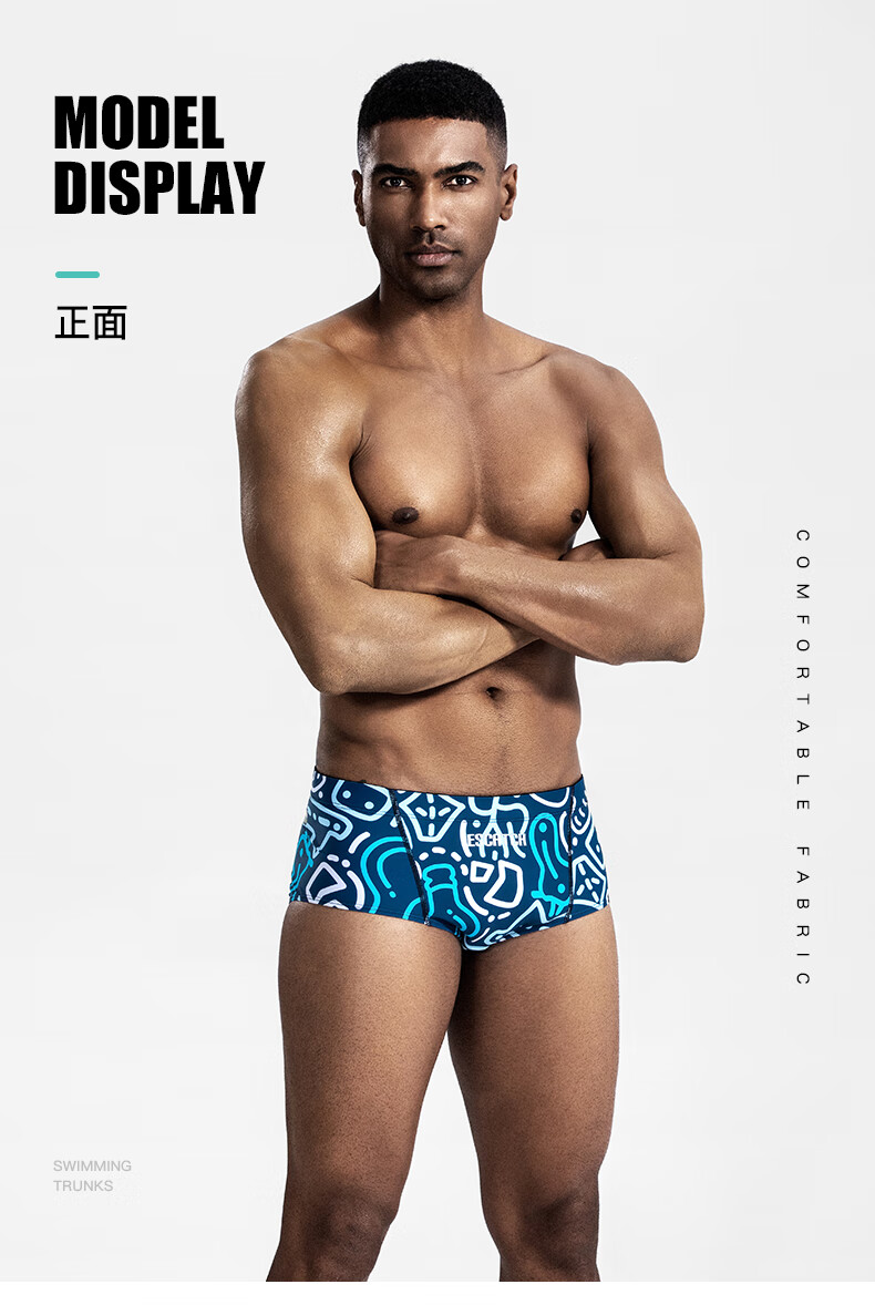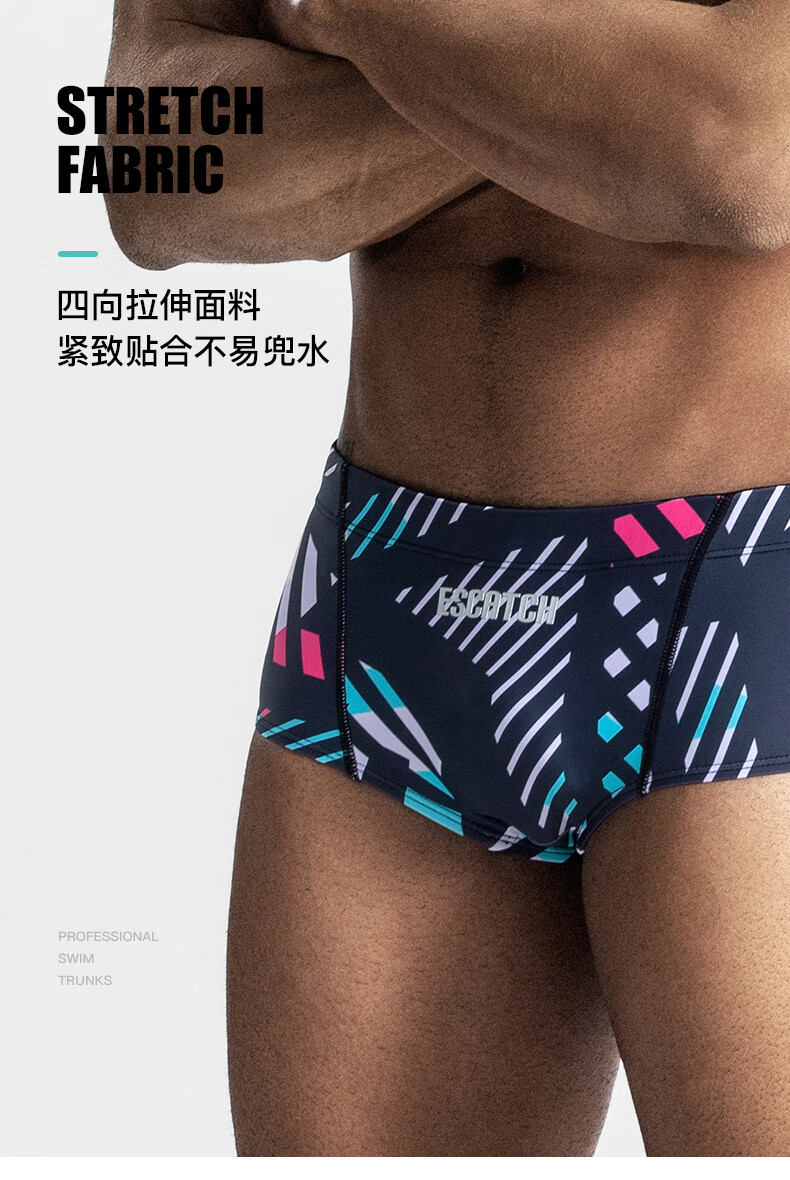 ESCATCH Badehose Herren Racing Große Dreieck-Badehose verbreitert, um Peinlichkeiten zu verhindern Kleiner quadratischer Winkel Herren-Trainingsschwimmausrüstung EY05 Marineblaue Geometrie M
