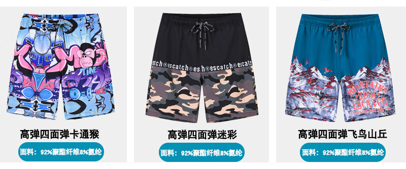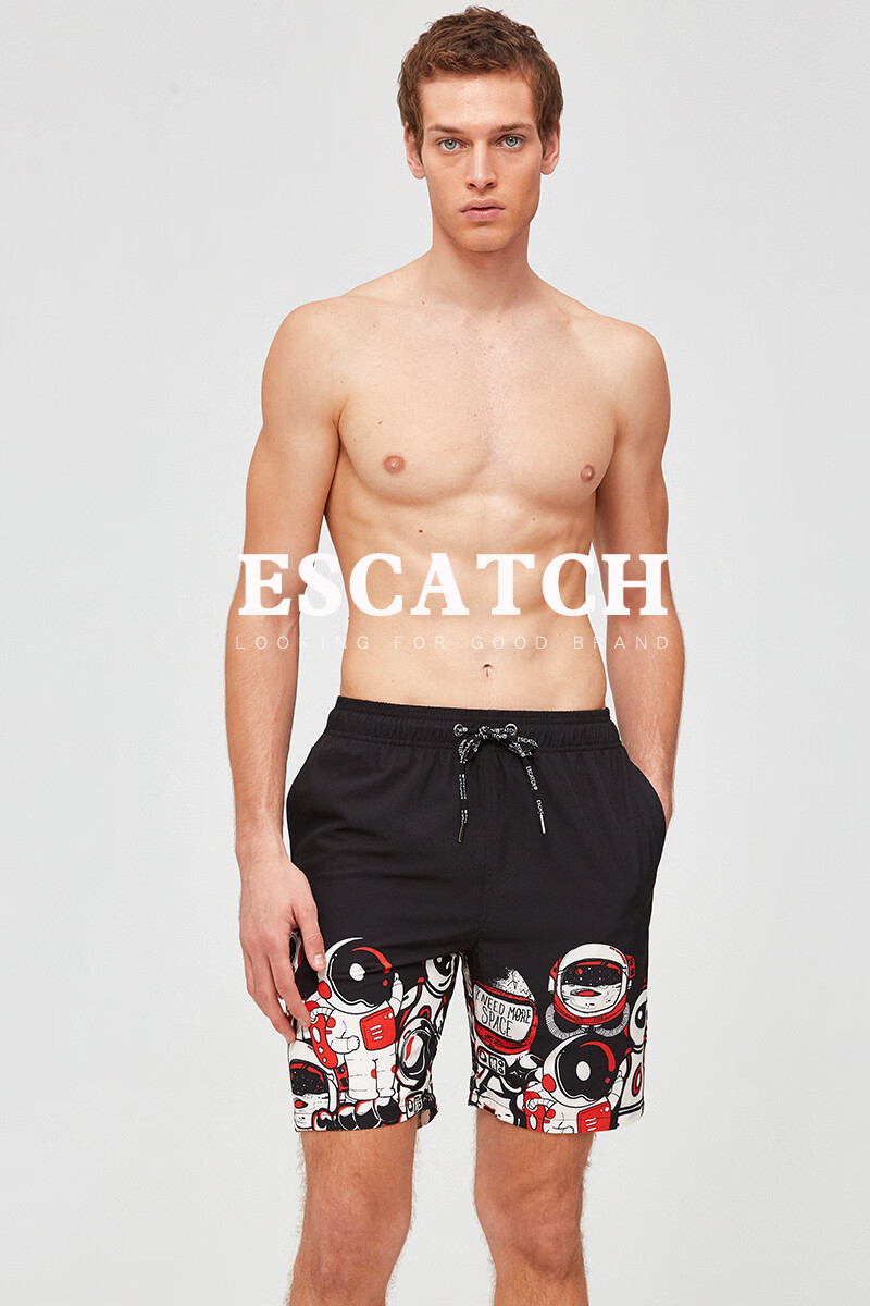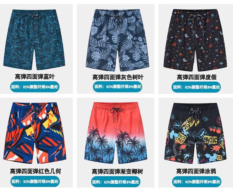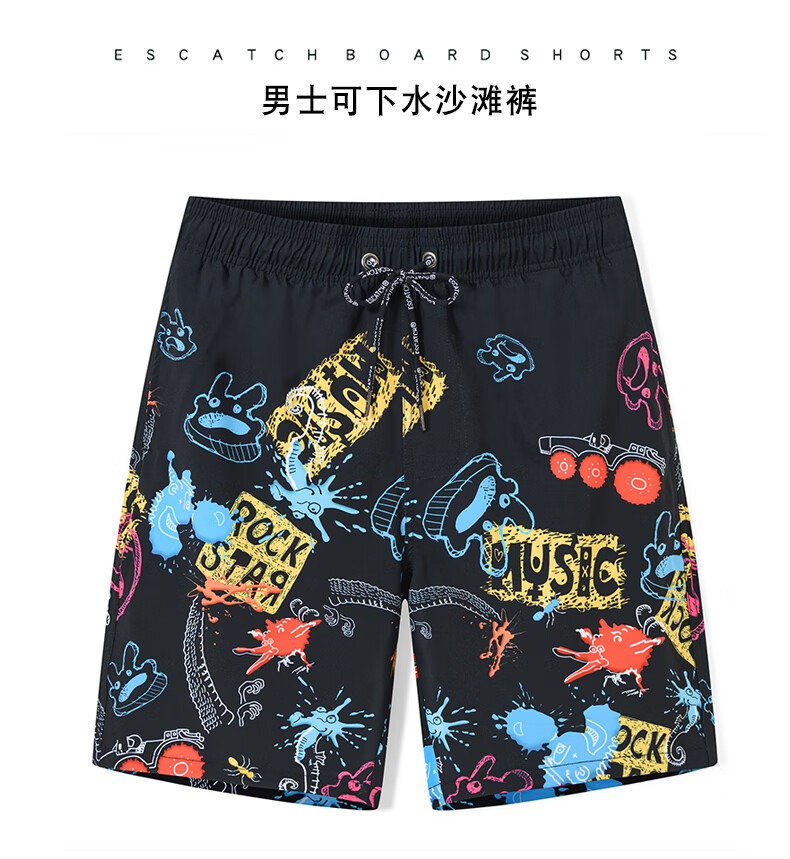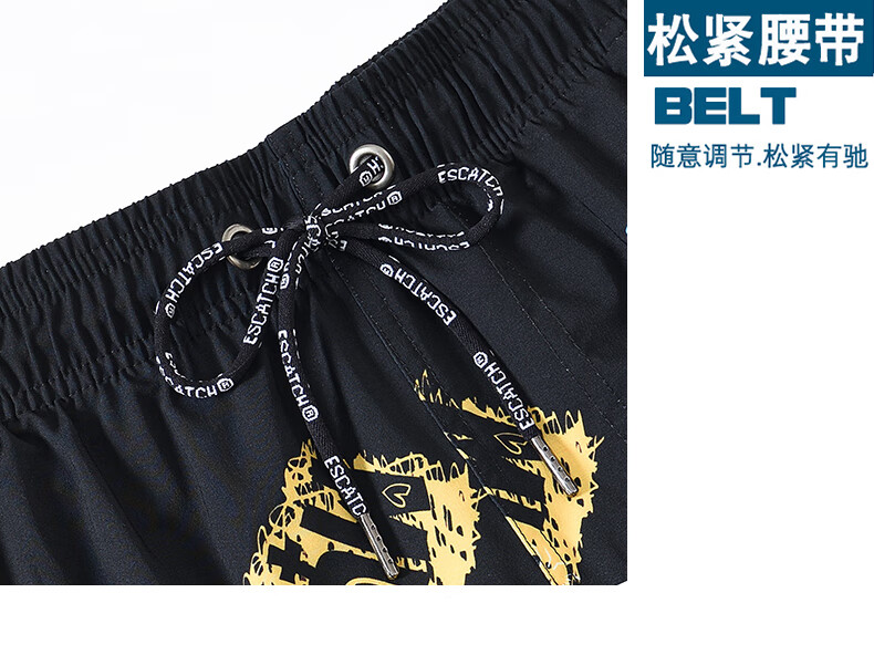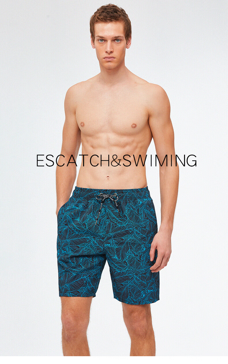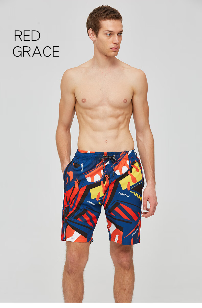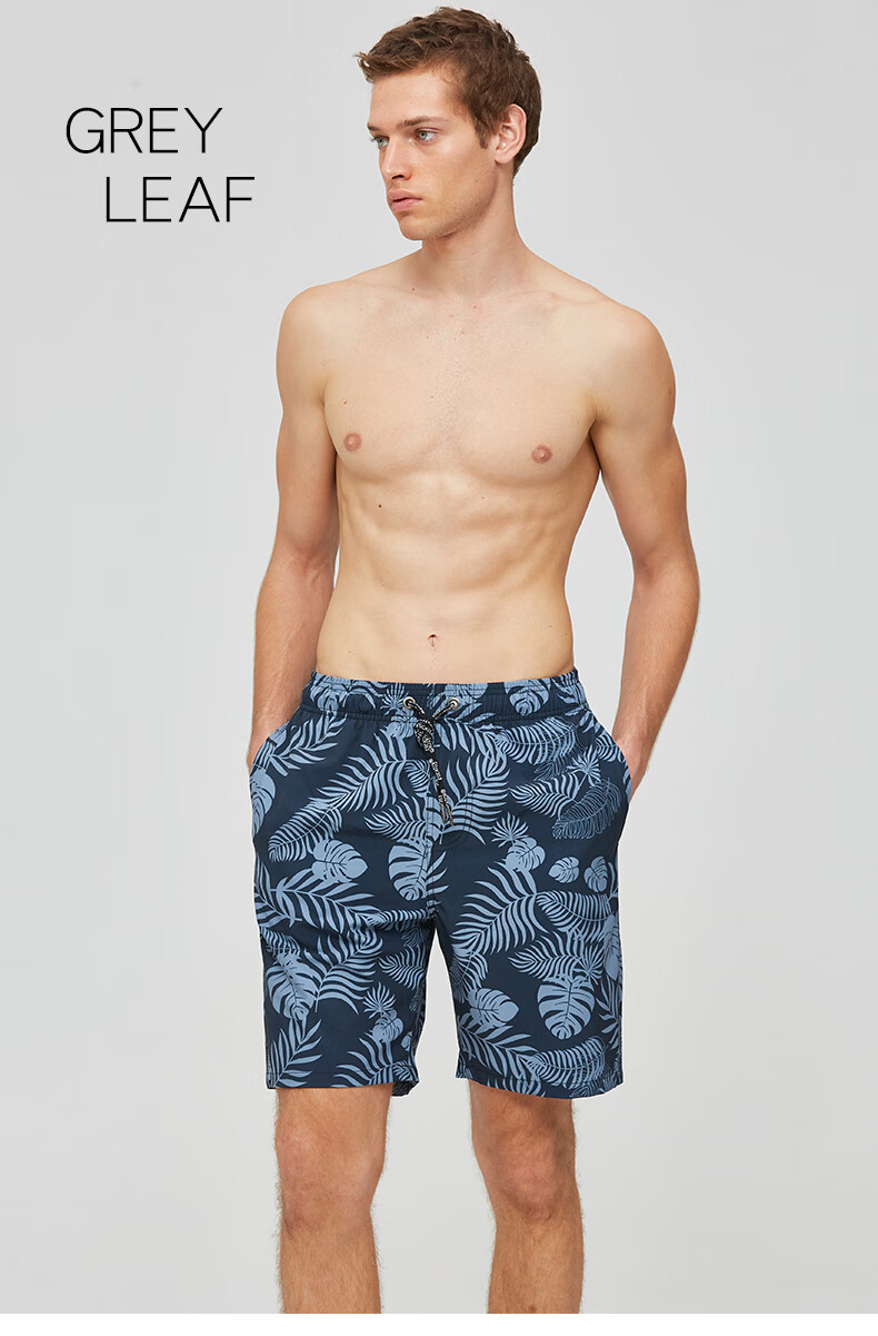 ESCATCH summer men's shorts five-point beach pants men's trendy brand quick-drying can be entered into the water loose seaside resort hot spring swimming trunks ES7 gray leaves (triangular lining) M