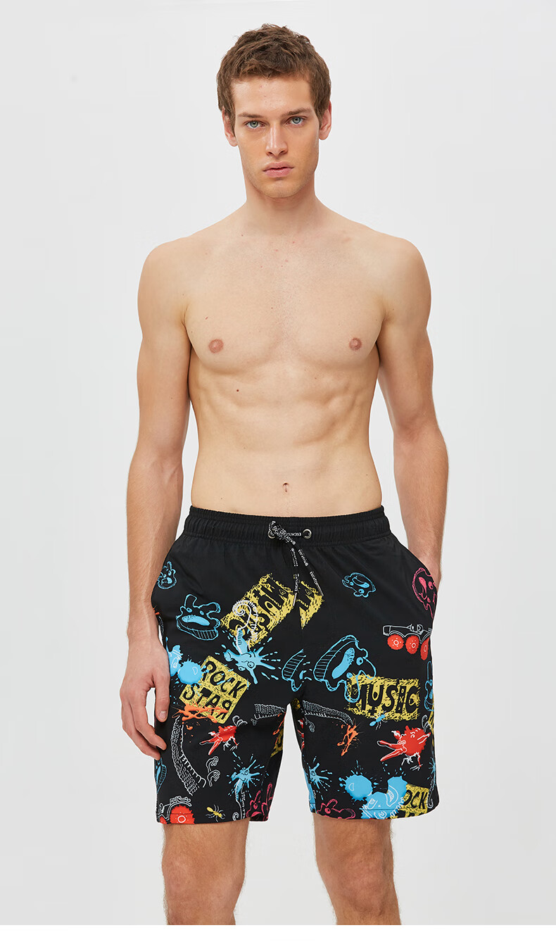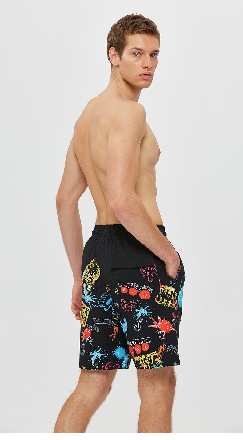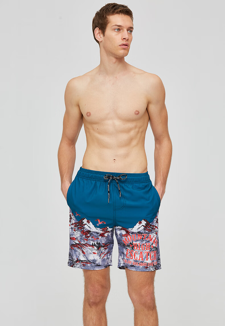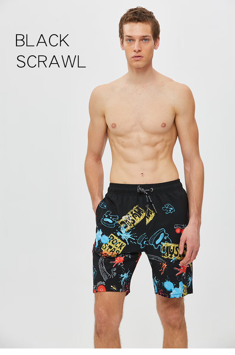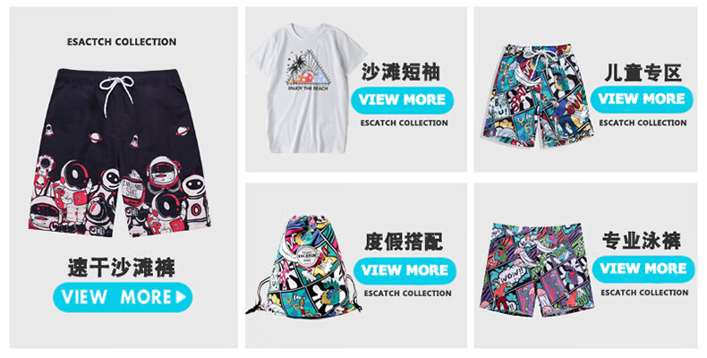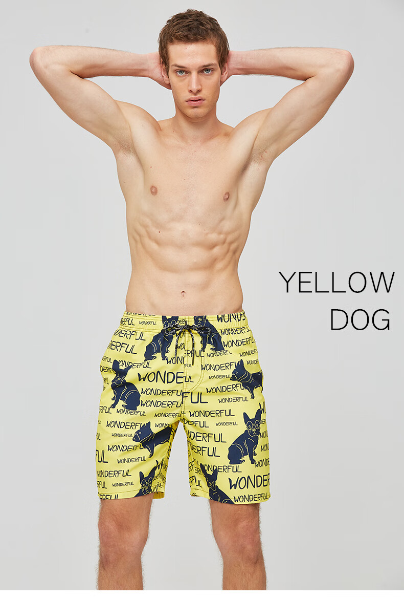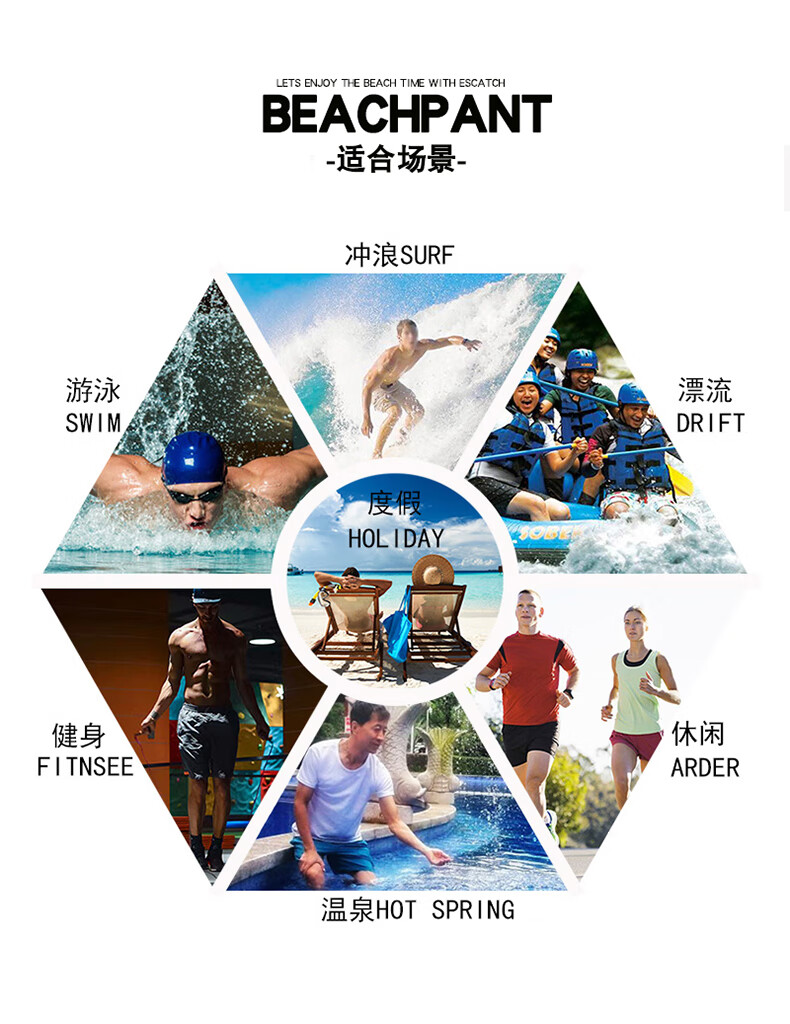 ESCATCH summer men's shorts five-point beach pants men's trendy brand quick-drying can be entered into the water loose seaside resort hot spring swimming trunks ES7 gray leaves (triangular lining) M