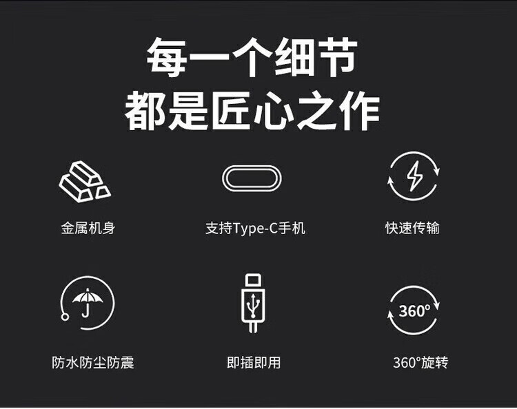 u盘手机电脑两用vivo鸿蒙双接口高速3.0金属定制苹果小米可用 黑色1000[G]