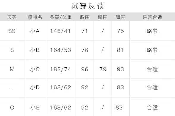 China (cm) 160-165/84-86 165-170 / 88-90 167-172 / 92-96 168-173 / 98-102 170-176 / 106-110