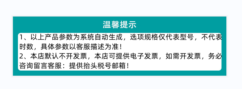 2)Die Versandkosten werden normalerweise pro 0,5KG berechnet. Wenn Sie also ein Produkt kaufen, das nur 0,1KG wiegt, sollten Sie in Erwägung ziehen, 2-3 Stück auf einmal zu kaufen, was die Versandkosten für Ihre Bestellung nicht erhöht.
