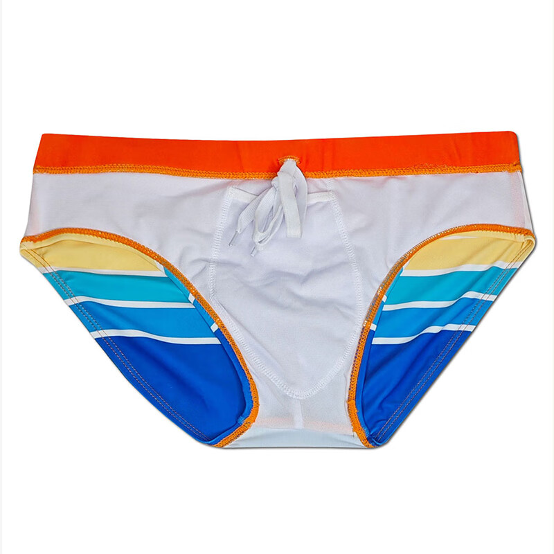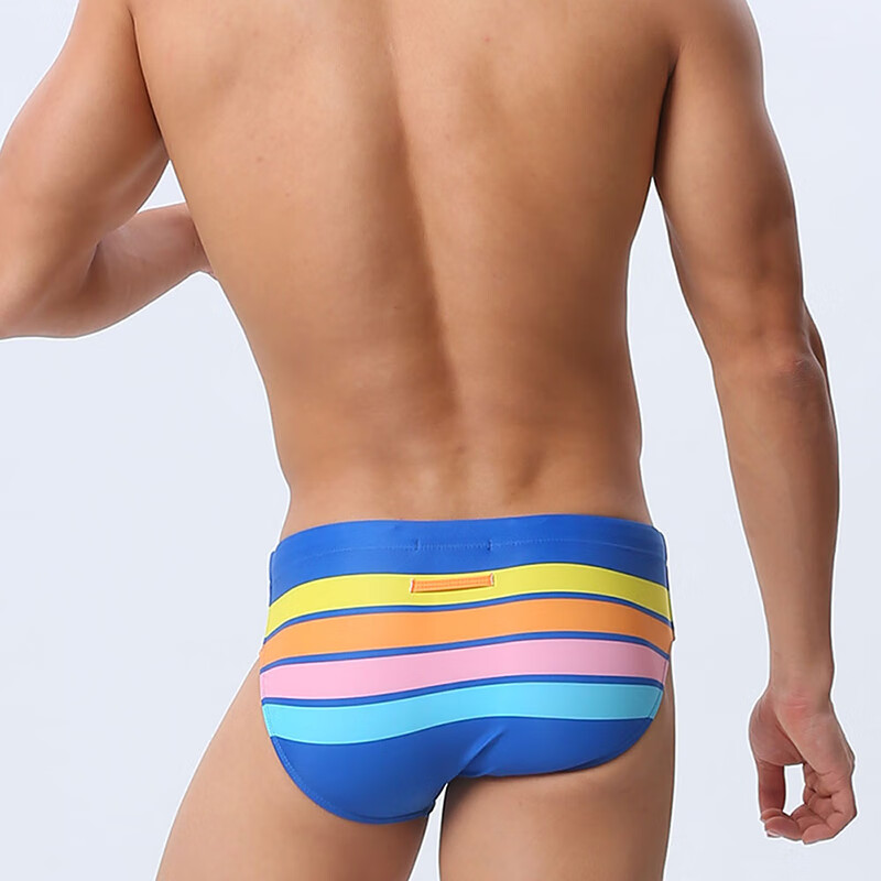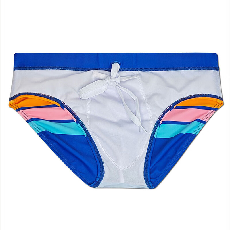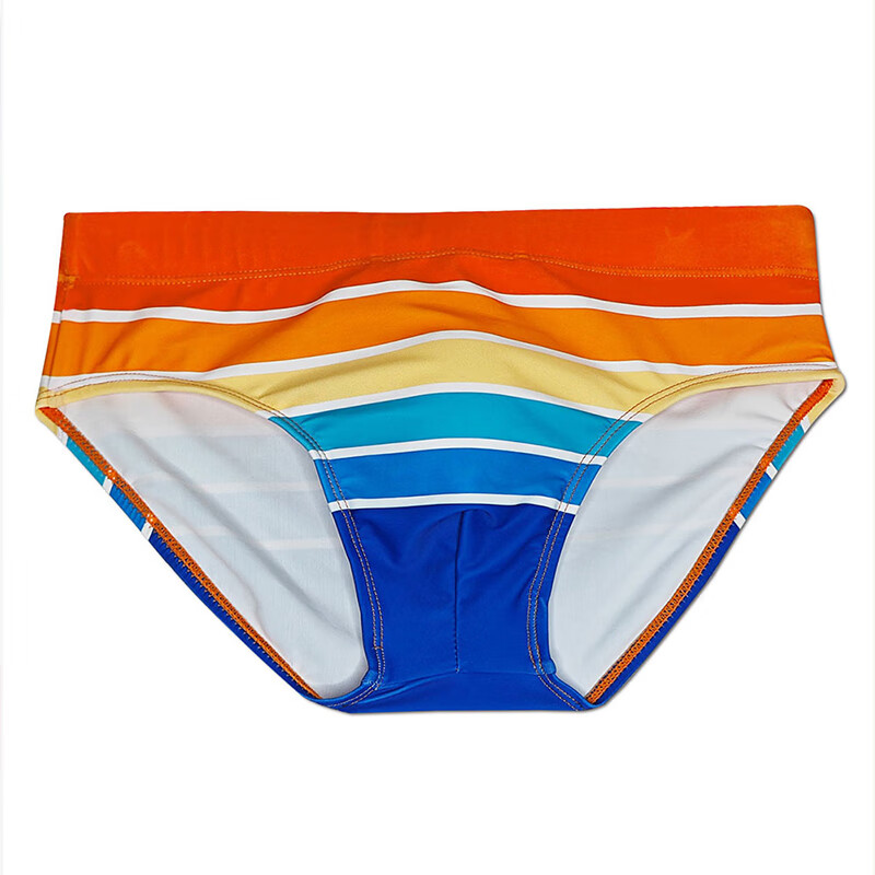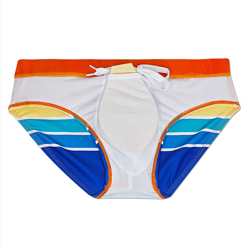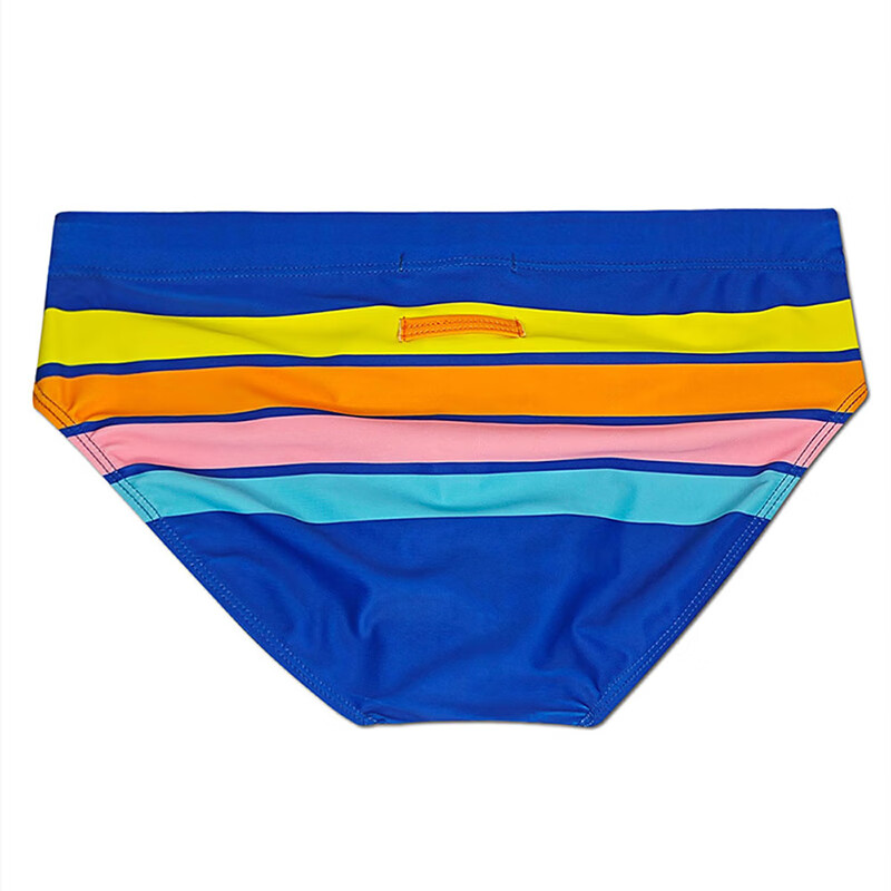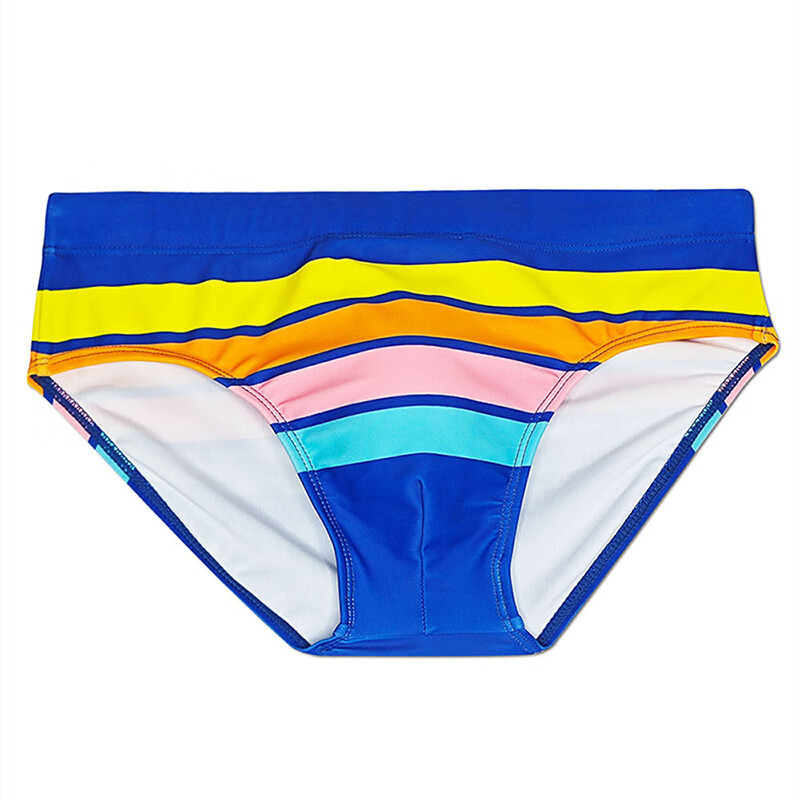 UXH Europäischer und amerikanischer Herren-Slip mit Körbchen, bunter Streifendruck, einfacher, modischer und trendiger Strandbikini, Blau + Schwammpolster L
