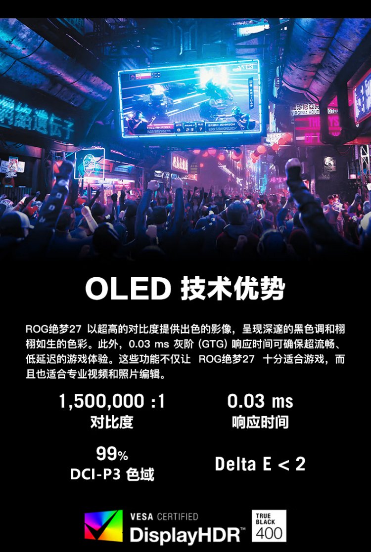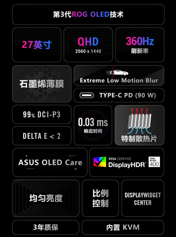 ASUS ROG 27-Zoll-Gaming-Monitor, OLED-Display, 2K natives 500-Hz-High-Brush-Game-Display, echtes 10-Bit HDR400 XG27ACDNG, 360 Hz, echtes 10-Bit