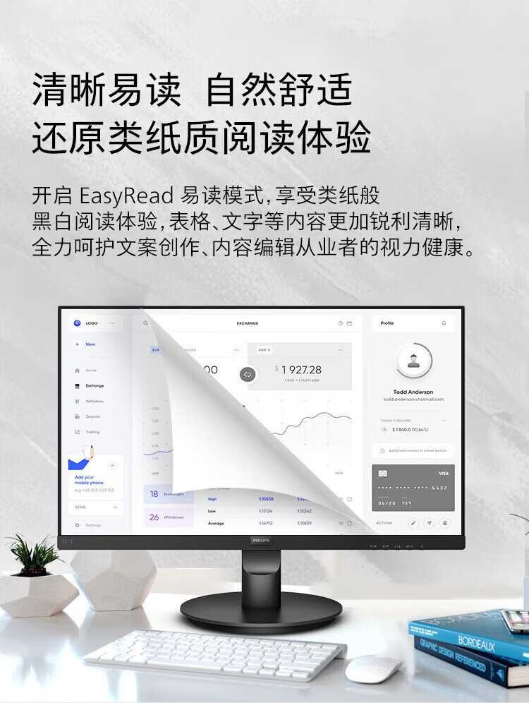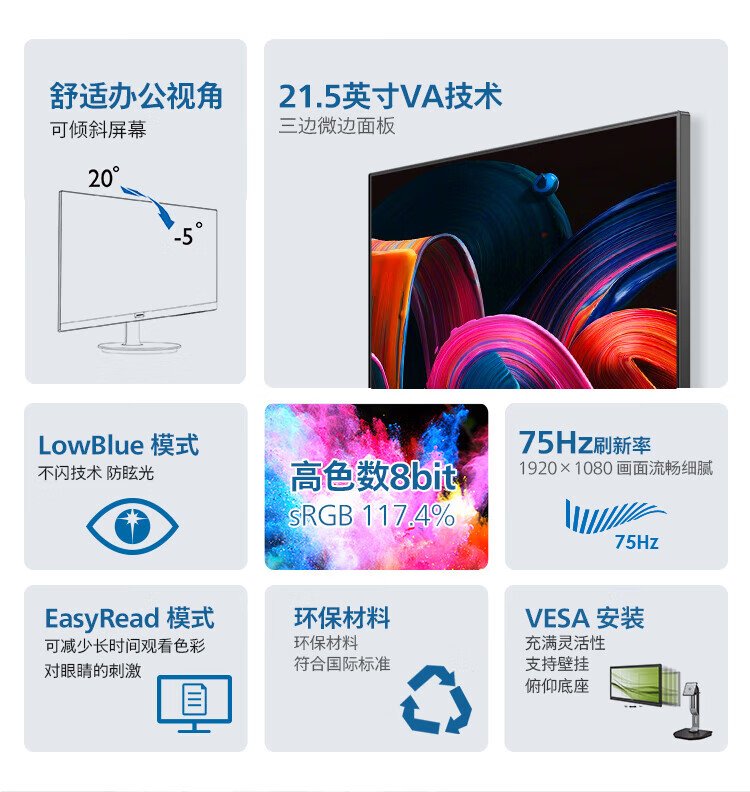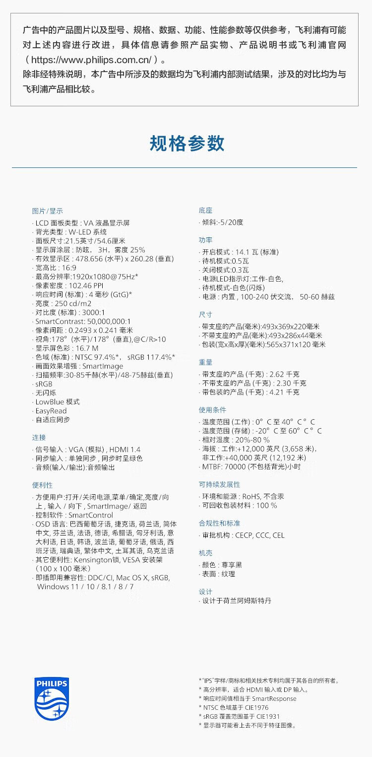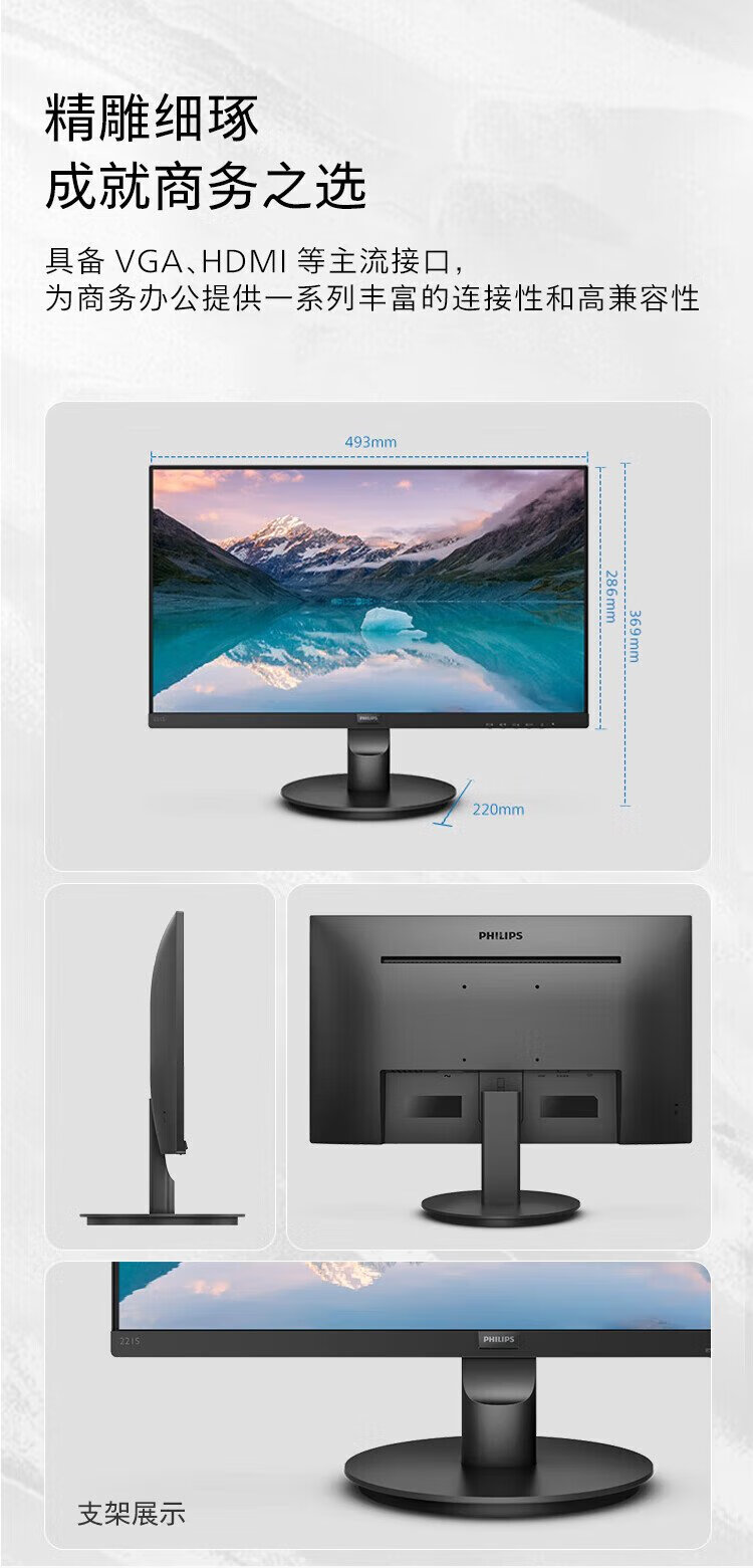 Philips (PHILIPS) 21.5-inch VA 75Hz micro-frame low blue light HD display home office desktop LCD computer external HDMI display monitor screen 221i8 21.5-inch 200nit energy-saving eye-friendly