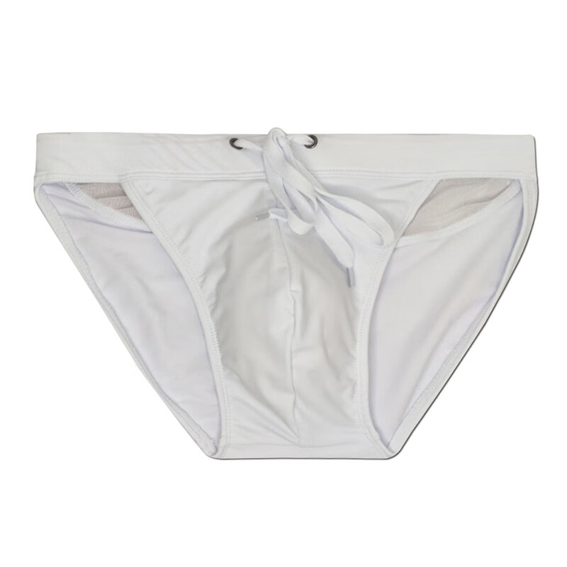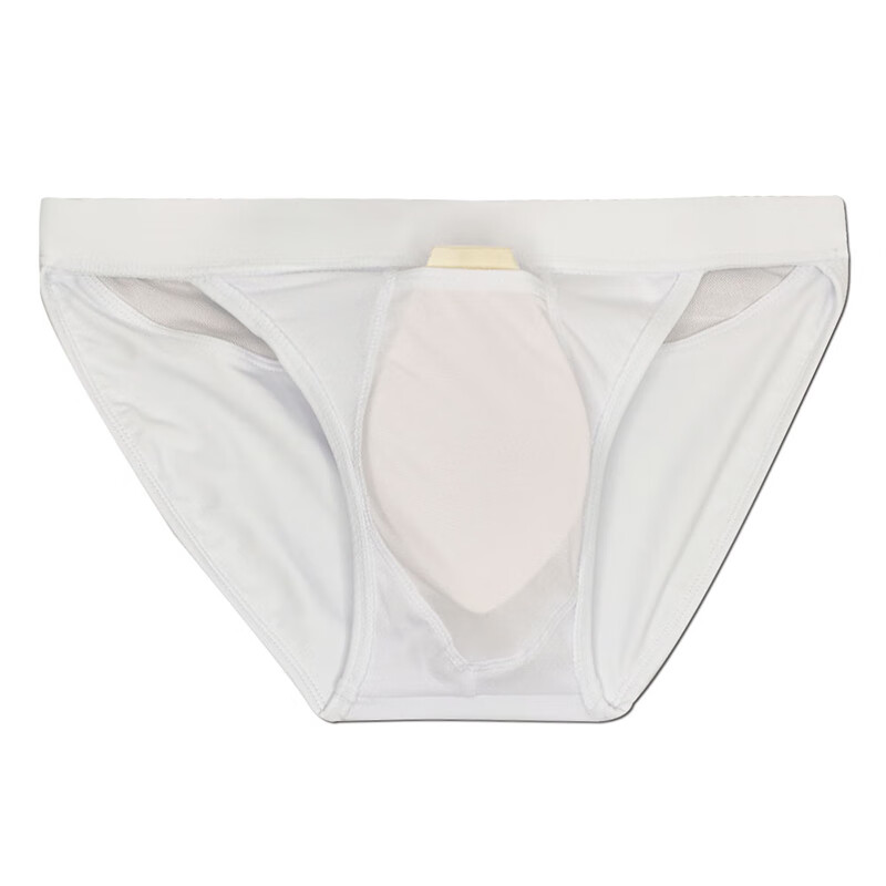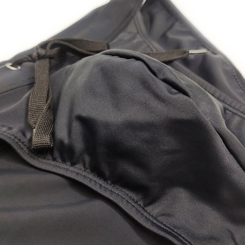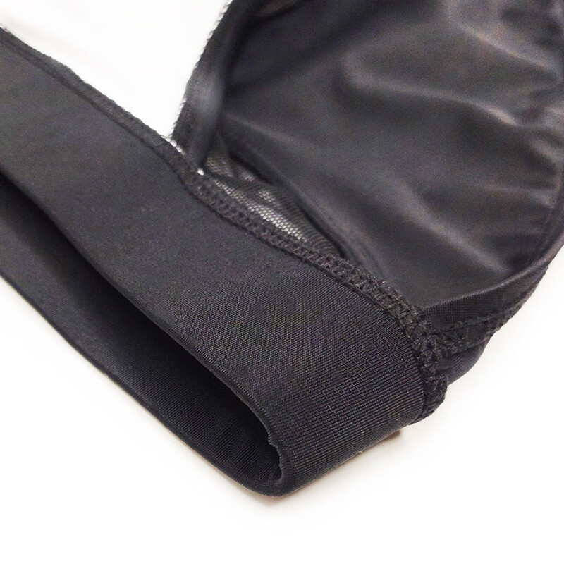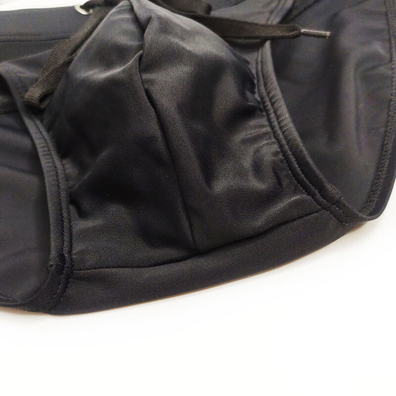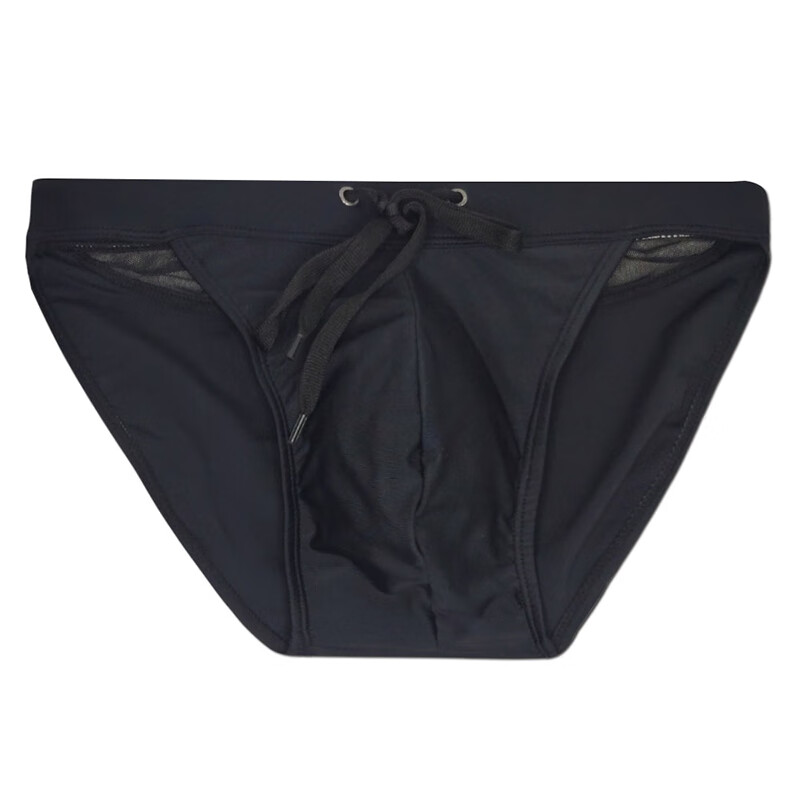 UXH high cut swimming trunks men's back mesh sexy solid color triangle swimming trunks cup European and American bikini trendy swimsuit black + sponge pad XL