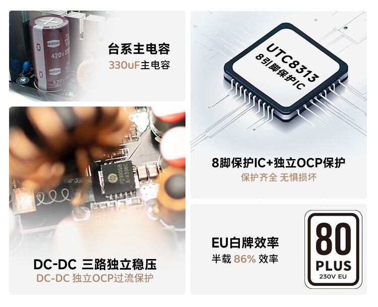 Yichenyu Xuanwu 500Kill bewertet 500 W Spitze 700 W DC-DC-Super-Core-Last-Netzteil 80PLUS White-Label-zertifiziertes Staub-Regen-DIY-Panzer-Attentäter-Desktop-Computer-Netzteil Xuanwu 500 K weißes White-Label-Spitzen-700 W mit Wechselstromleitung