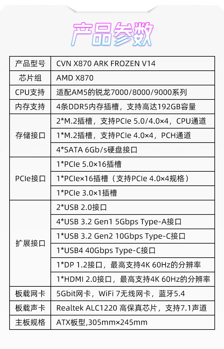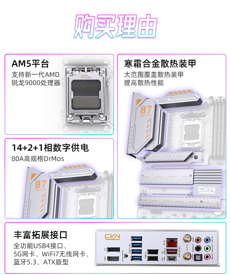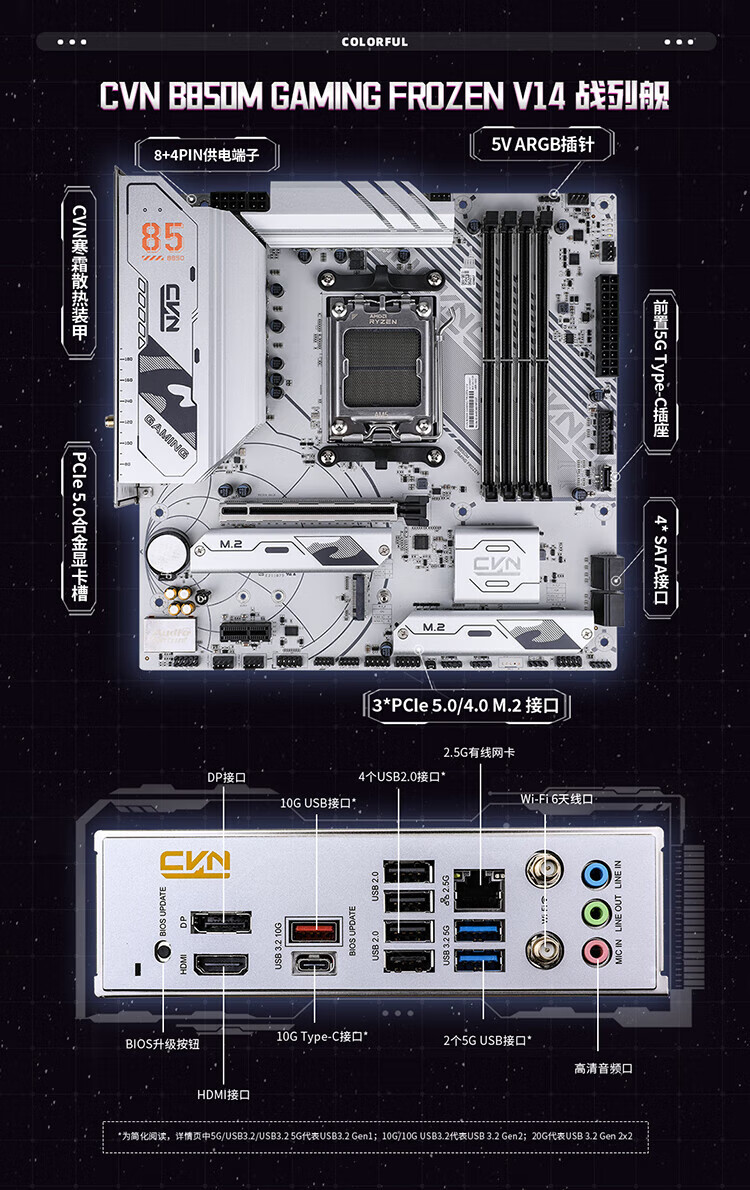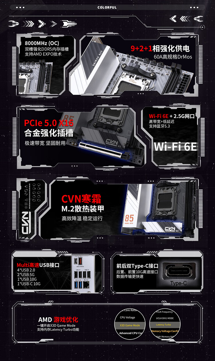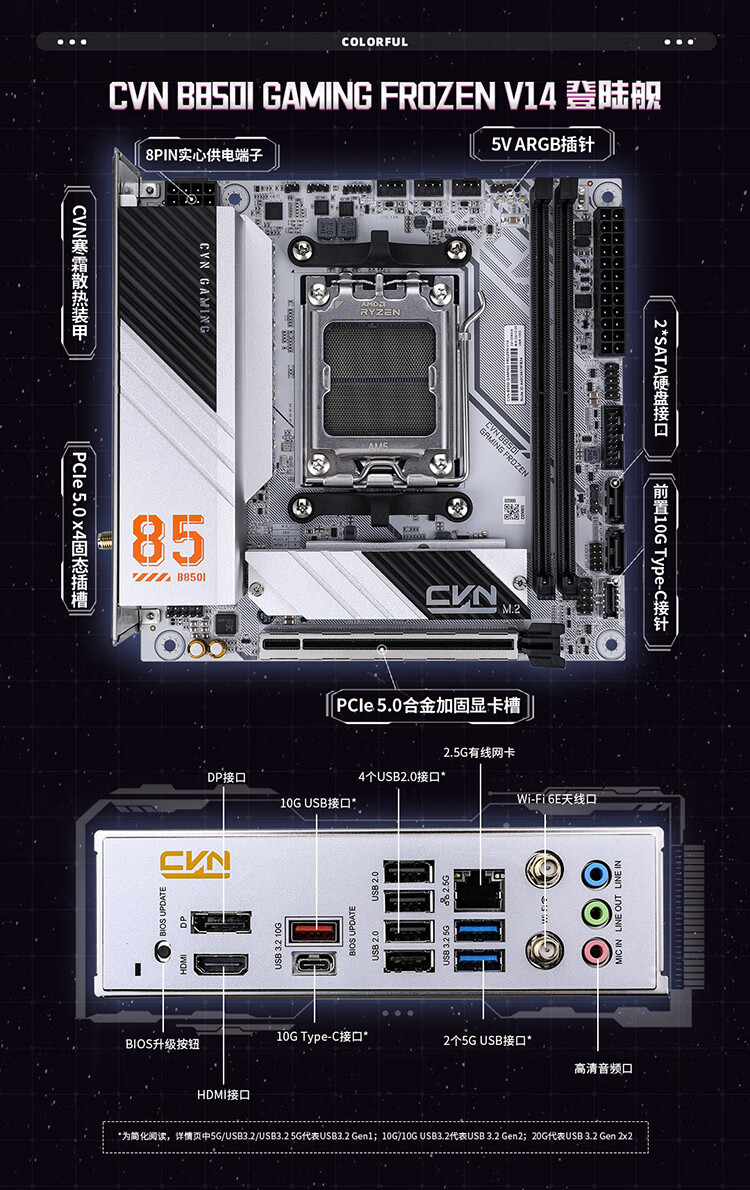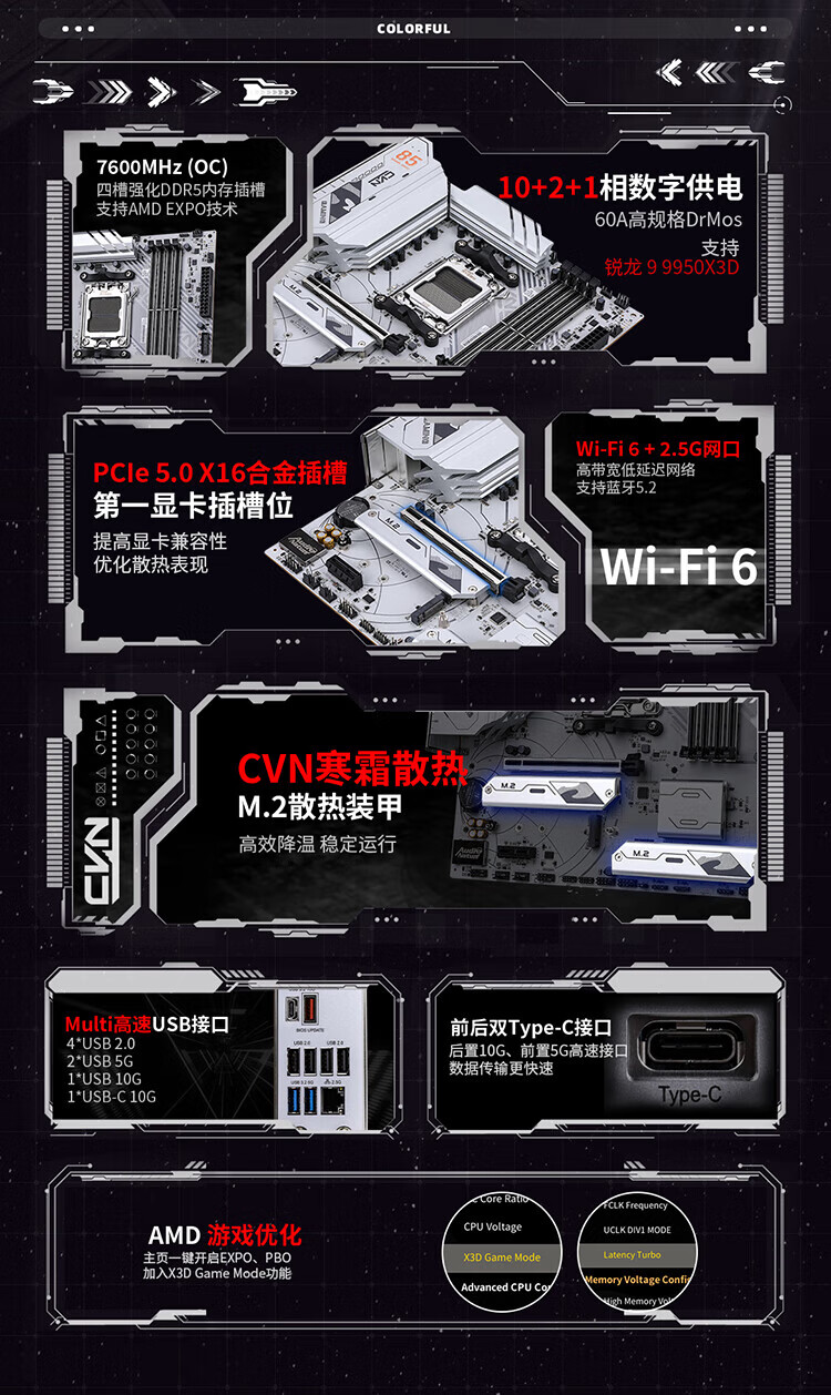 Colorful CVN B850/X870 DDR5 WIFI motherboard supports AMD7000/8000/9000 series 7800X3D/9950X/9800X3D CVN B850I landing ship D5 WIFI